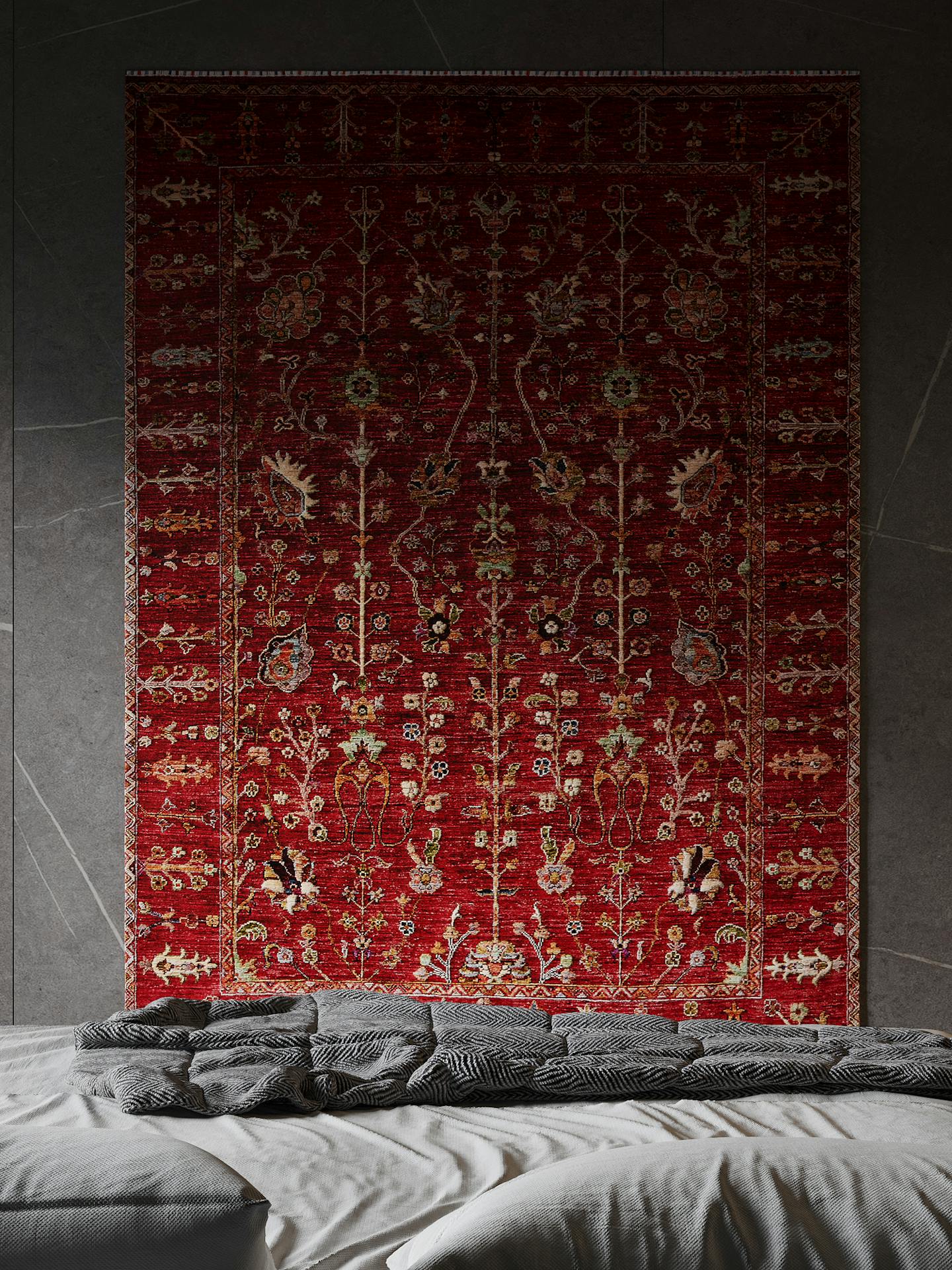 В процессе работы над этим интерьером на одной стене появились шпонированные панели и широкоформатный керамогранит, на другой – книжный стеллаж. Кухня без верхних шкафов. И конечно же, все это разбавлено уютными тканями и теплым освещением.