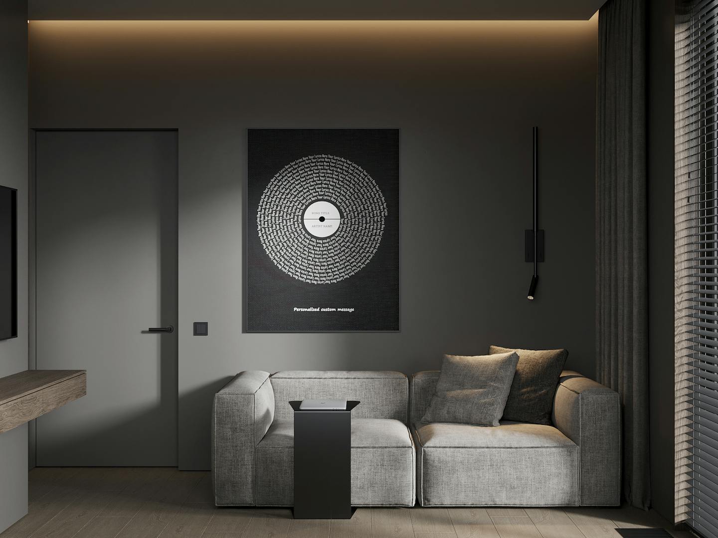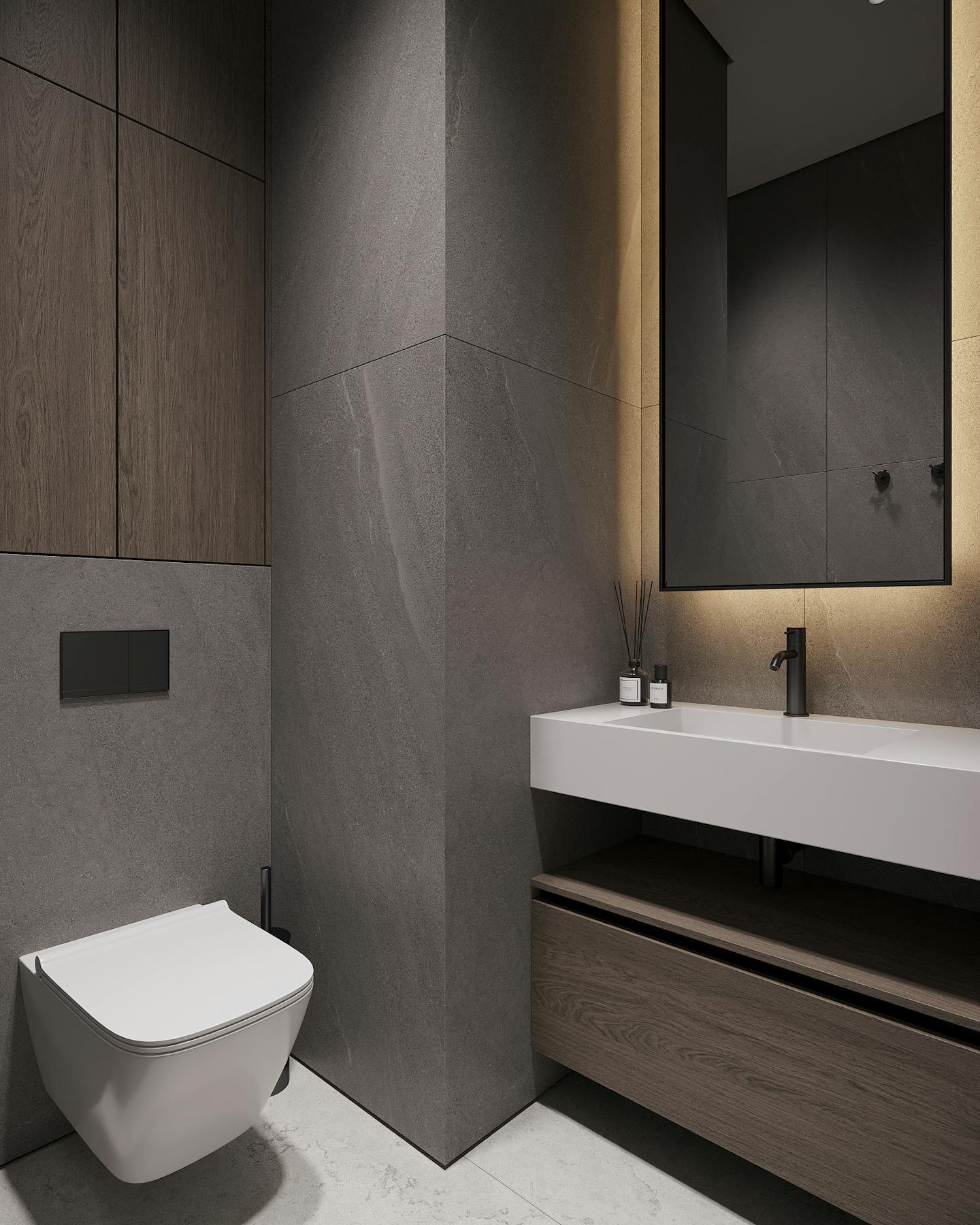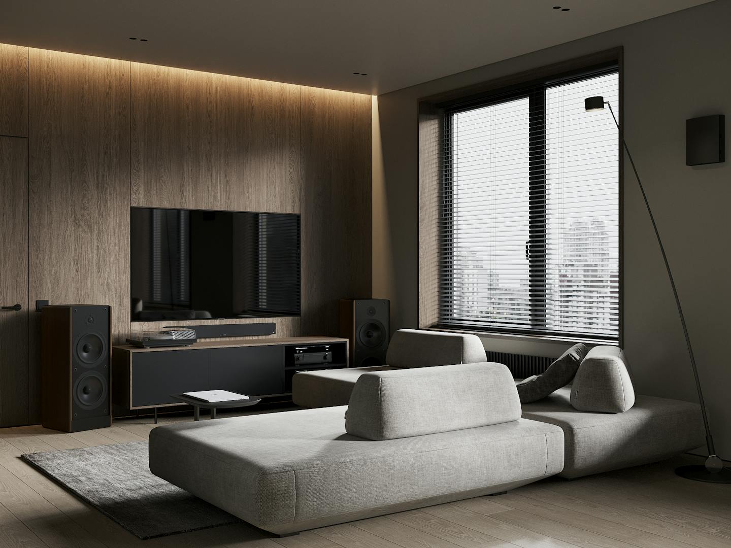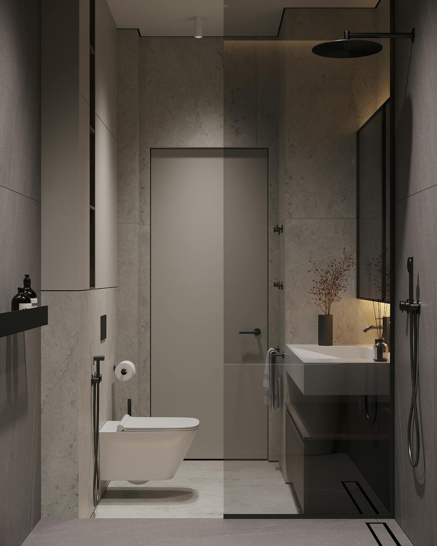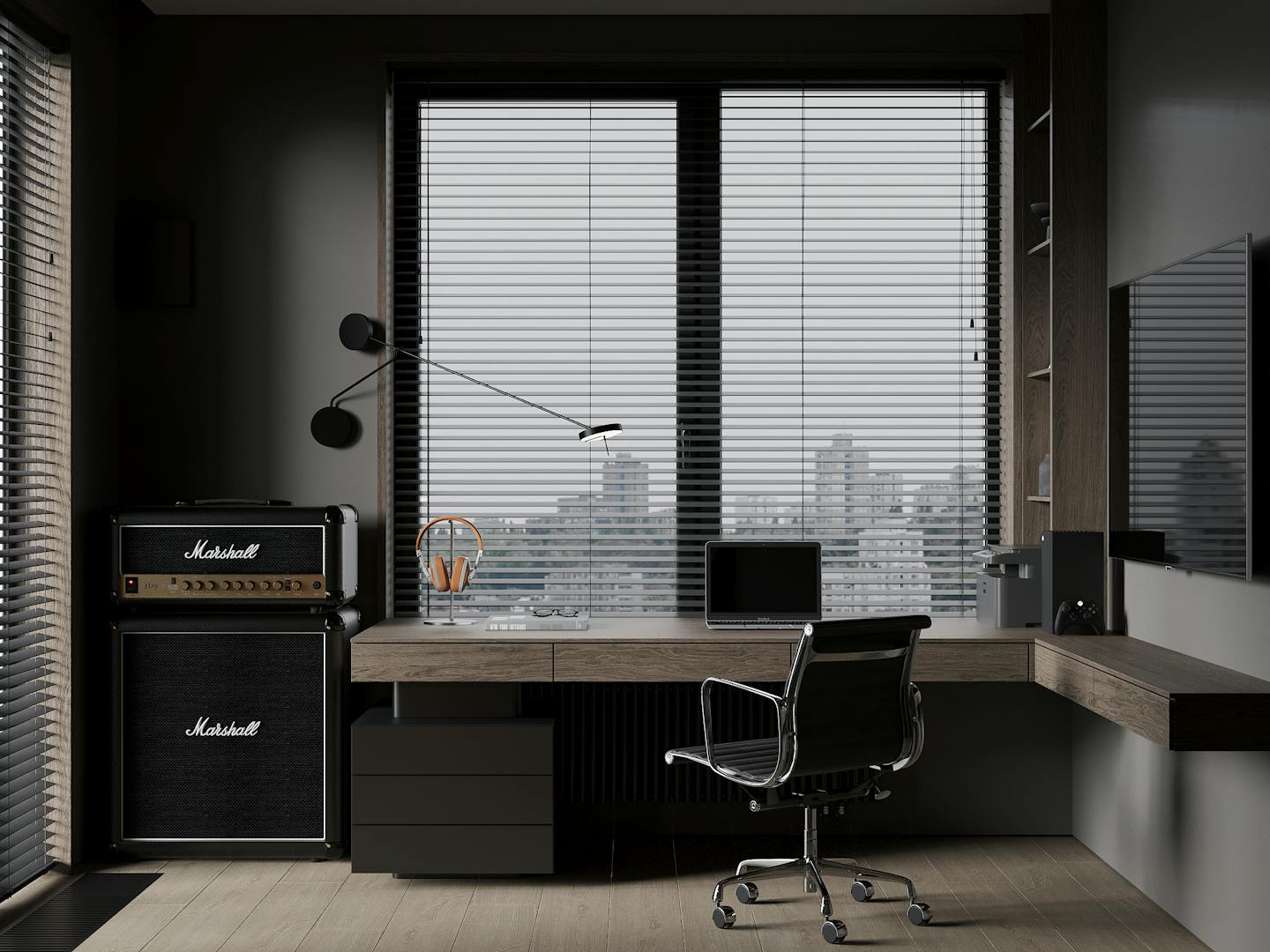 Строгий минималистичный объем, в котором комфортно расположились большой обеденный стол (180см), остров (180х80см), кухня с отдельностоящими пеналами, удобный диван с зоной тв и акустикой.