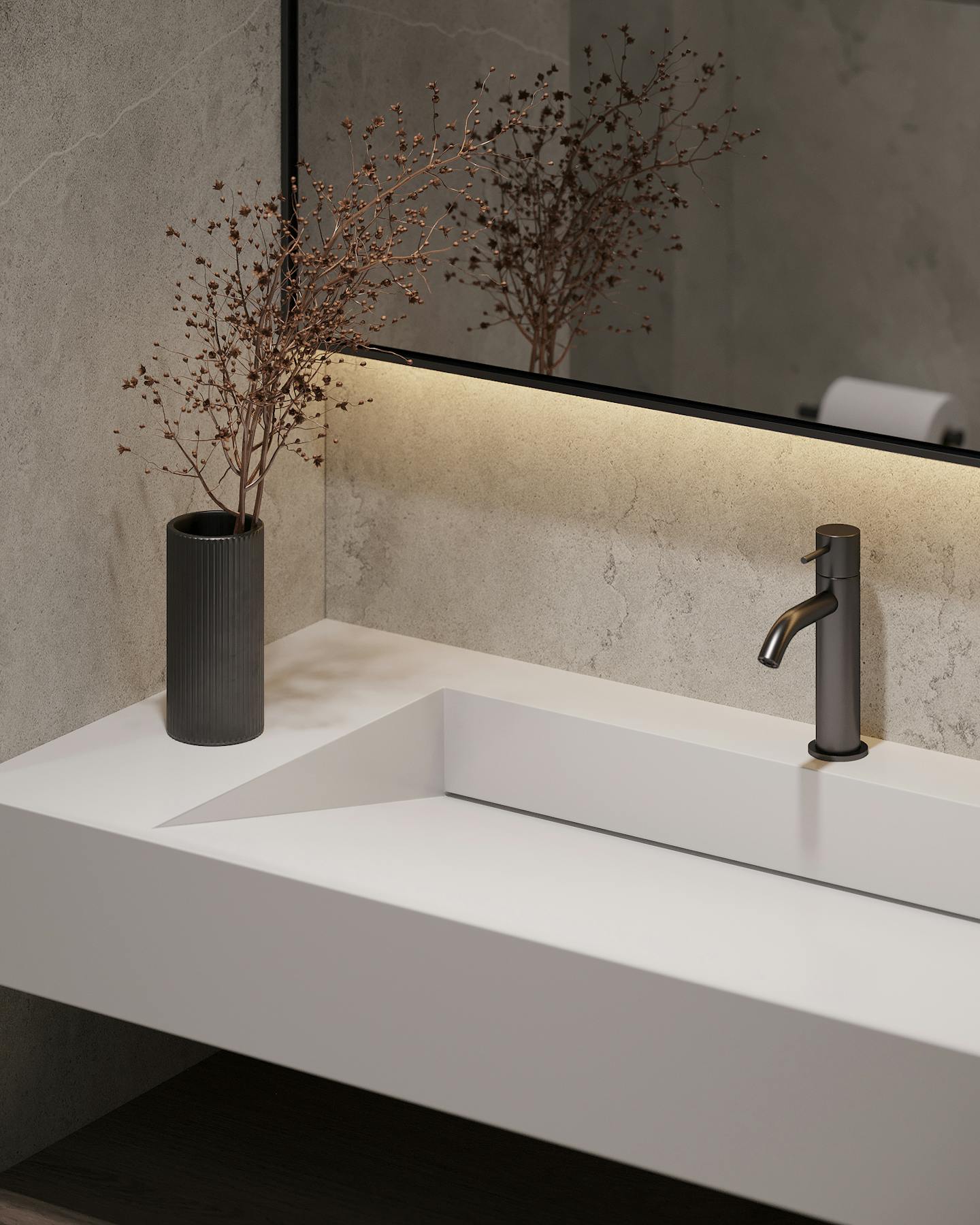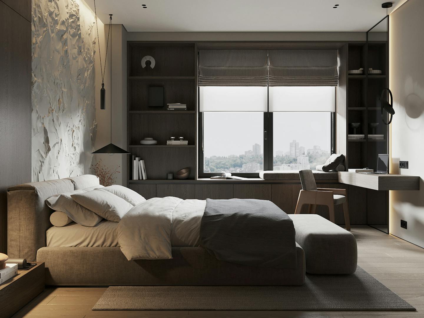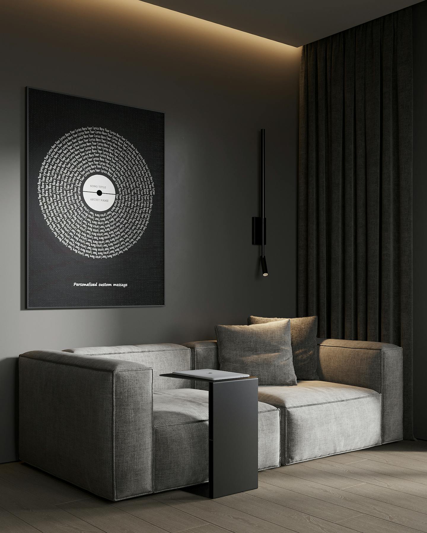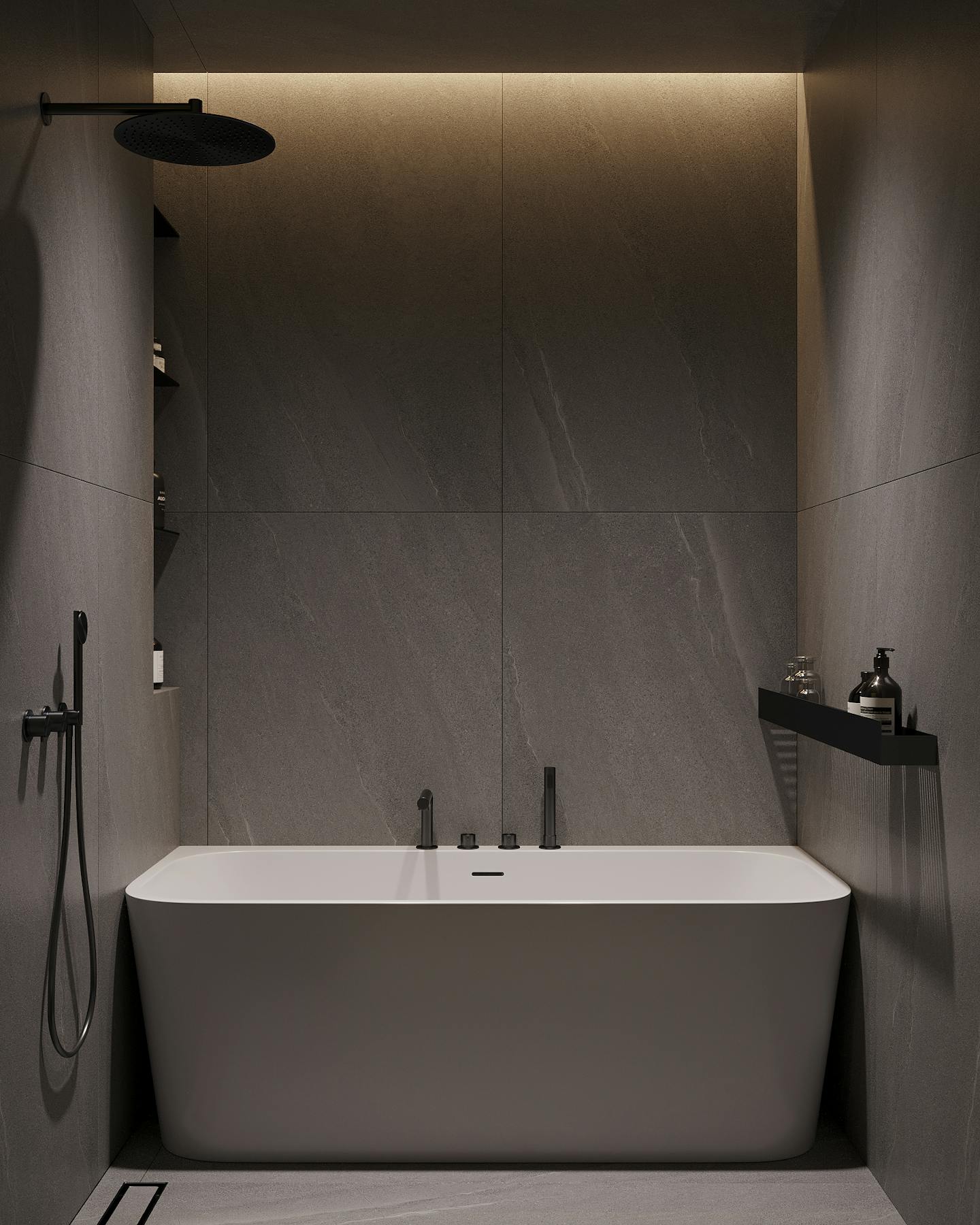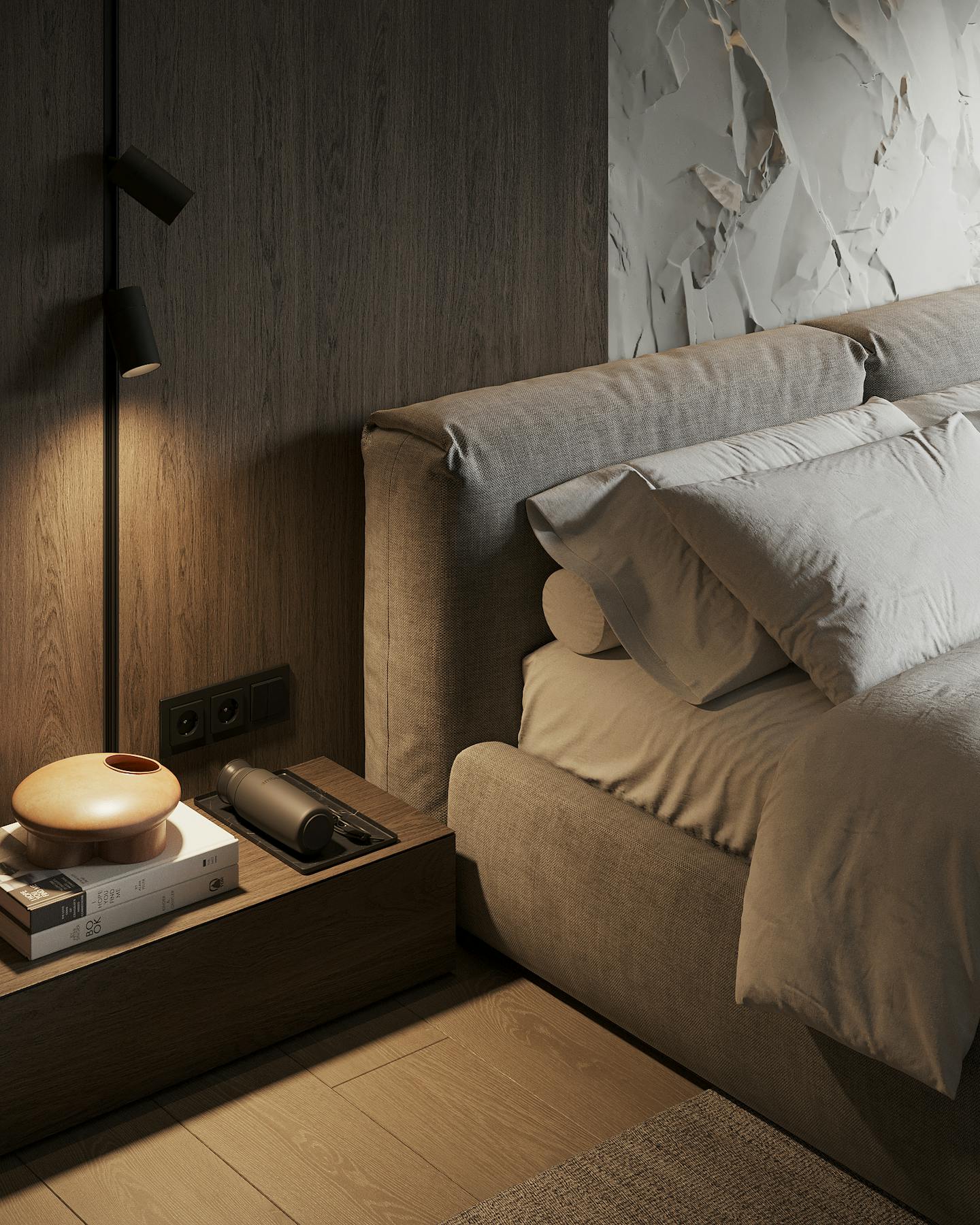 Строгий минималистичный объем, в котором комфортно расположились большой обеденный стол (180см), остров (180х80см), кухня с отдельностоящими пеналами, удобный диван с зоной тв и акустикой.