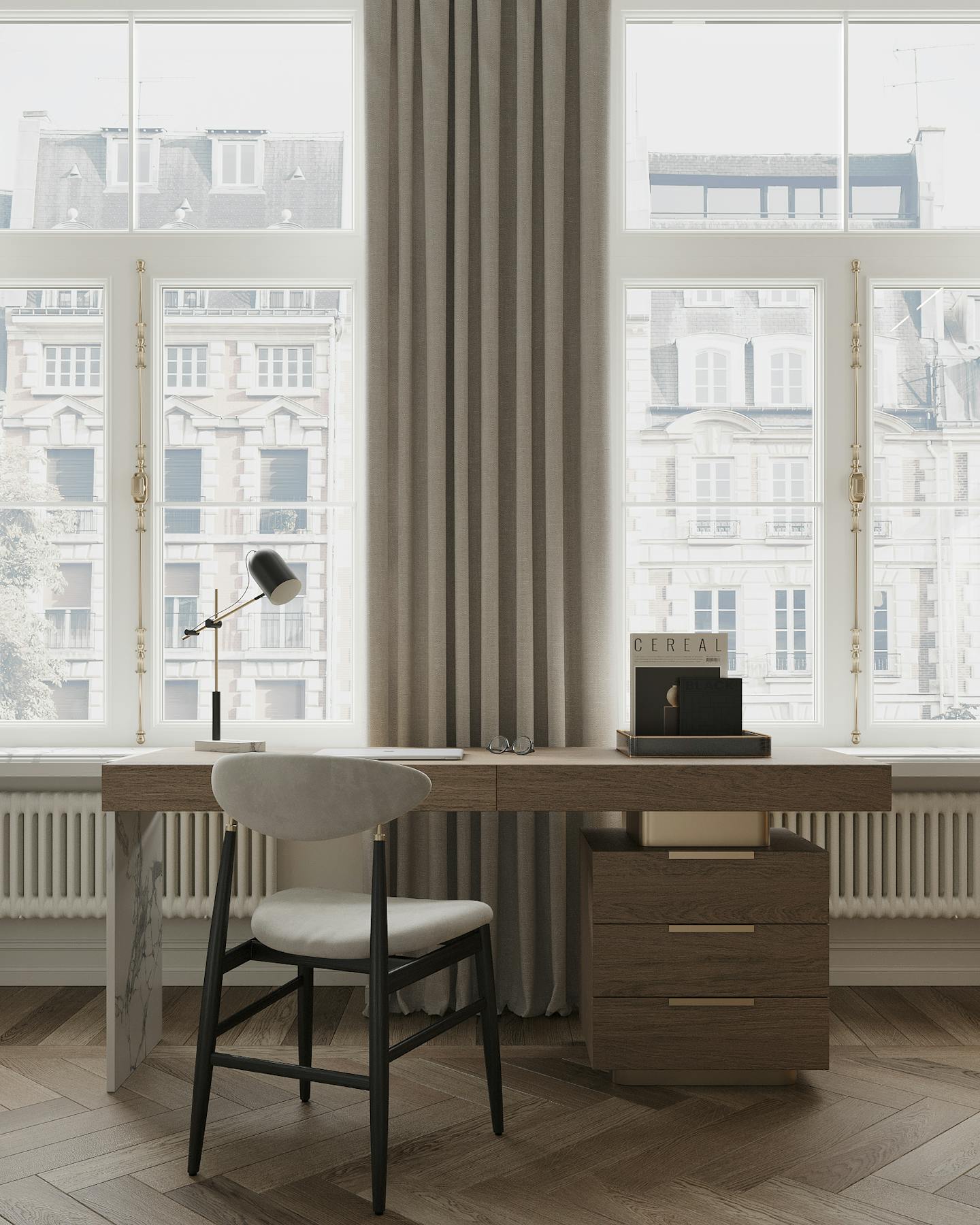 Реставрация окон – сложный, кропотливый и дорогостоящий этап. Возвращение оригинального вида рамам, створкам и фурнитуре заняло достаточно большое количество времени. Кремоны и шпингалеты были очищены и покрыты защитным составом.