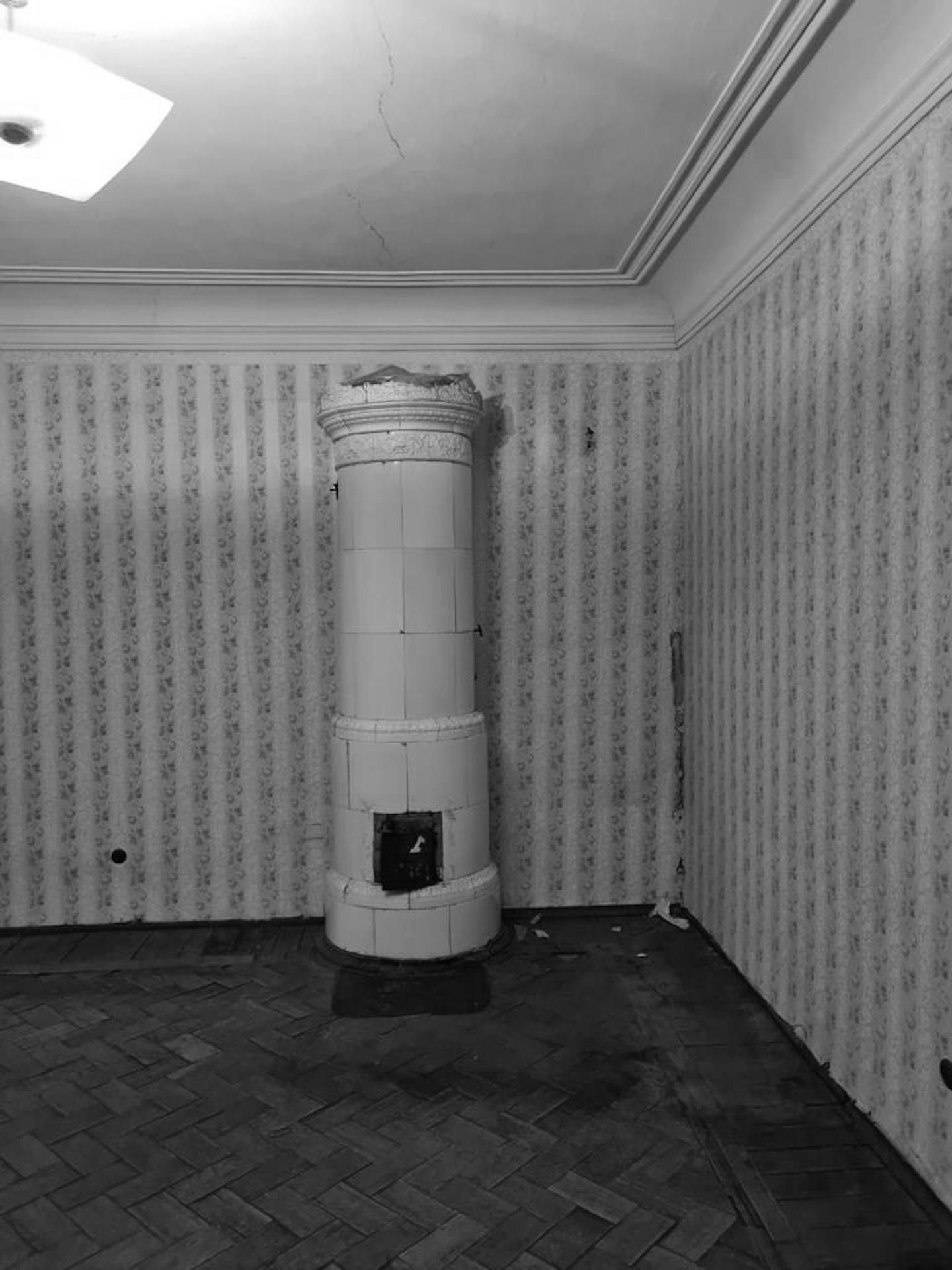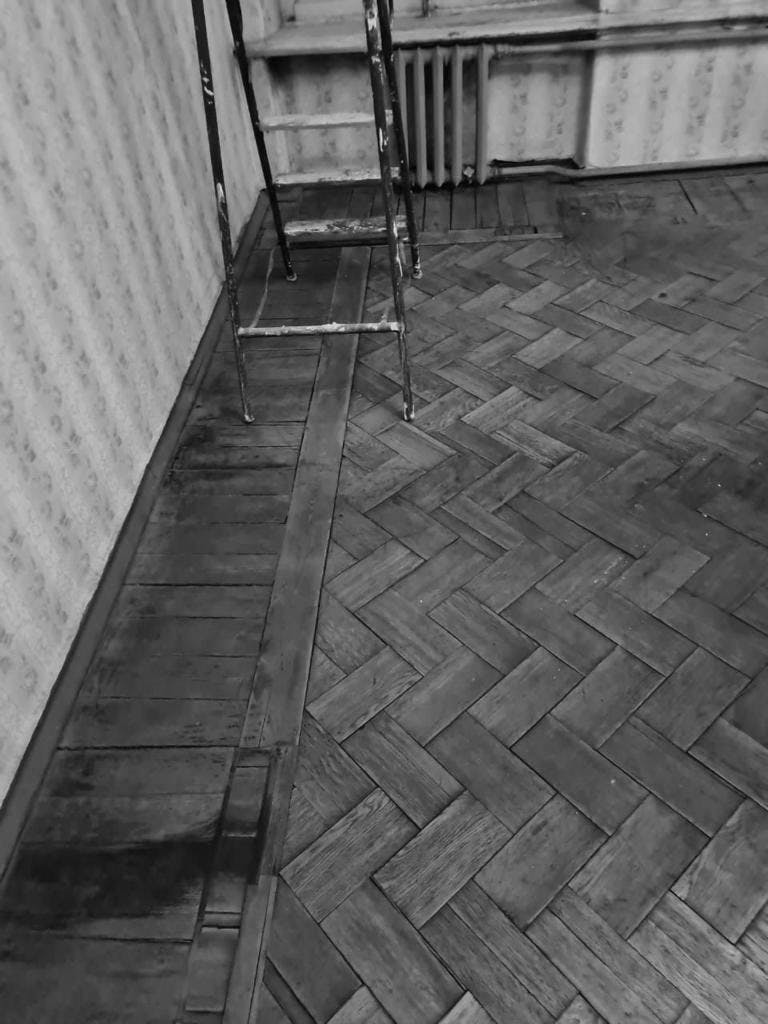 Паркетные полы были сильно повреждены. Приняли решение оставить сохранившиеся части и заменить утраченные. Самая большая сложность – попасть в тон существующего паркета и найти подходящее дерево, грамотно соединить все элементы.