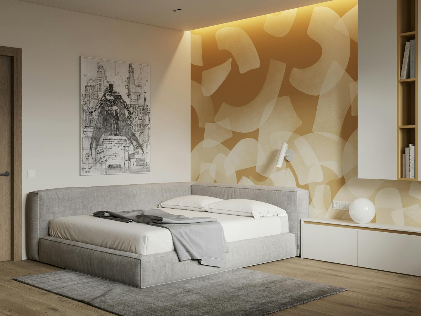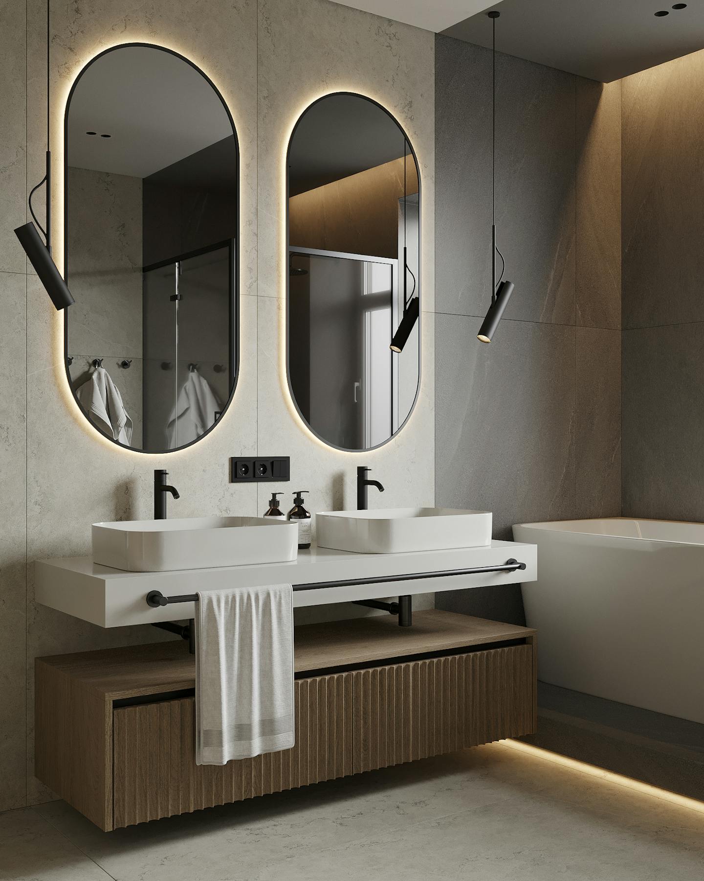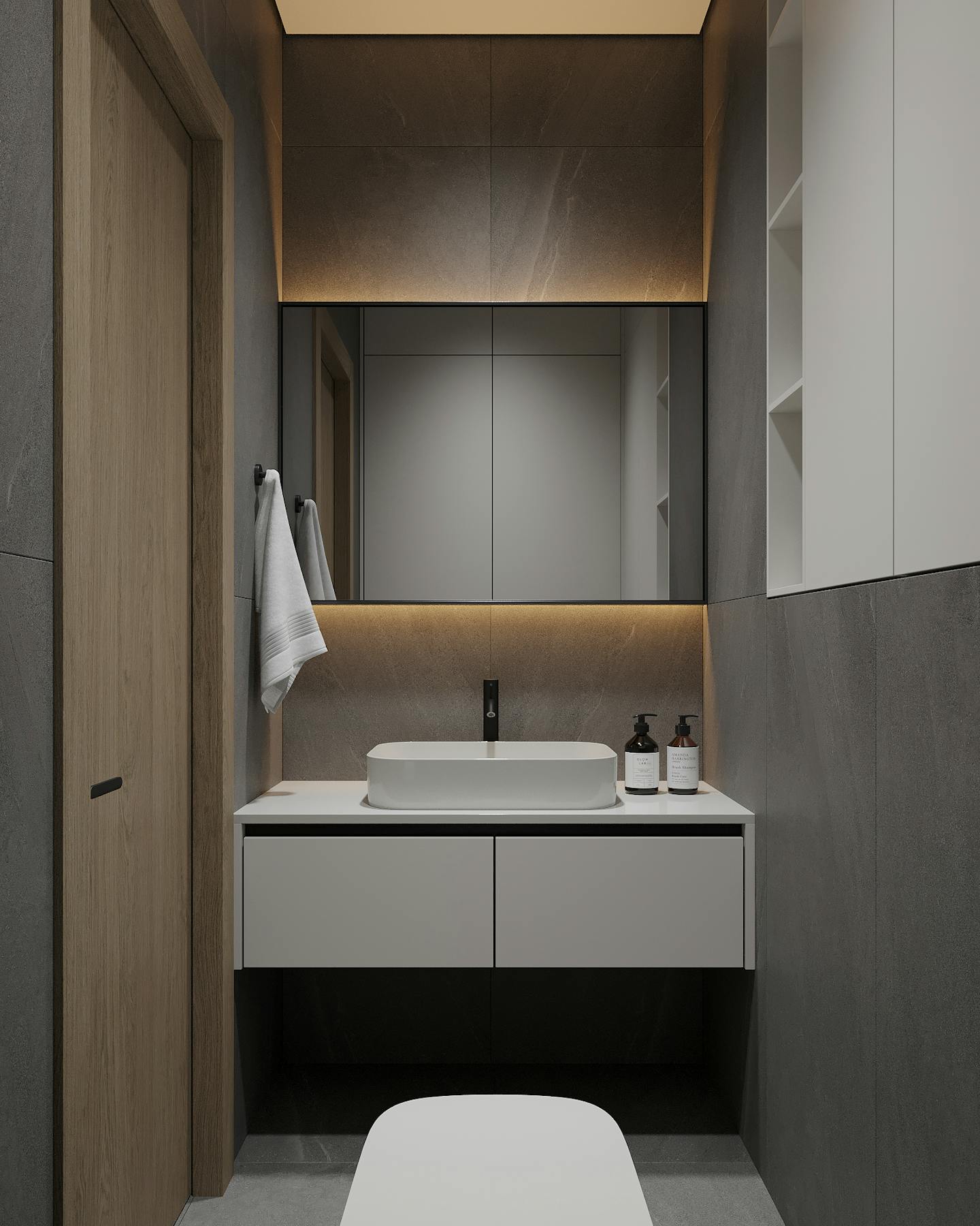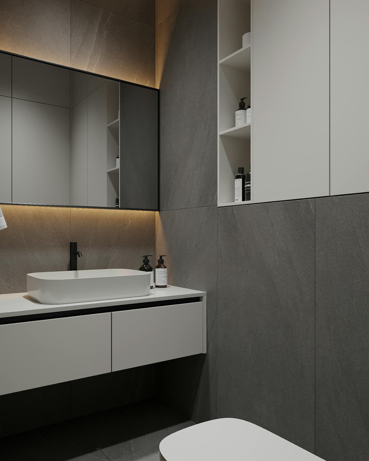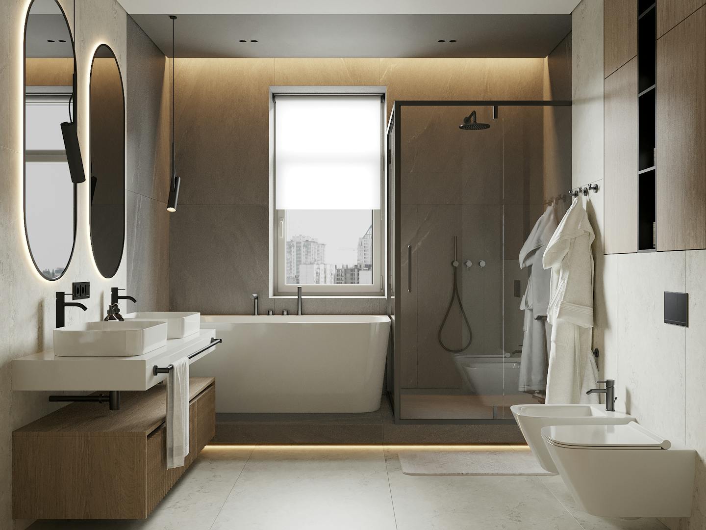 Комфортное, современное пространство, в котором используется множество натуральных материалов: дерево, камень, шерсть и лен. Светлая цветовая гамма с оттенками белого, бежевого, светло-серого и терракотового.