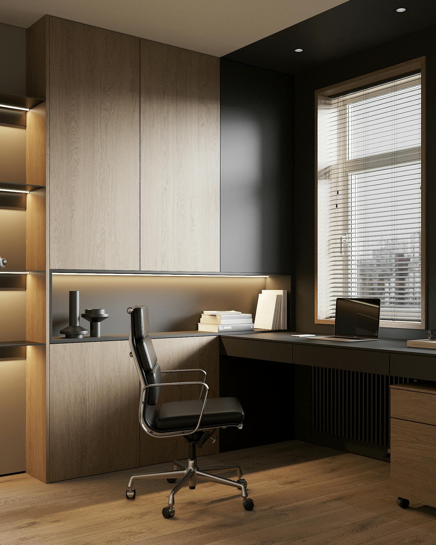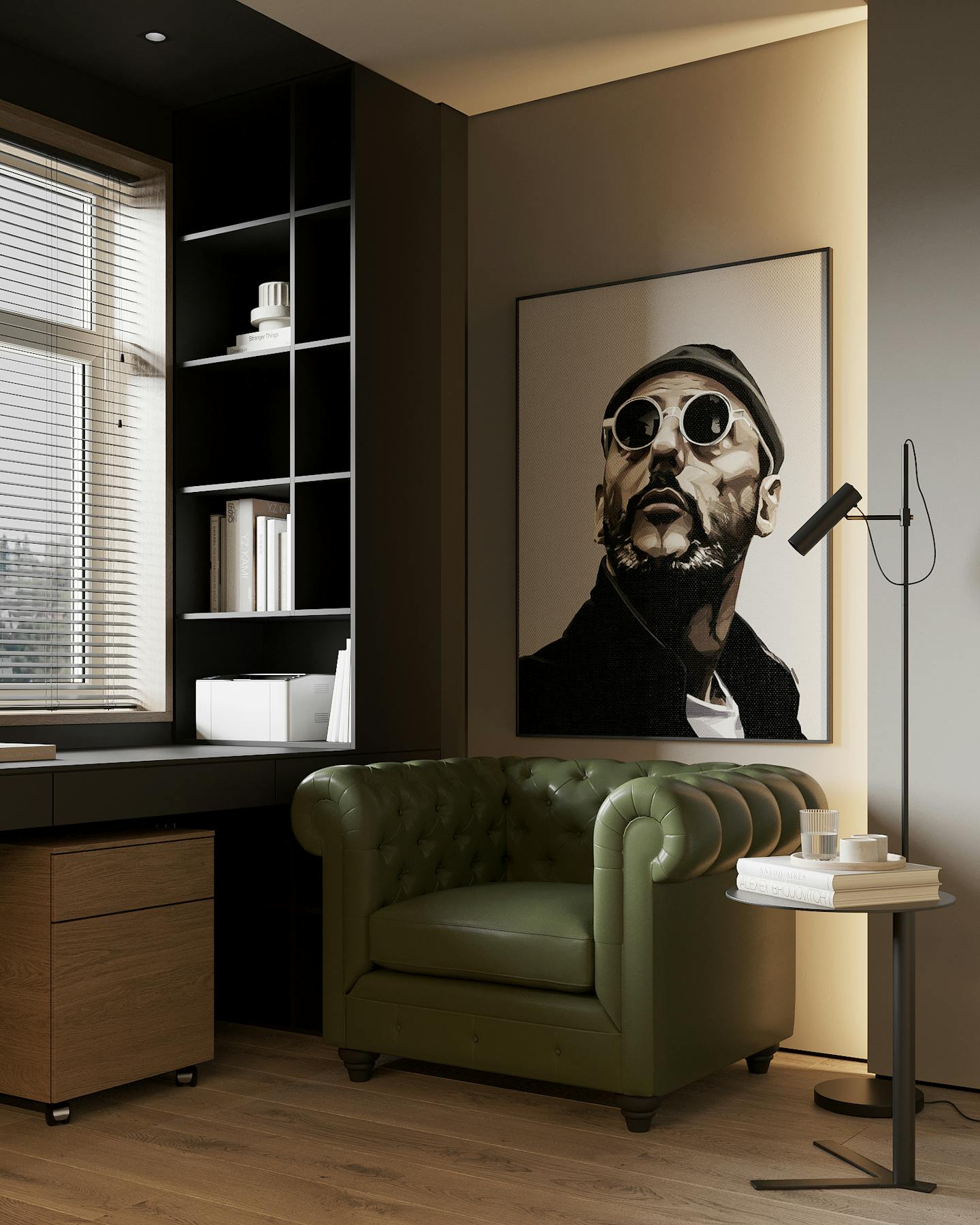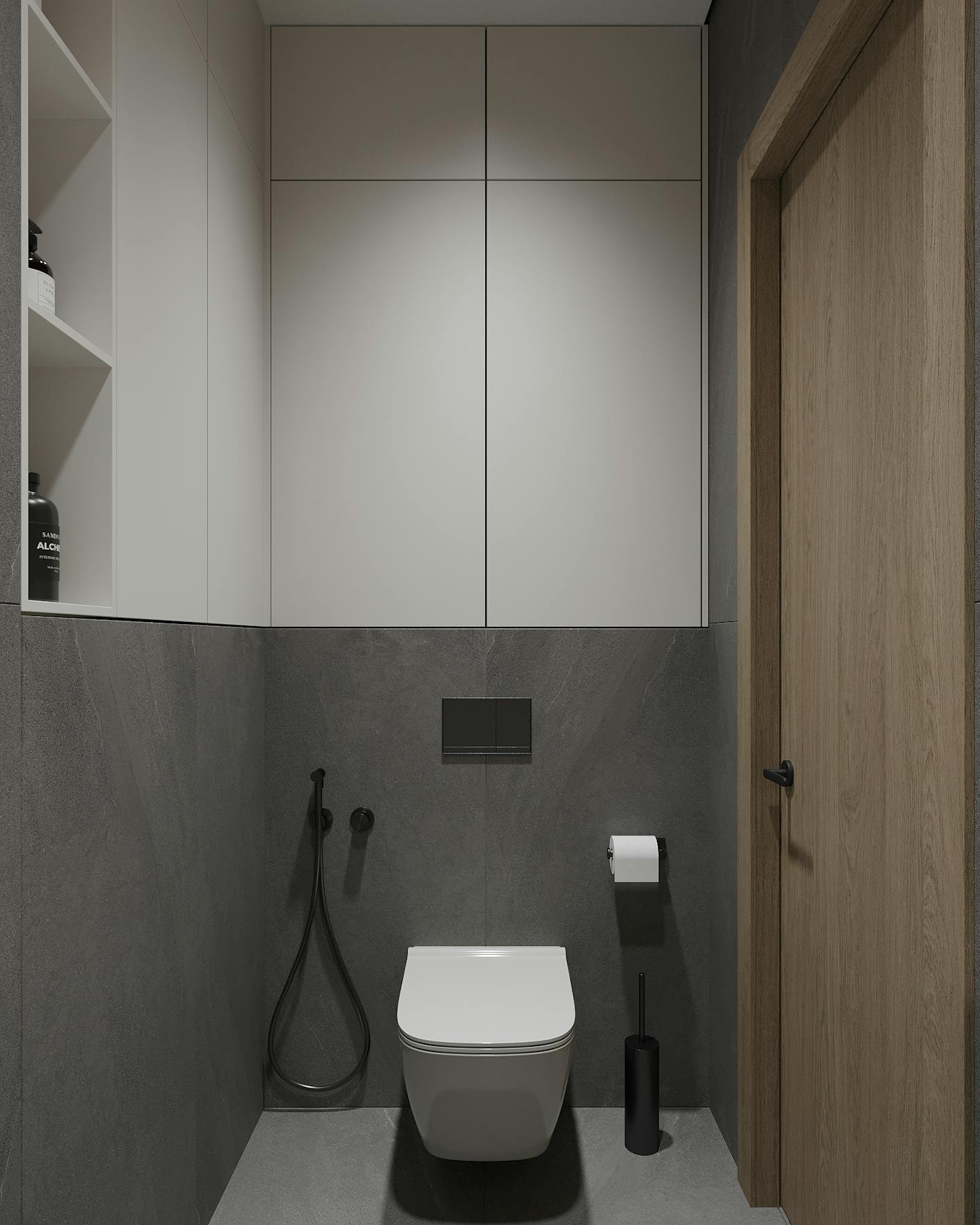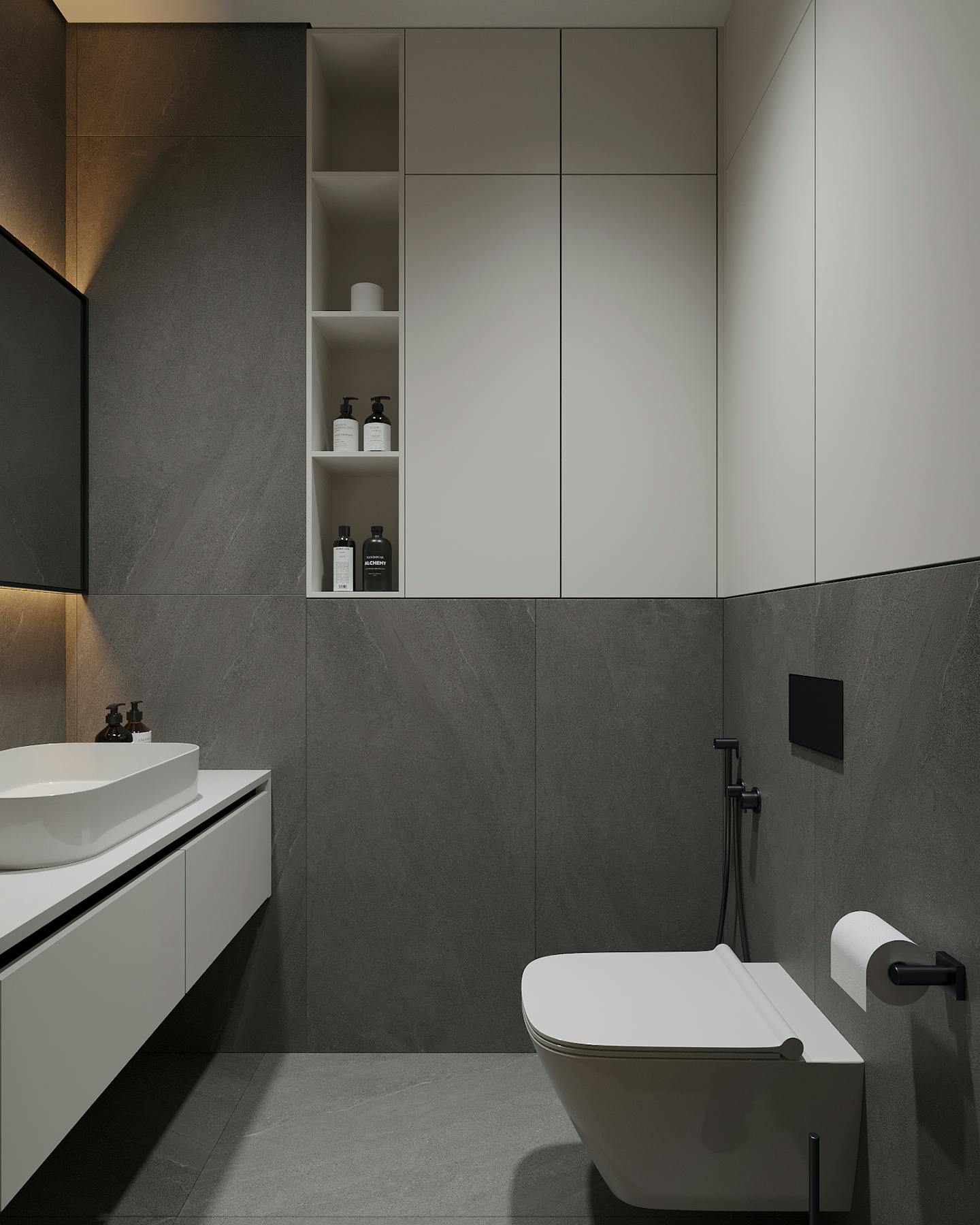 Акцент делается на простоту и минимализм пространства, при этом мебель и декор отличаются функциональностью и прекрасно вписываются в интерьер. Черные детали создают яркий контраст.