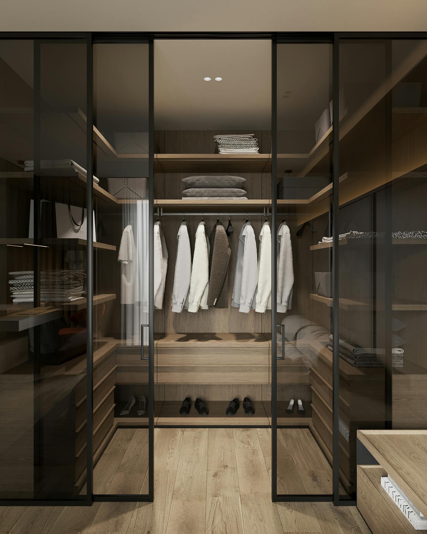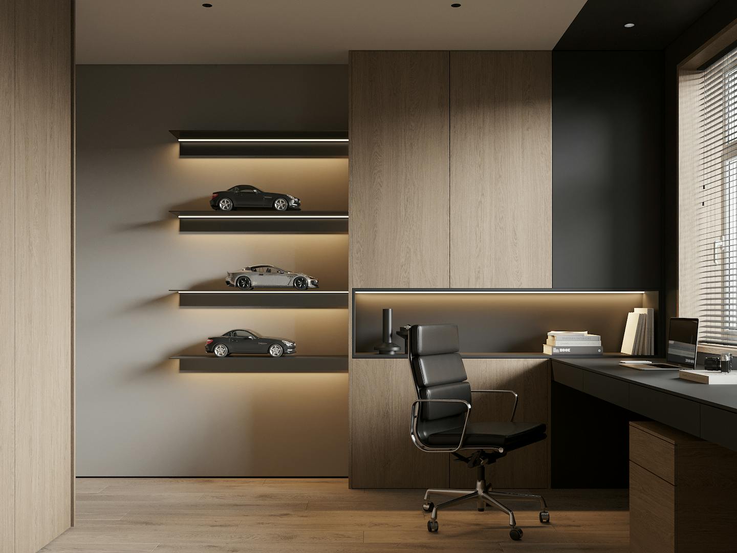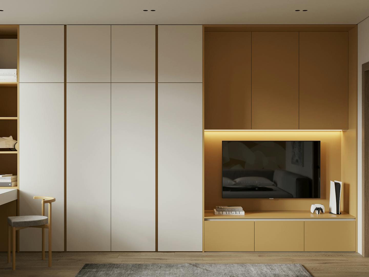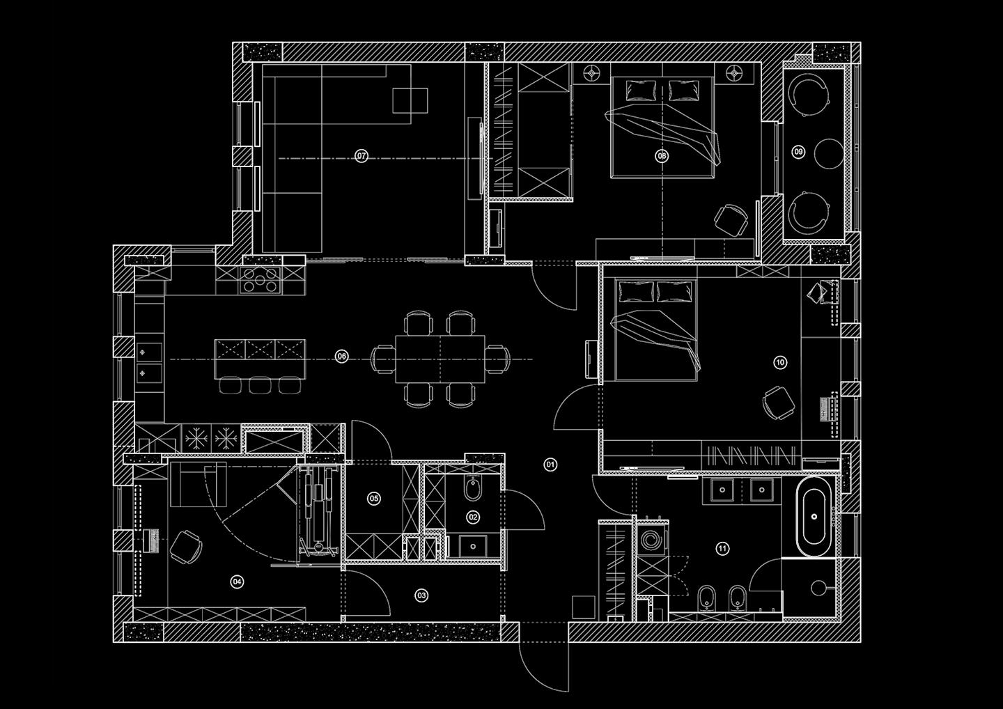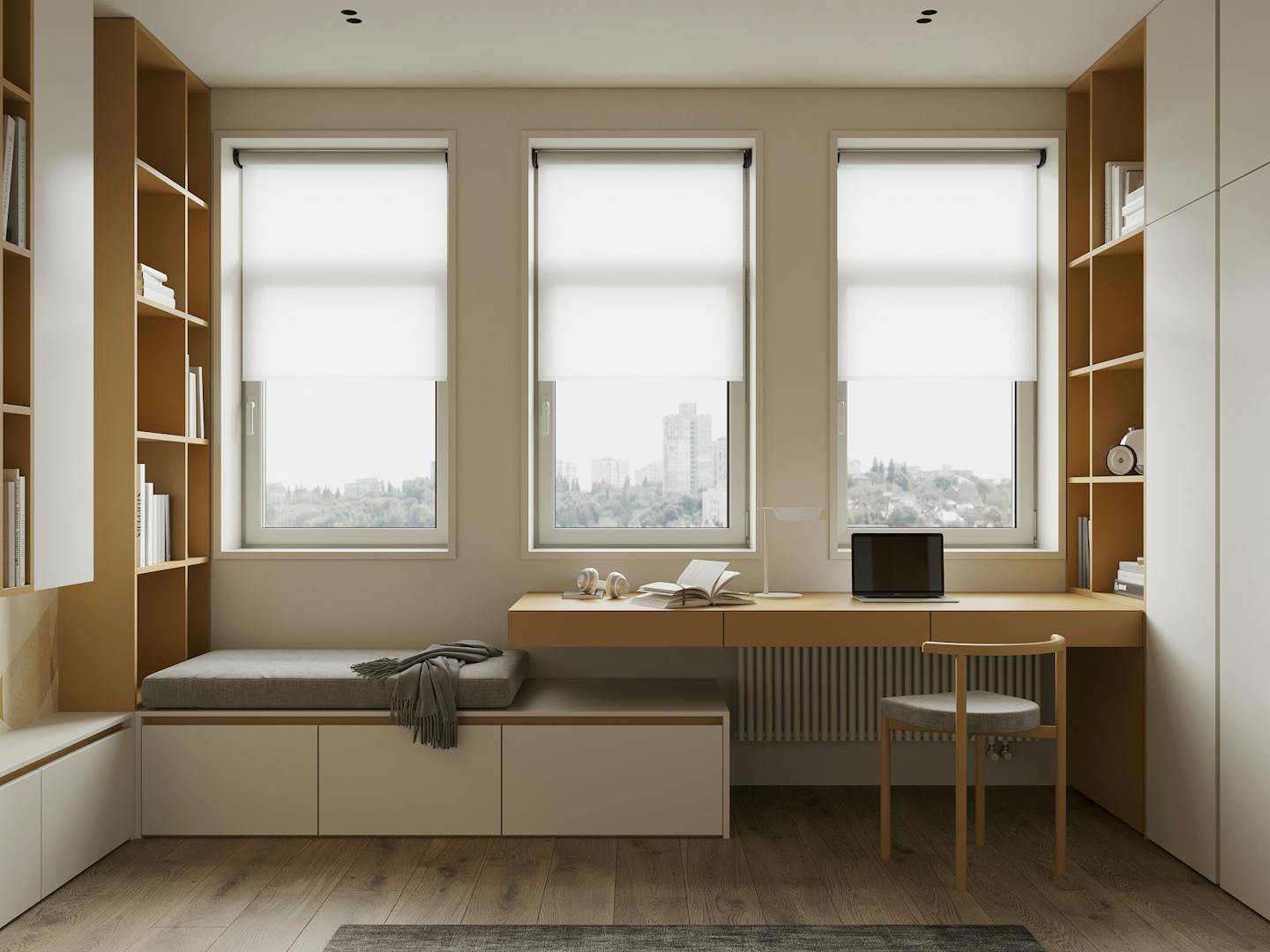 Акцент делается на простоту и минимализм пространства, при этом мебель и декор отличаются функциональностью и прекрасно вписываются в интерьер. Черные детали создают яркий контраст.