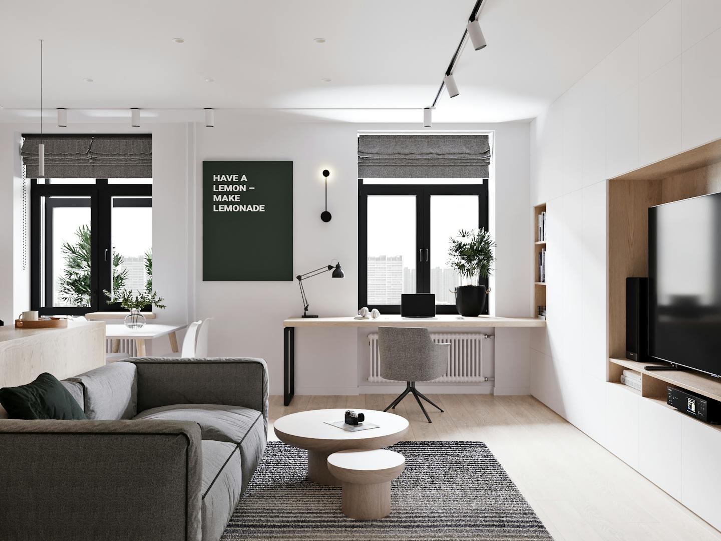 Проект квартиры для семейной пары. Перед нами стояла задача создать светлое и уютное пространство — заказчикам нравится скандинавский стиль.