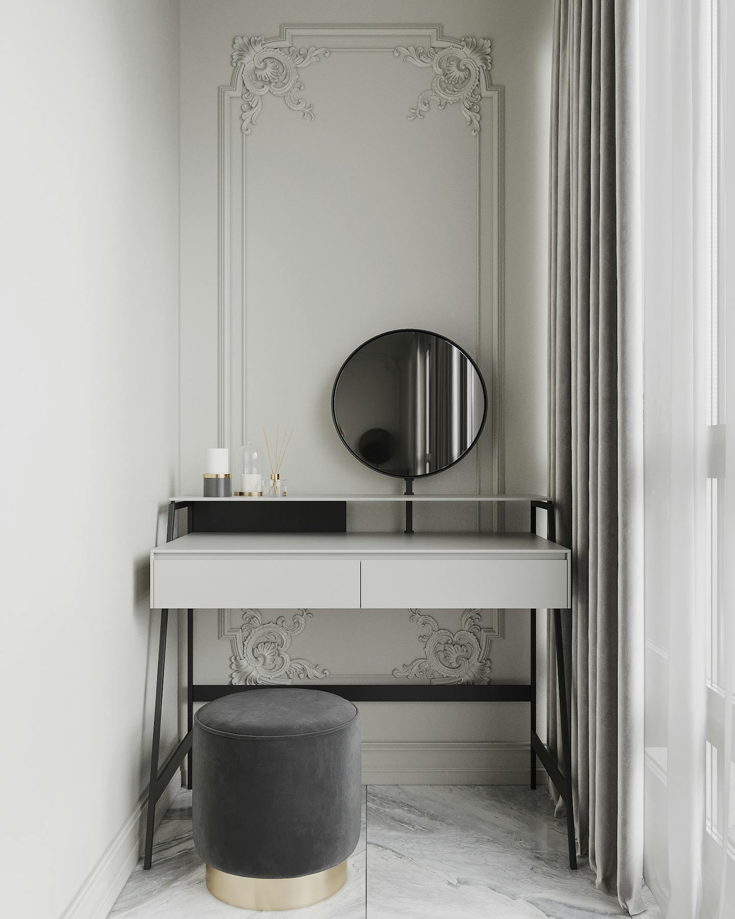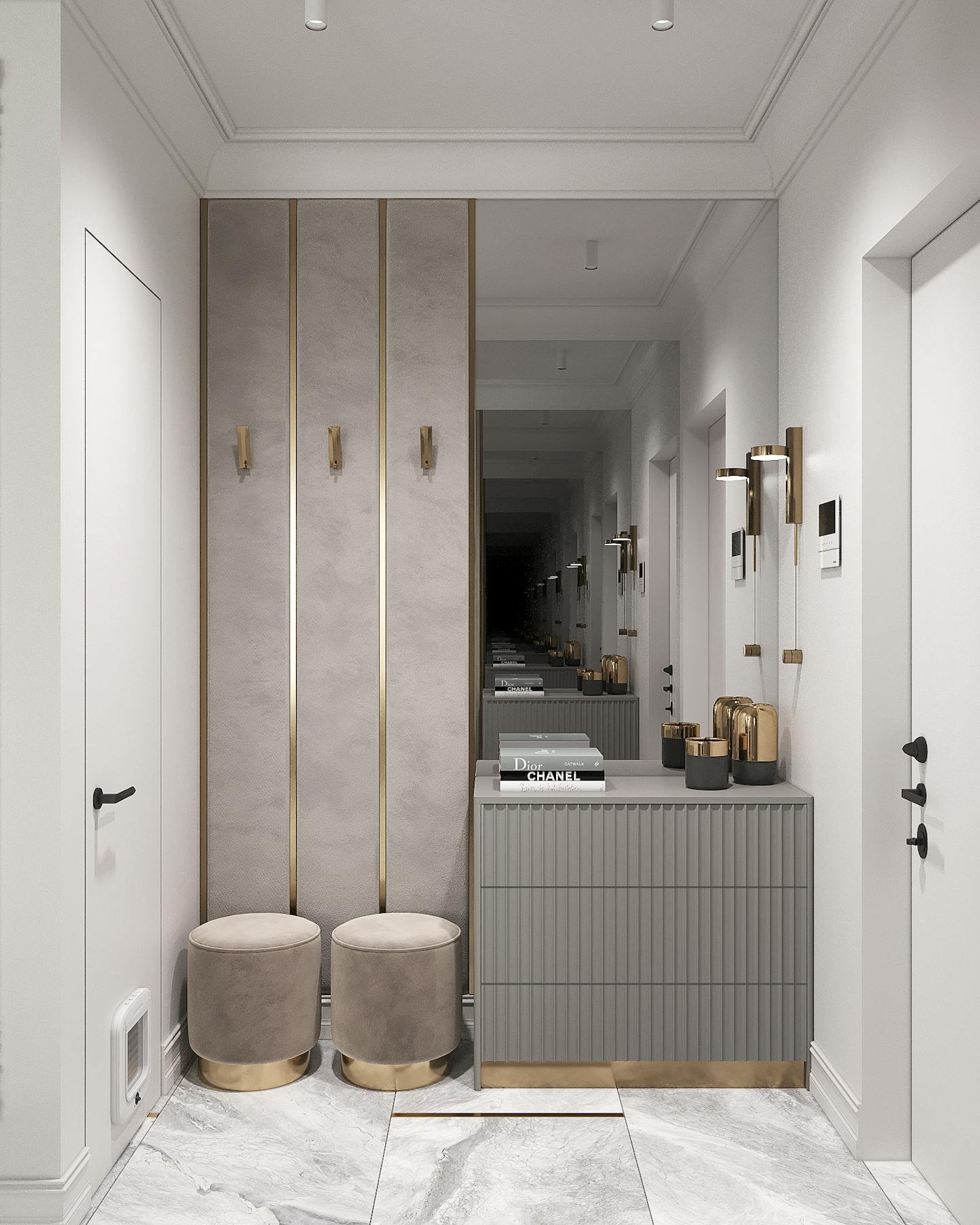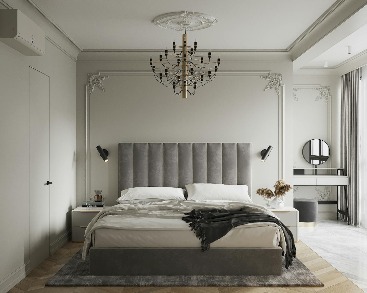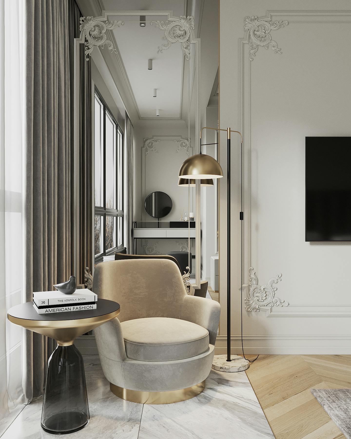 Проект квартиры в стиле неоклассика с элементами ар-деко для молодой семьи с ребёнком.
