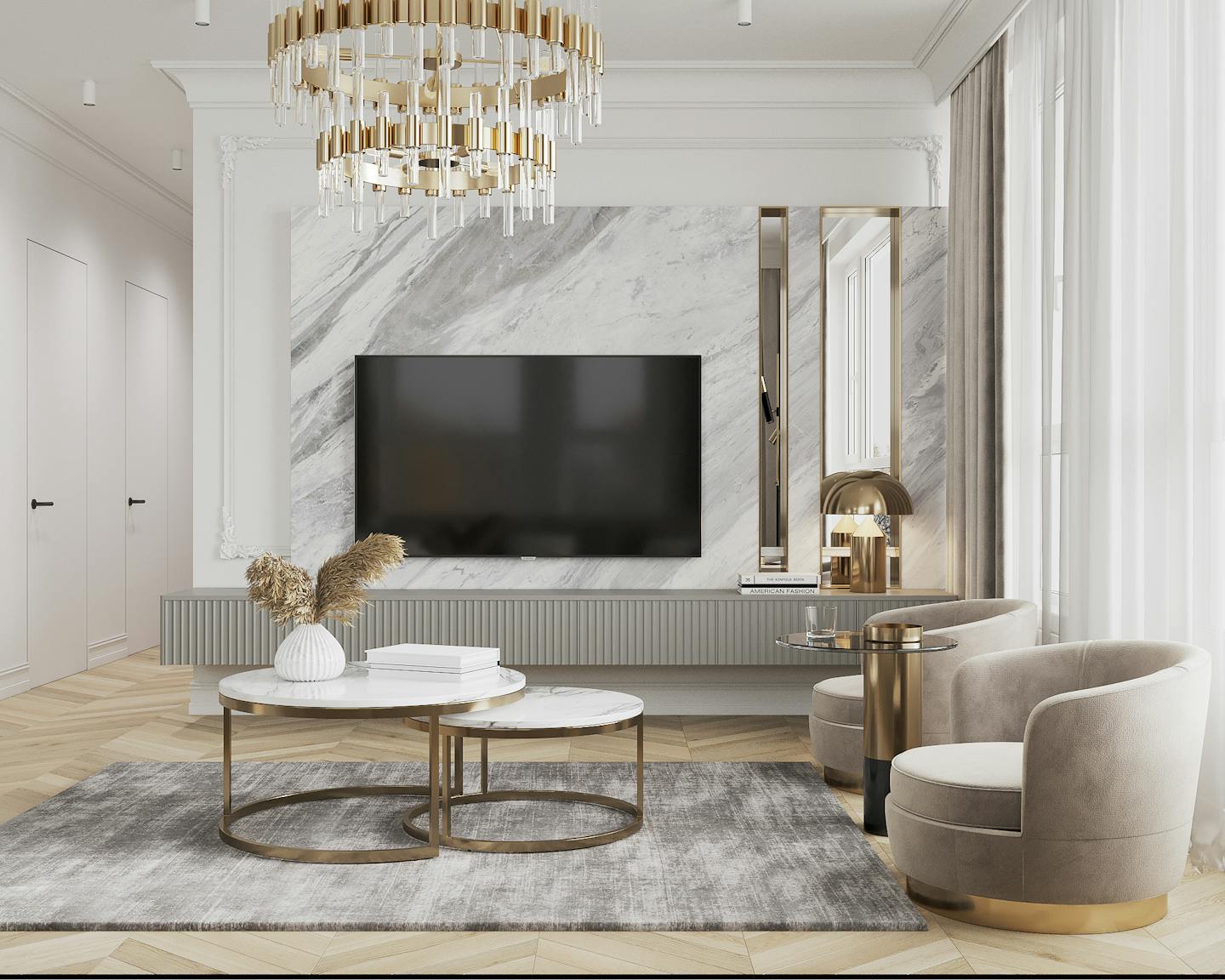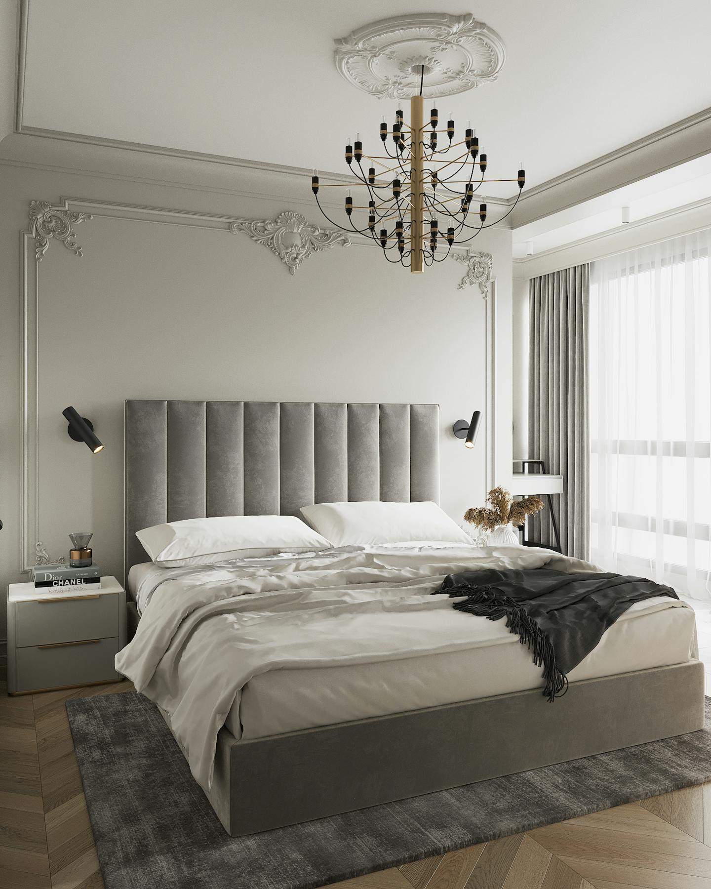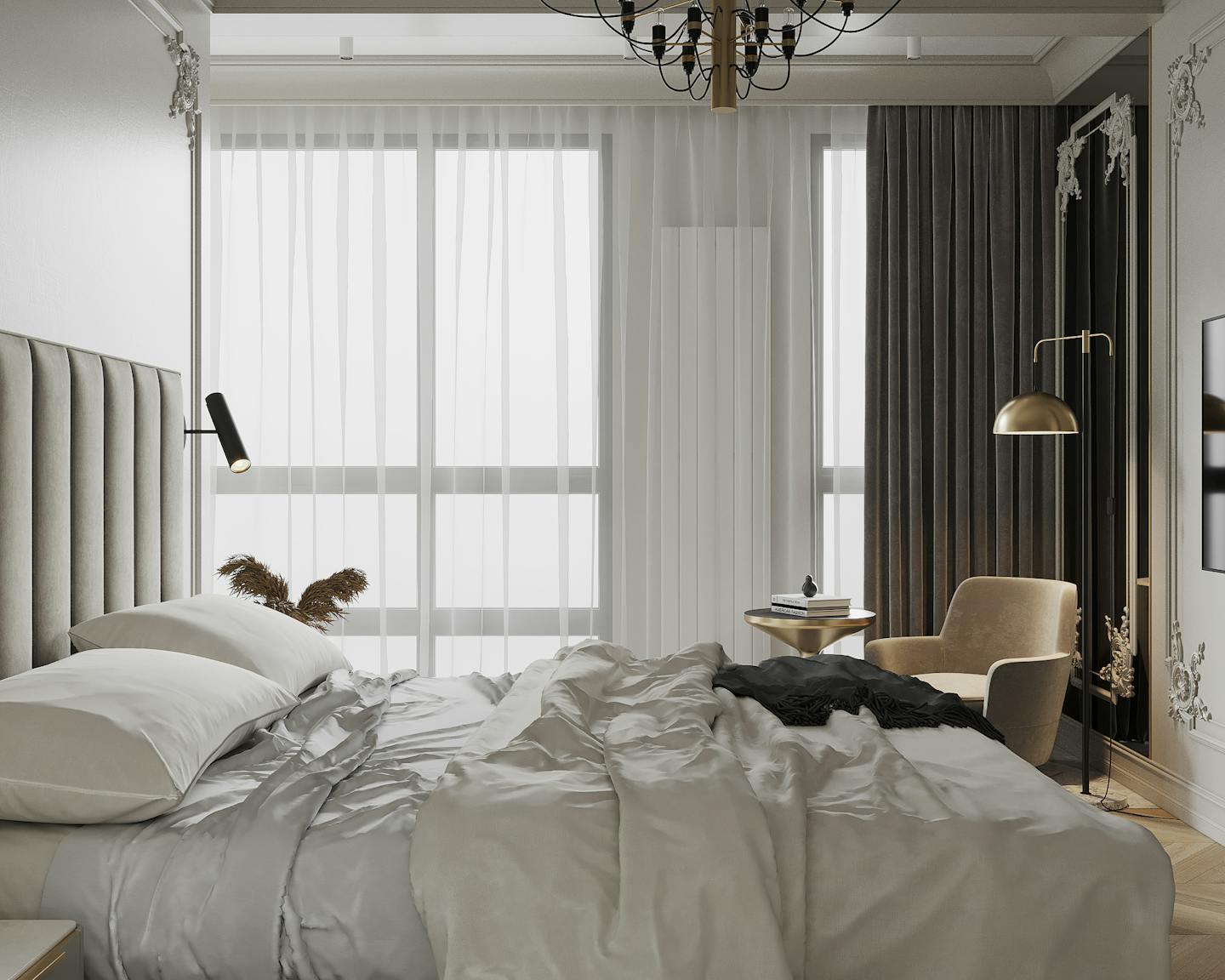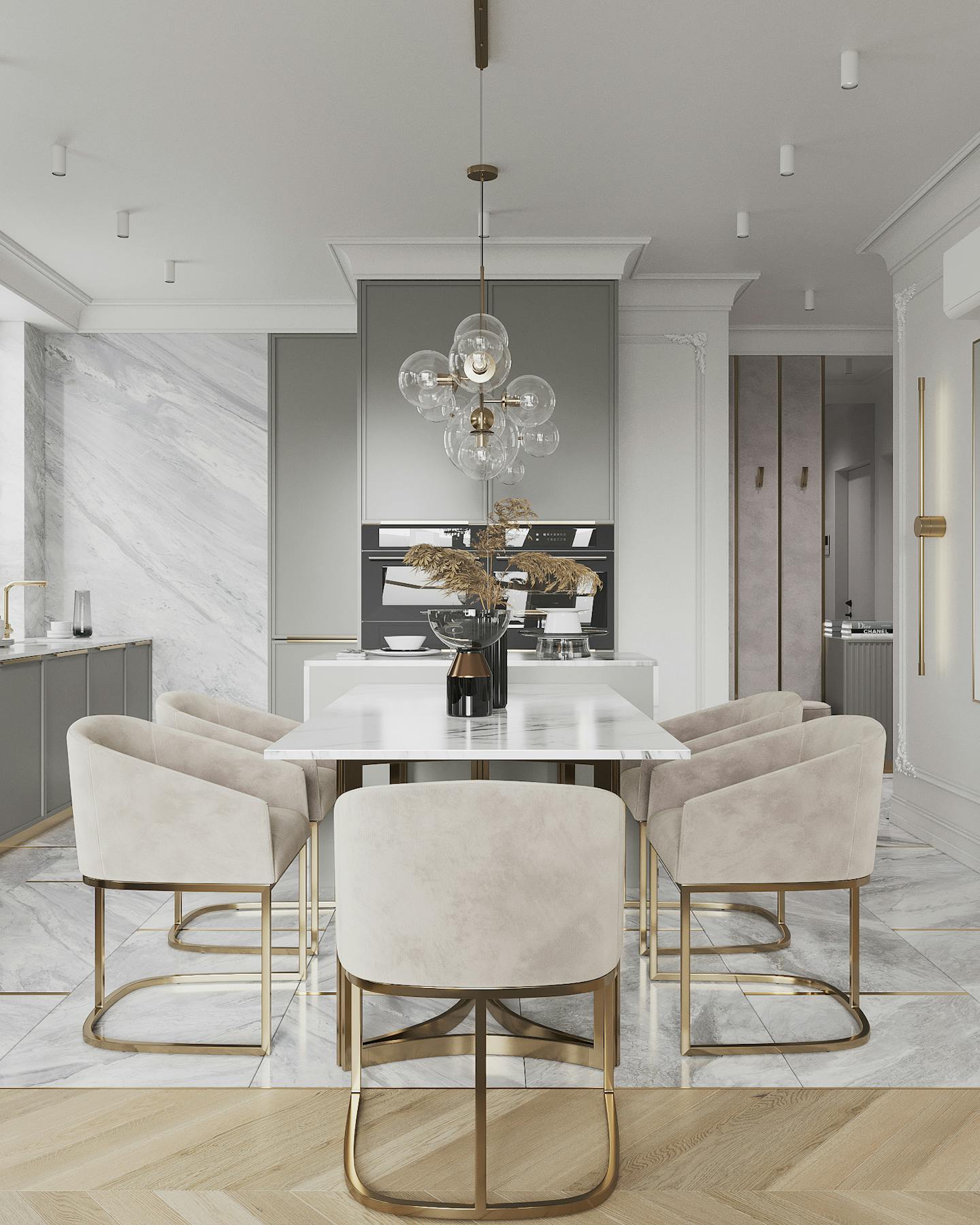 Проект квартиры в стиле неоклассика с элементами ар-деко для молодой семьи с ребёнком.