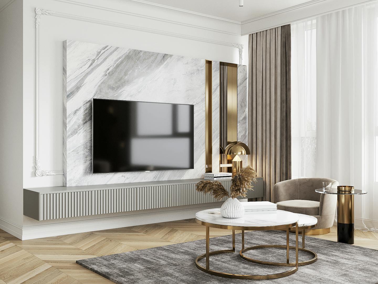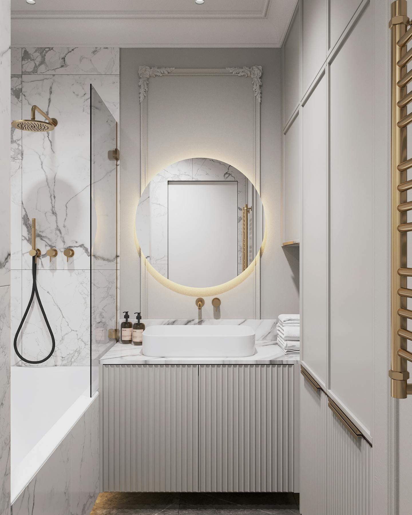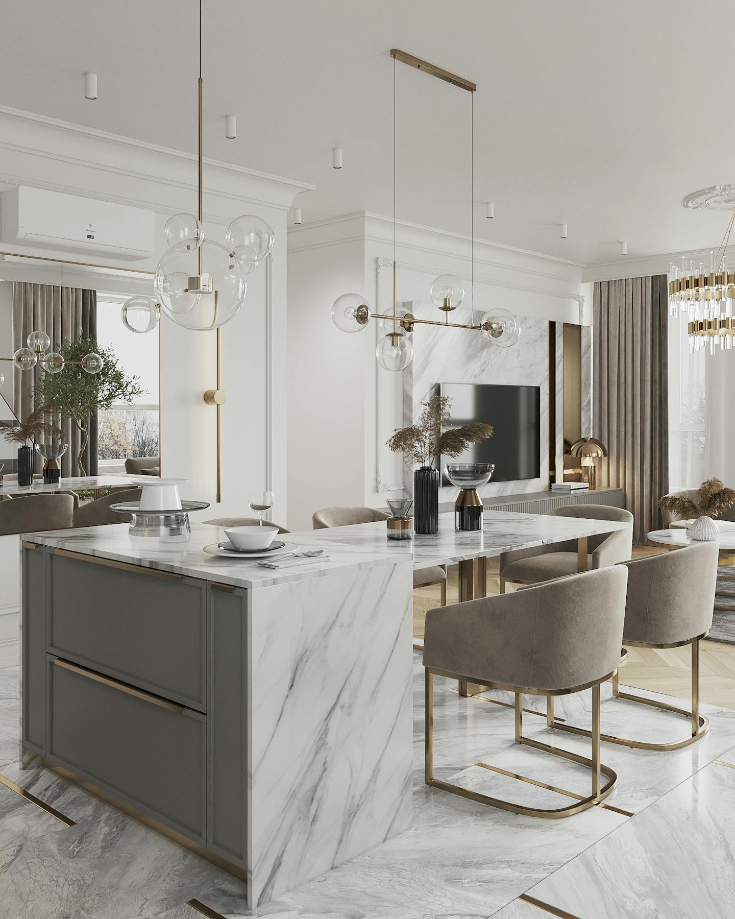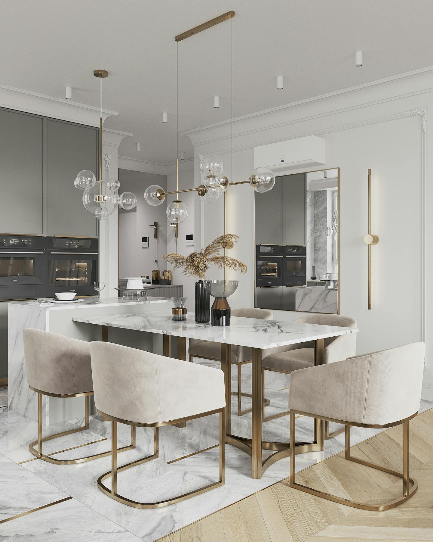 Проект квартиры в стиле неоклассика с элементами ар-деко для молодой семьи с ребёнком.