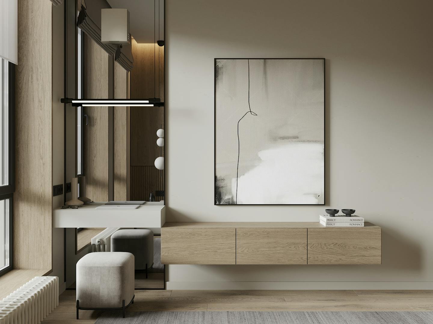 В таком интерьере важными элементами являются текстильные изделия, которые создают ощущение тепла и уюта. Мы использовали мягкие ковры, пушистые подушки и пледы из естественных материалов, таких как шерсть или хлопок.