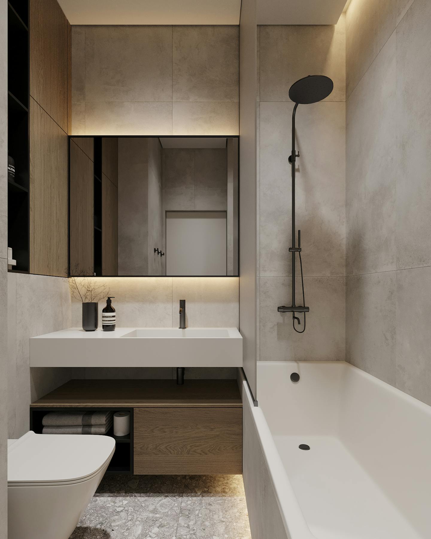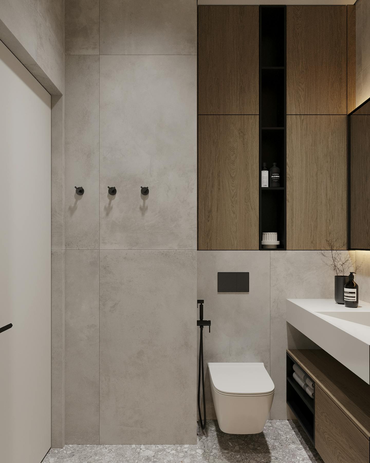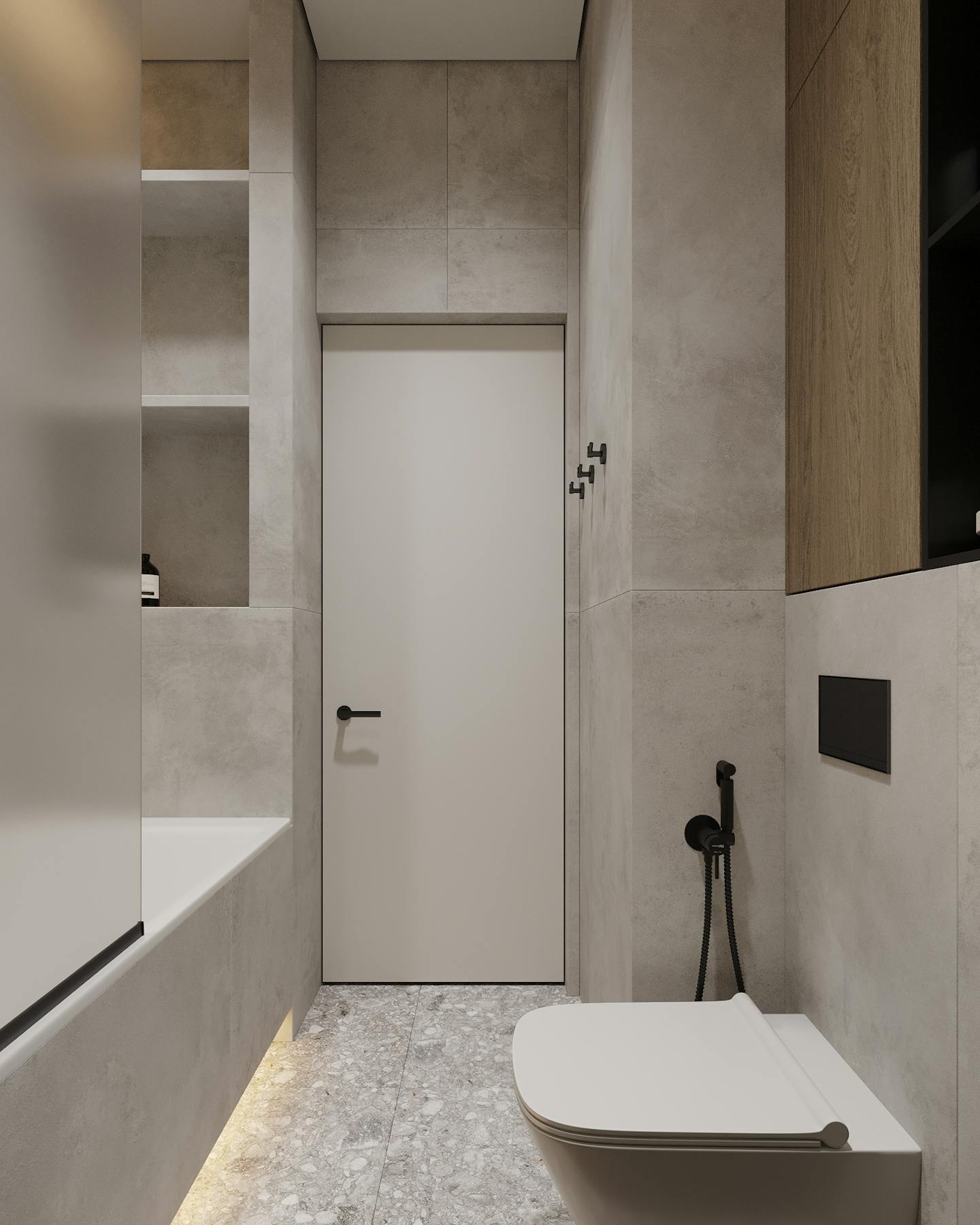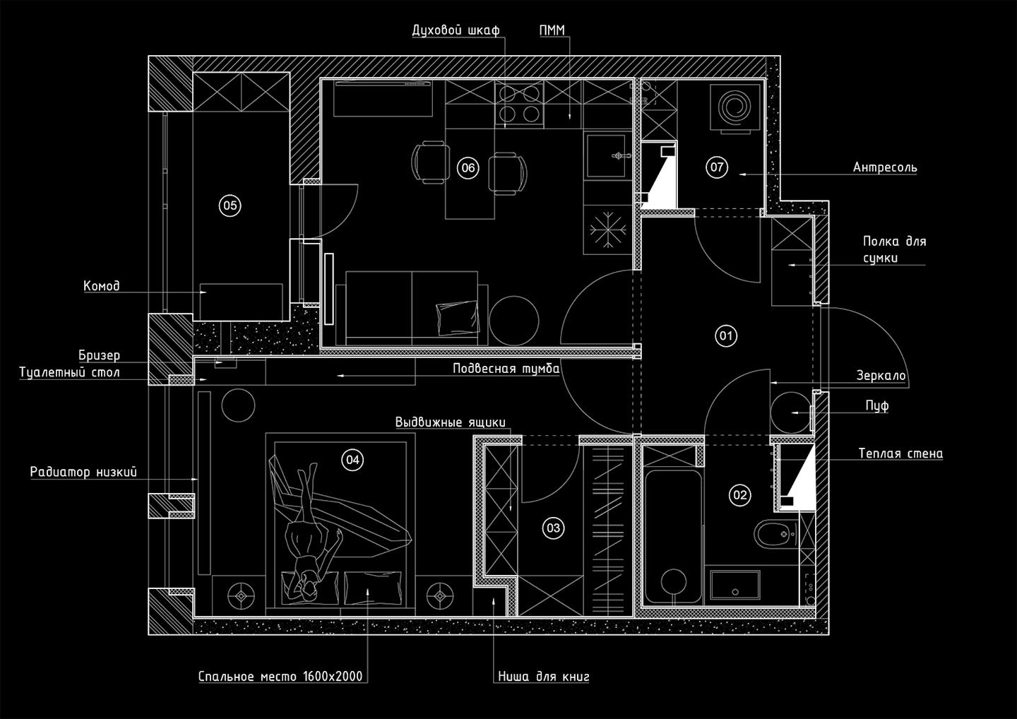 В интерьере много черных контрастных элементов. В целом, в таком пространстве важно сохранить баланс между различными элементами и создать гармоничную обстановку, которая будет способствовать расслаблению и умиротворению.