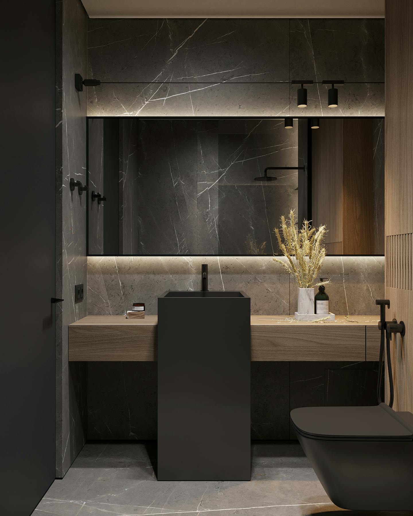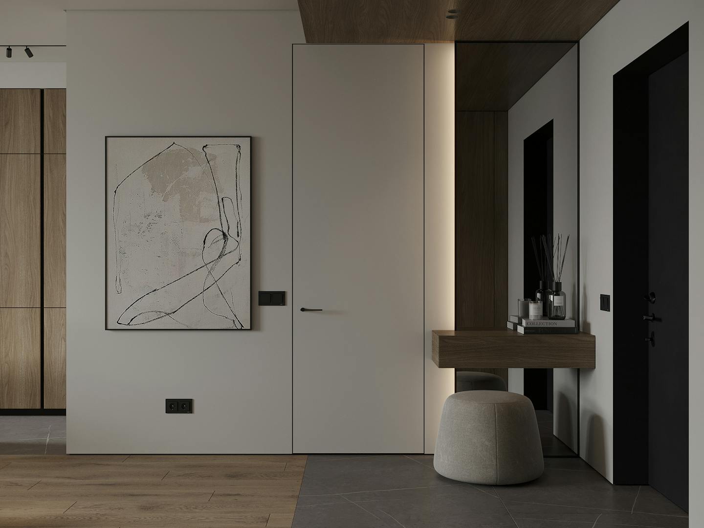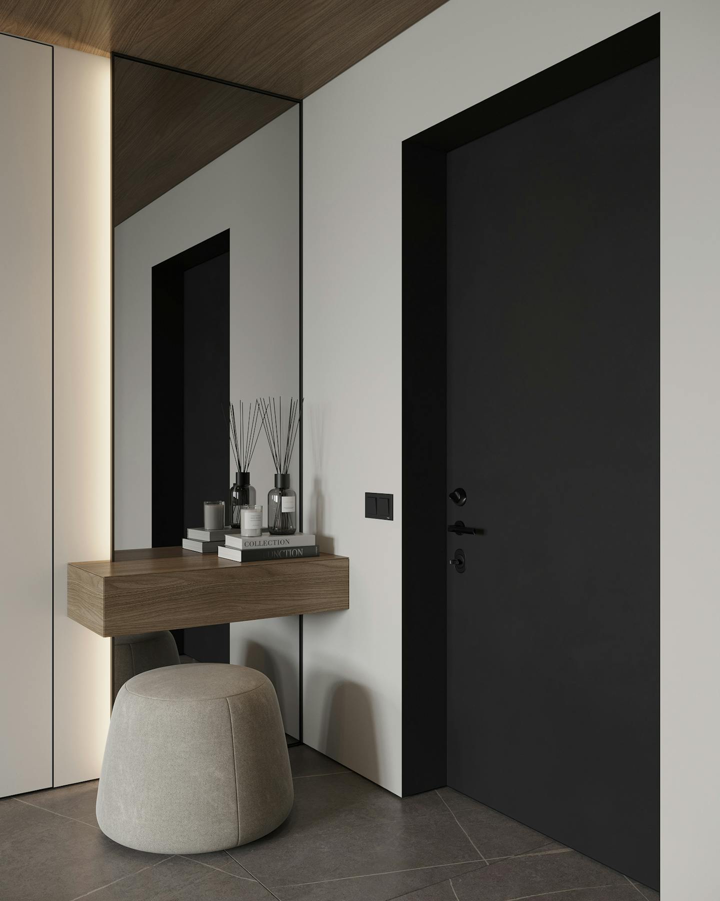 В интерьере использовали панели и двери фабрики Union. Освещение Flos, Vibia, Circa, Центрсвет. Мебель фабрик Poliform, B&B Italia, Boca.