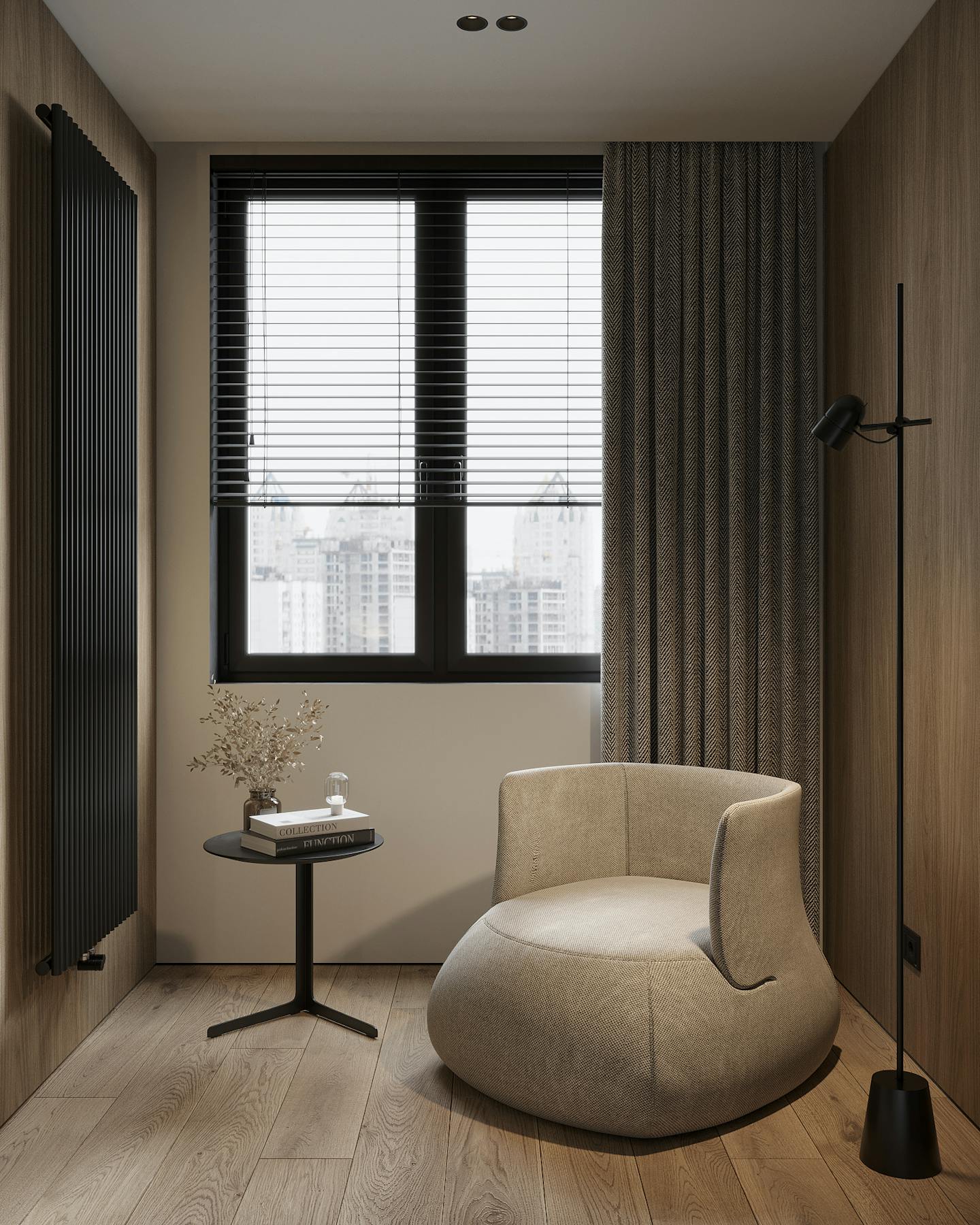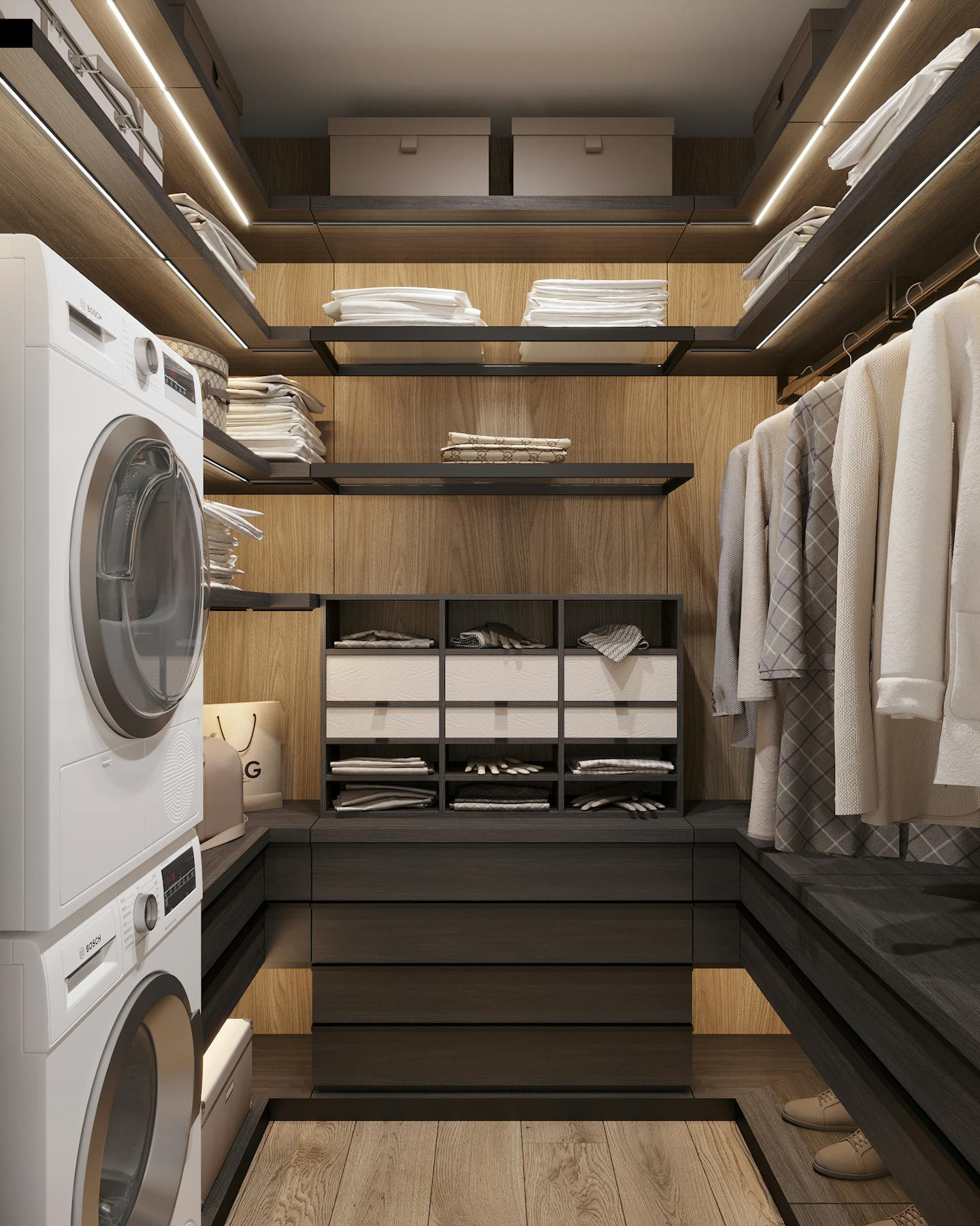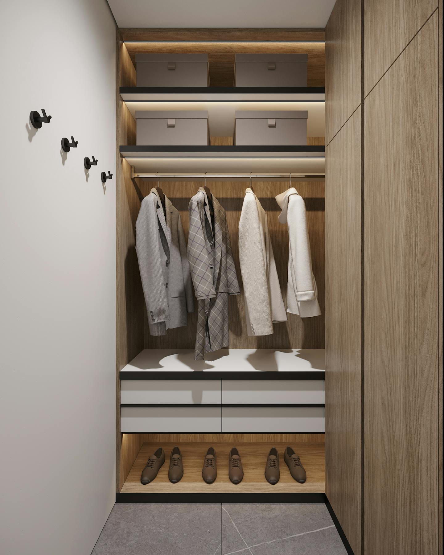 Очень теплый и уютный проект с преобладанием натурального шпона дуба.