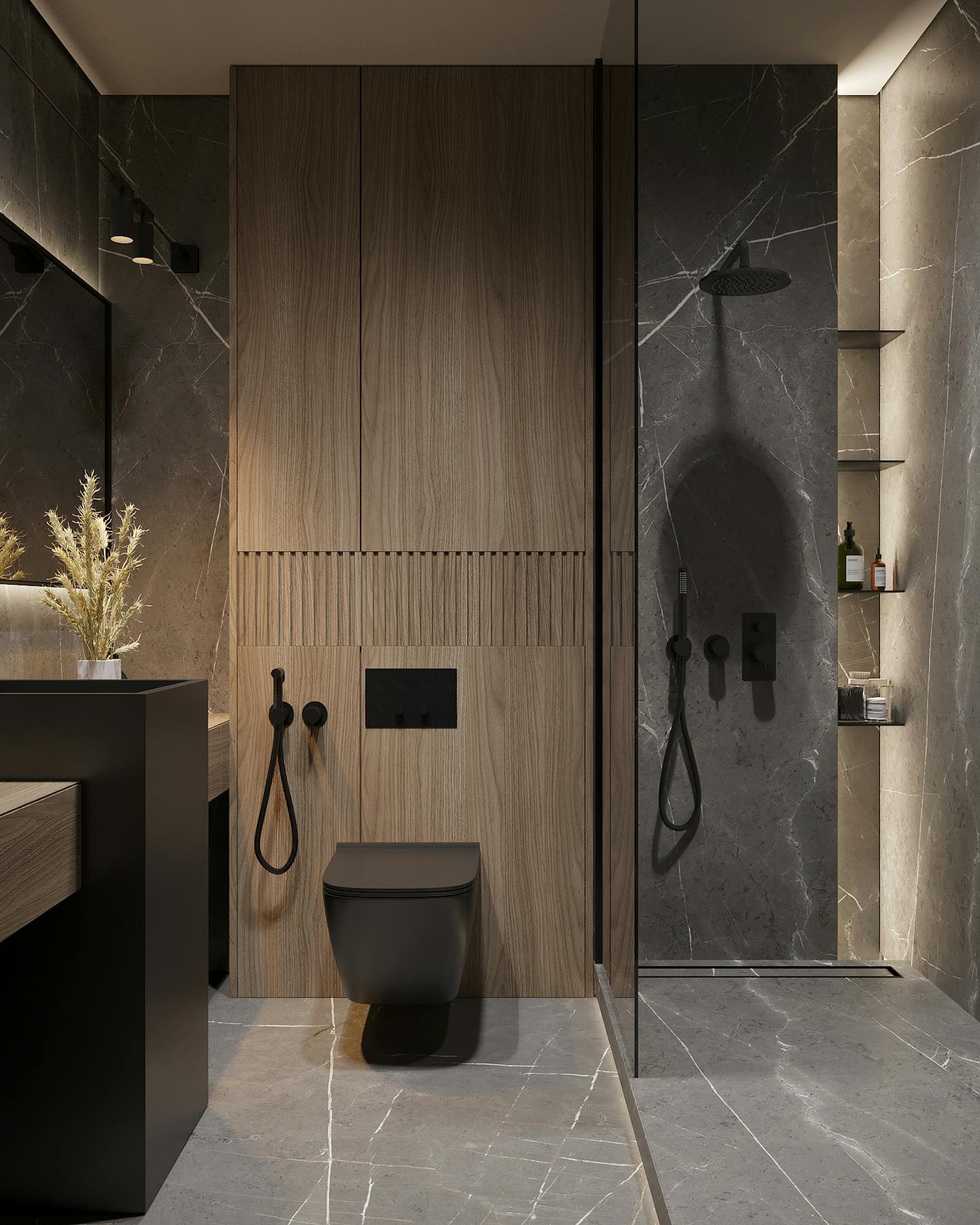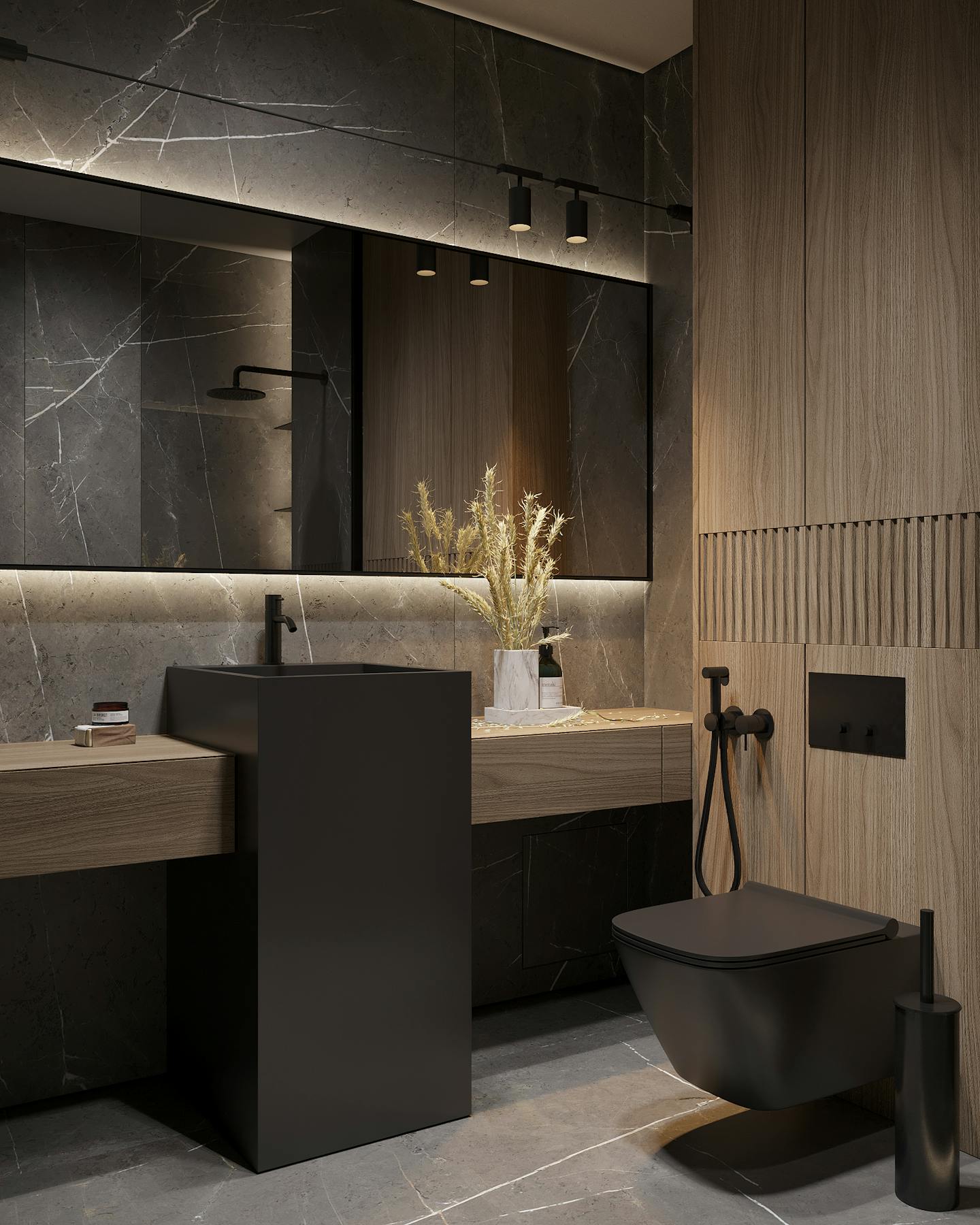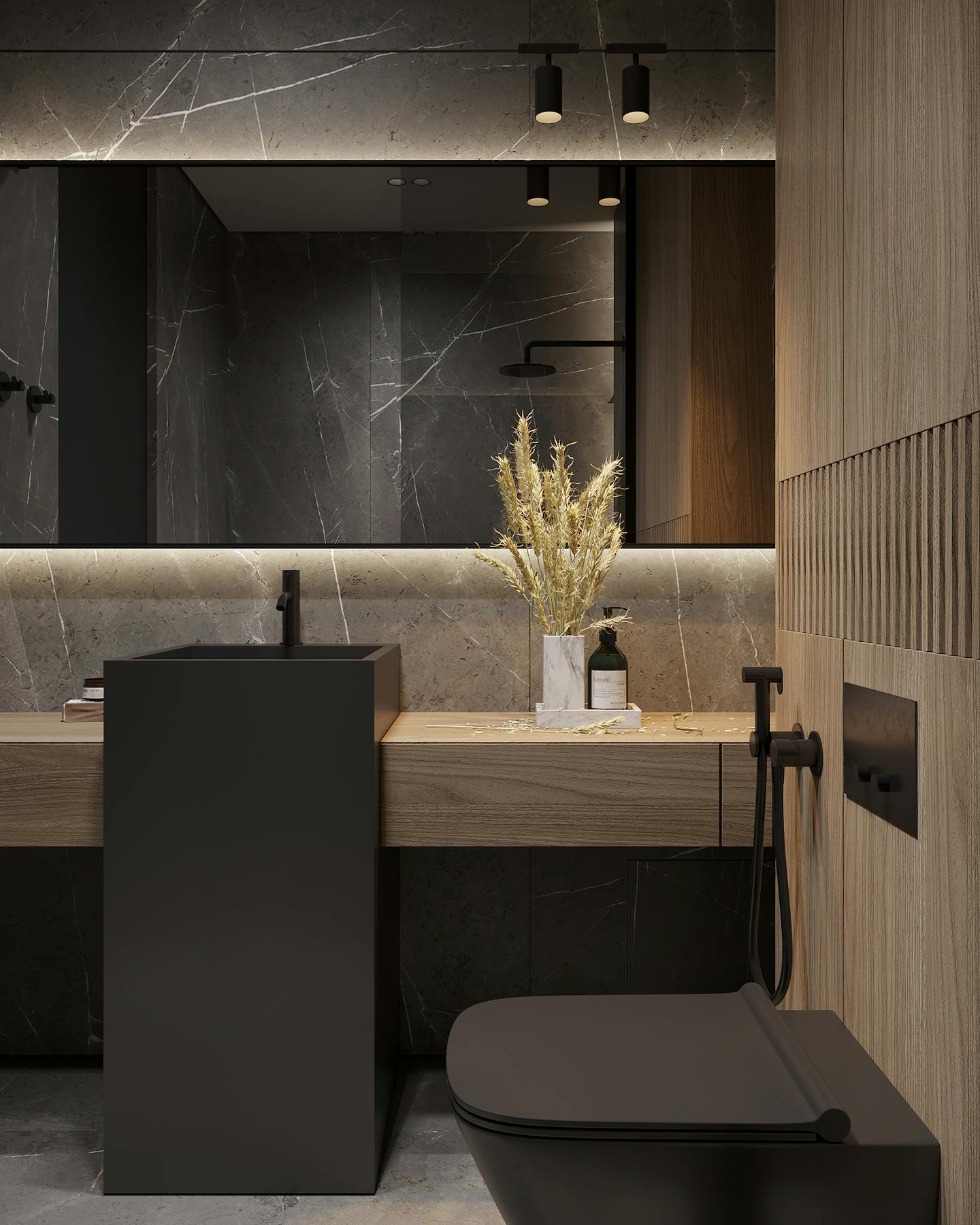 Очень теплый и уютный проект с преобладанием натурального шпона дуба.