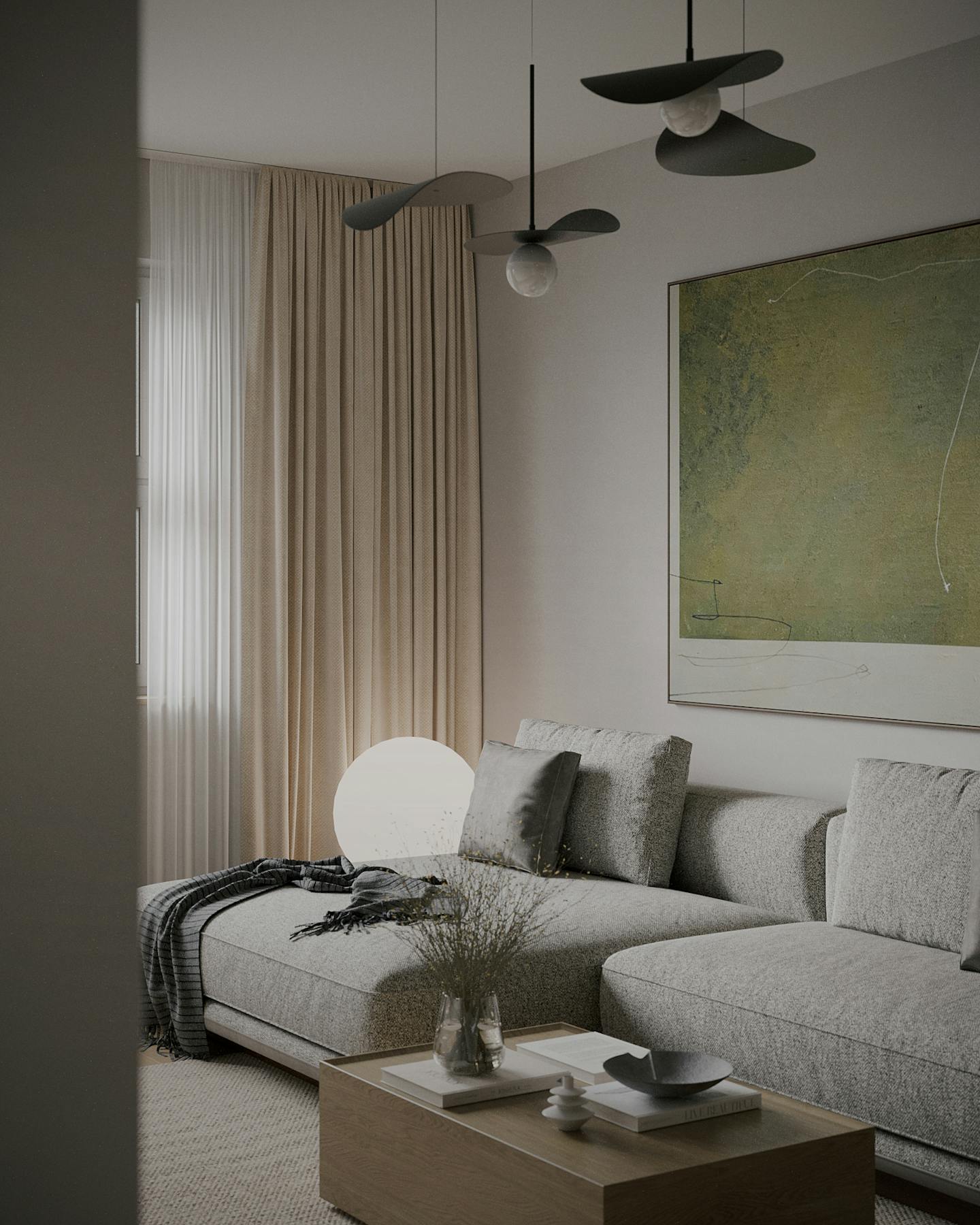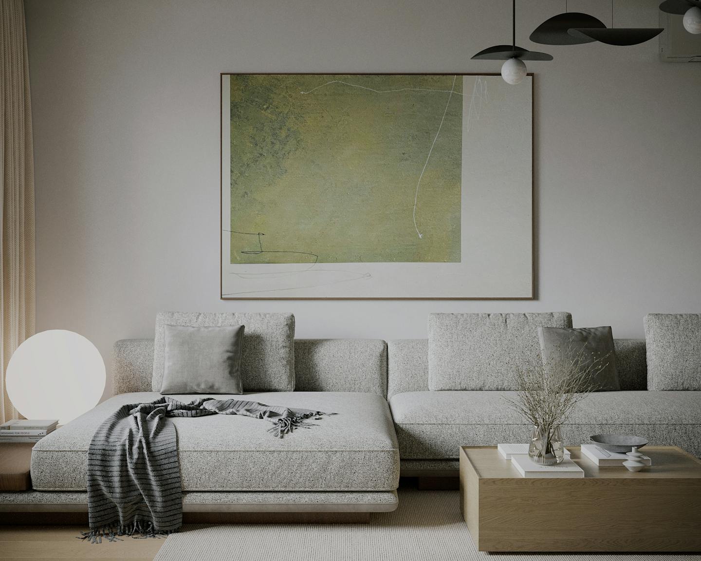 Современный интерьер с природной палитрой. Оливковый цвет становится главным акцентом, создавая приятную атмосферу спокойствия и уюта.