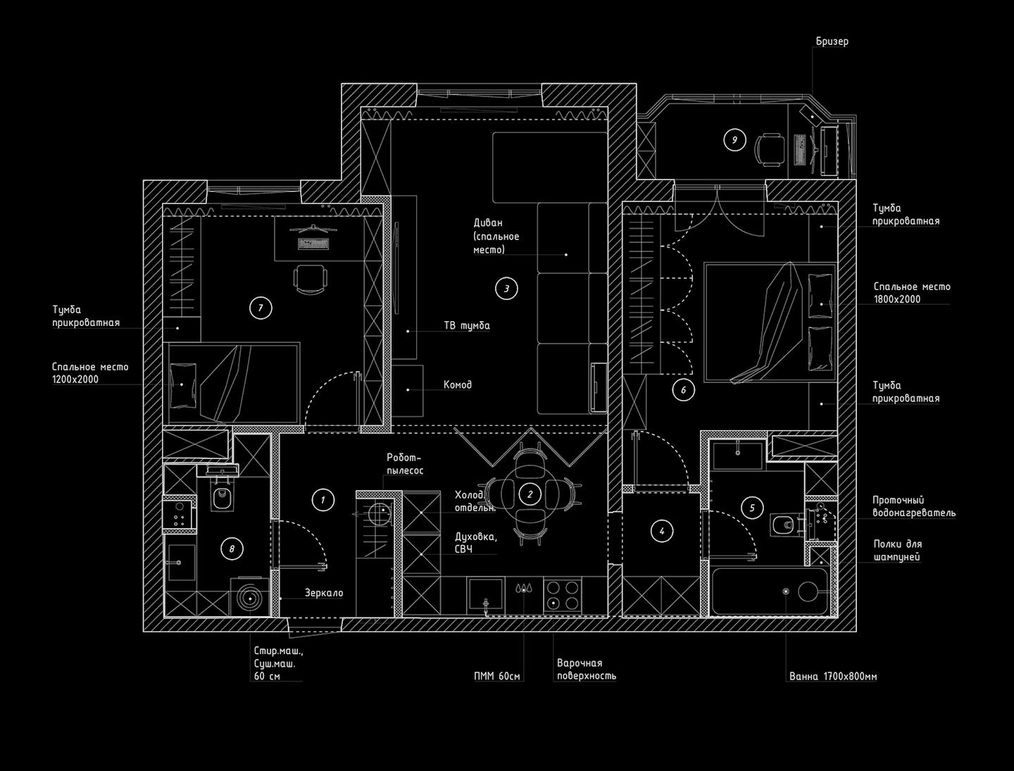 Пространство организовано с учетом пожеланий заказчиков: