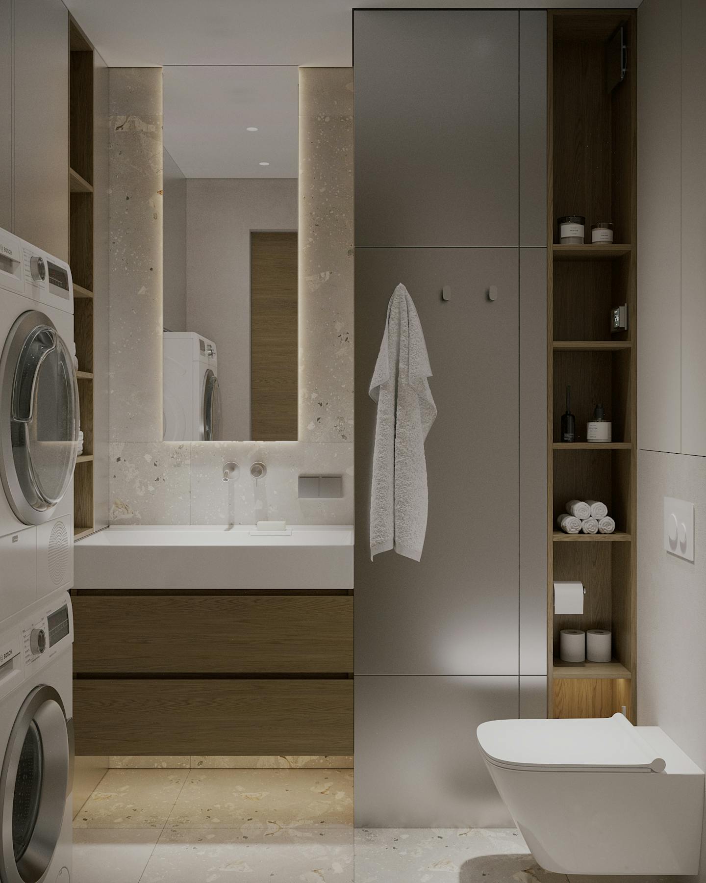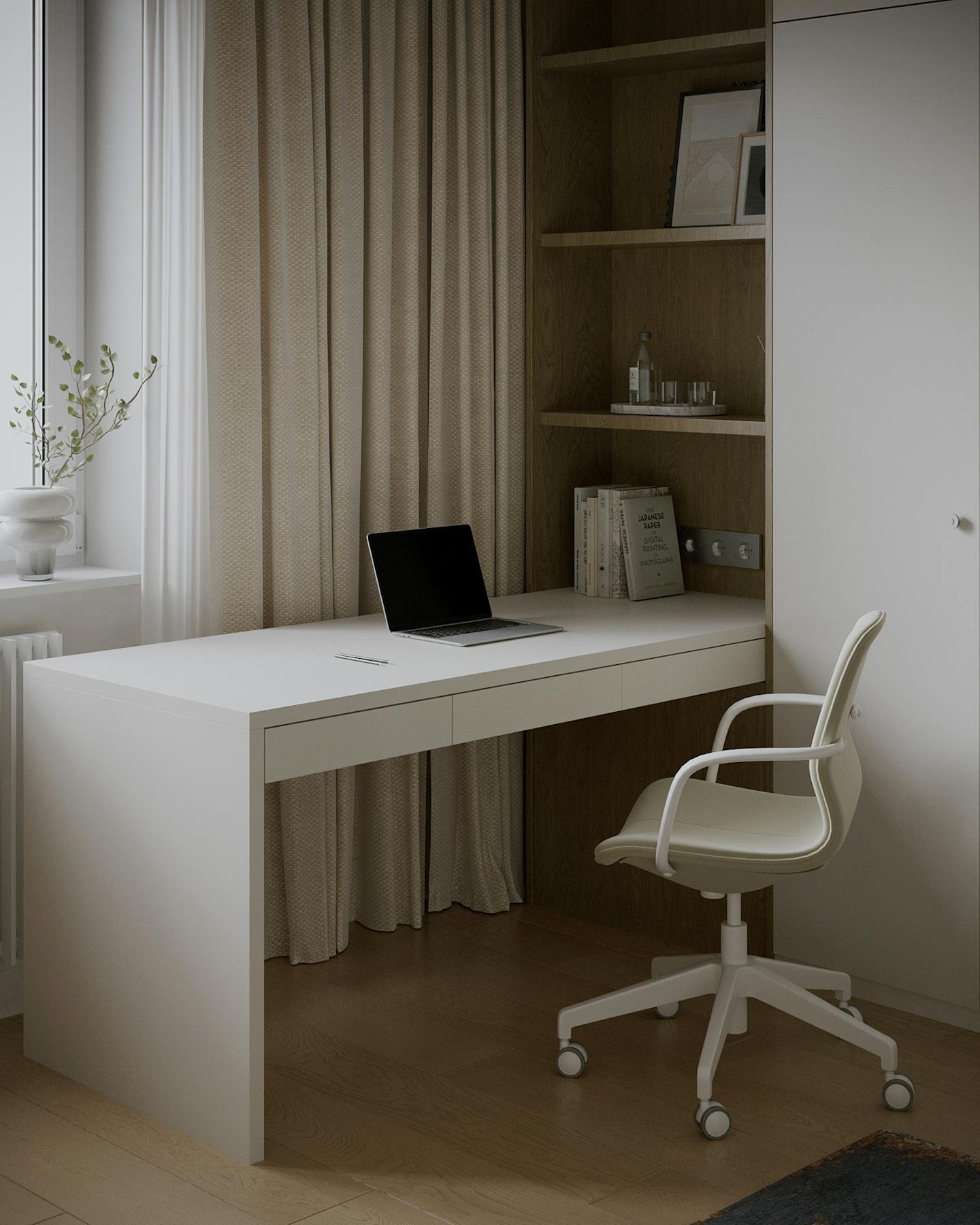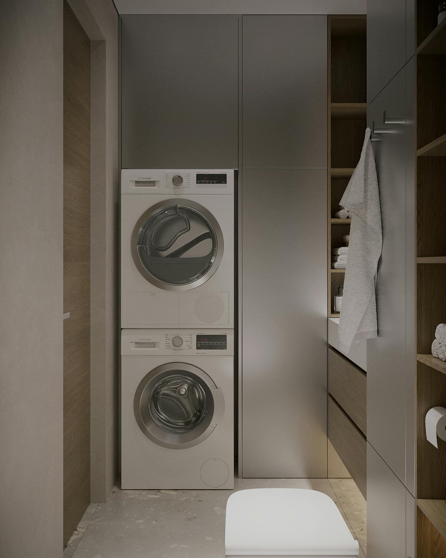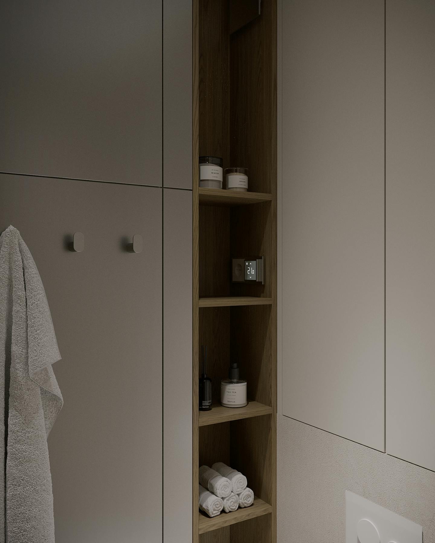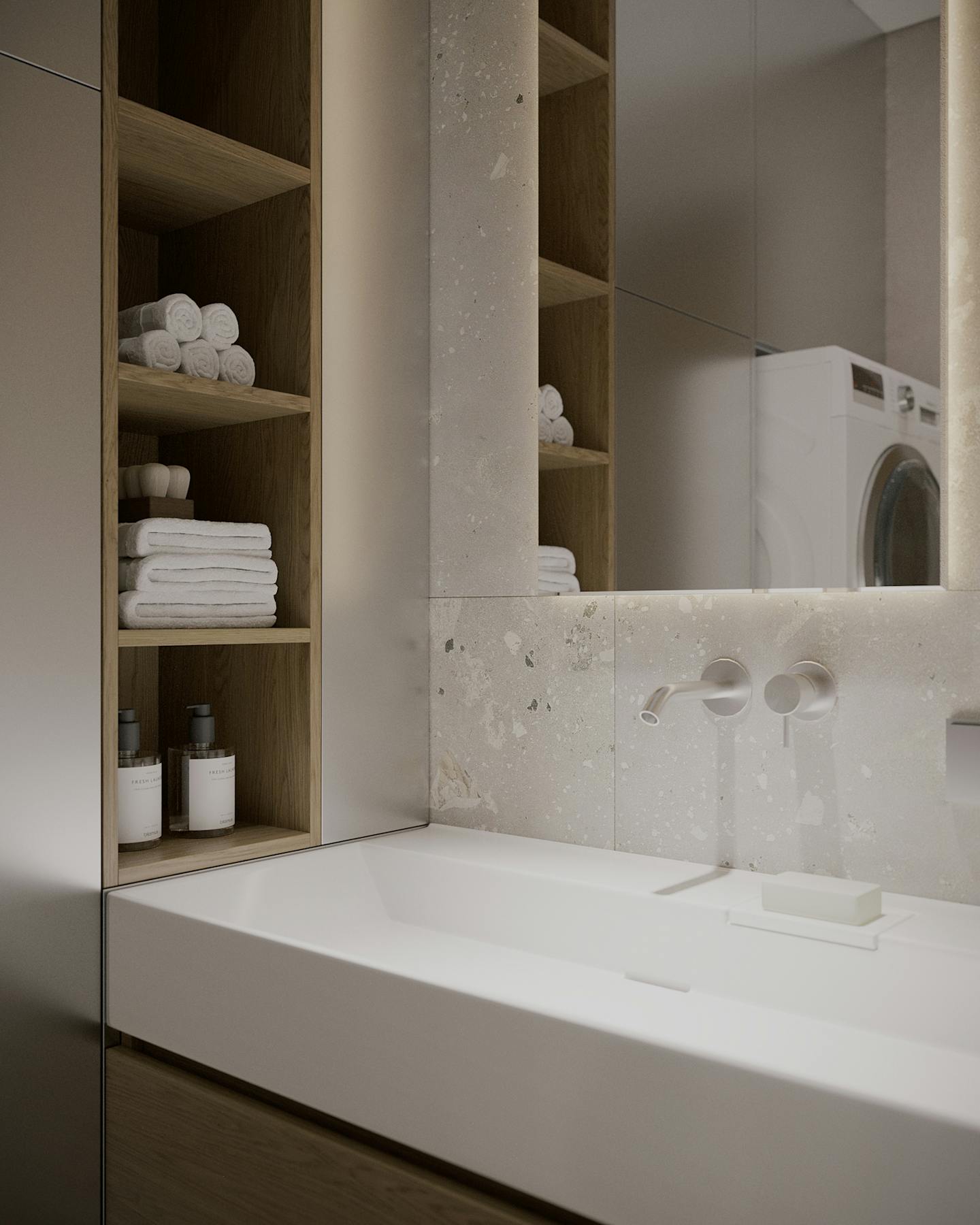 Оливковый цвет в сочетании с минималистичным подходом создает пространство, где каждый элемент находится на своем месте.