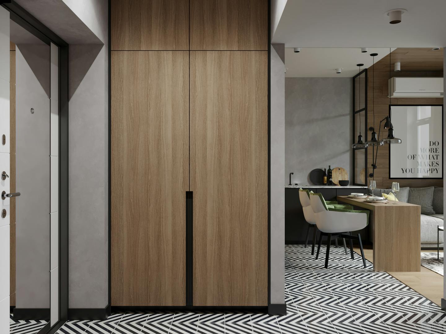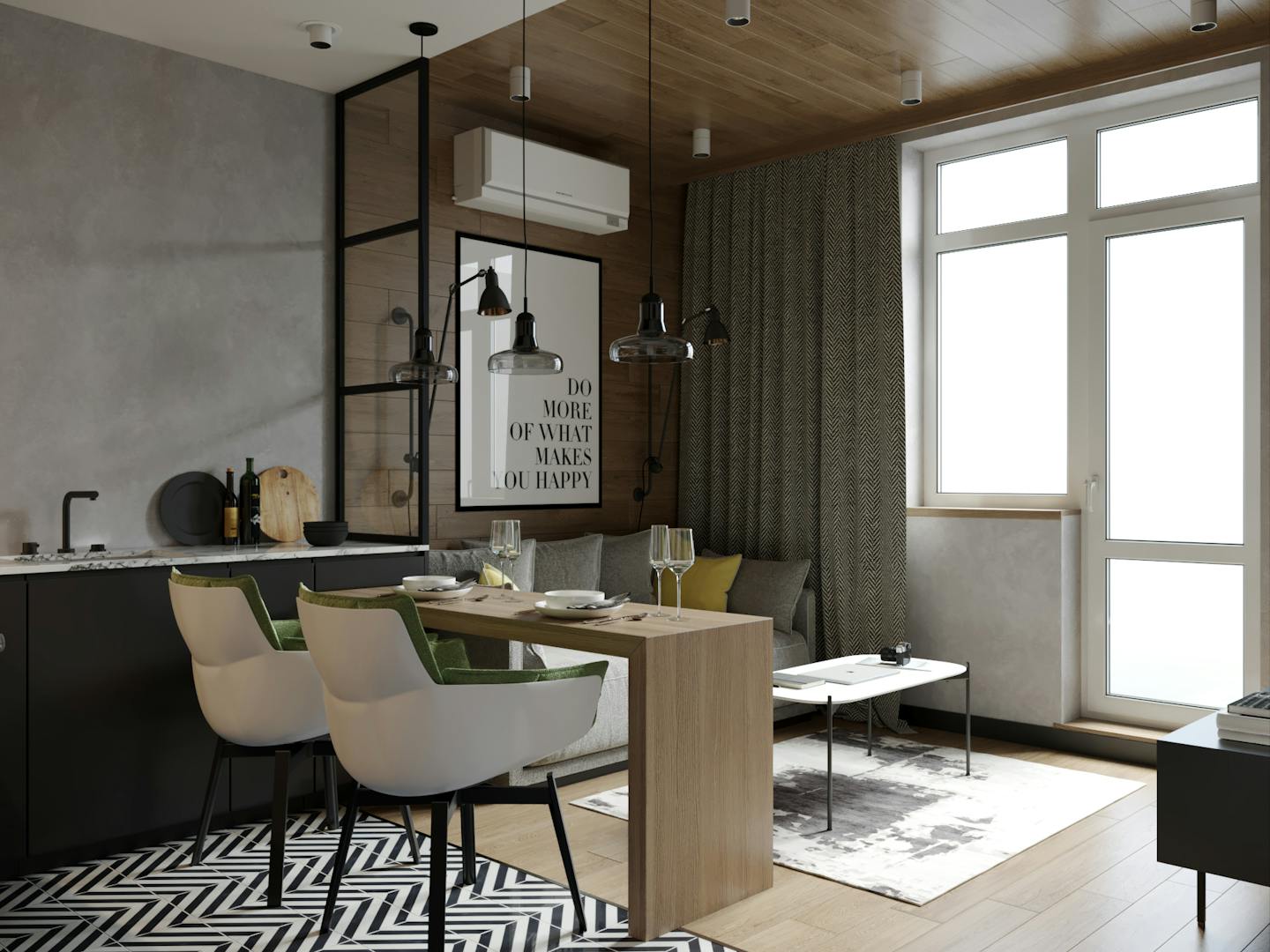 Заказчик проекта — молодая, харизматичная девушка, активно путешествующая по миру. Для нее было важно создать вдохновляющее место, наполненное атмосферой гармонии и спокойствия.