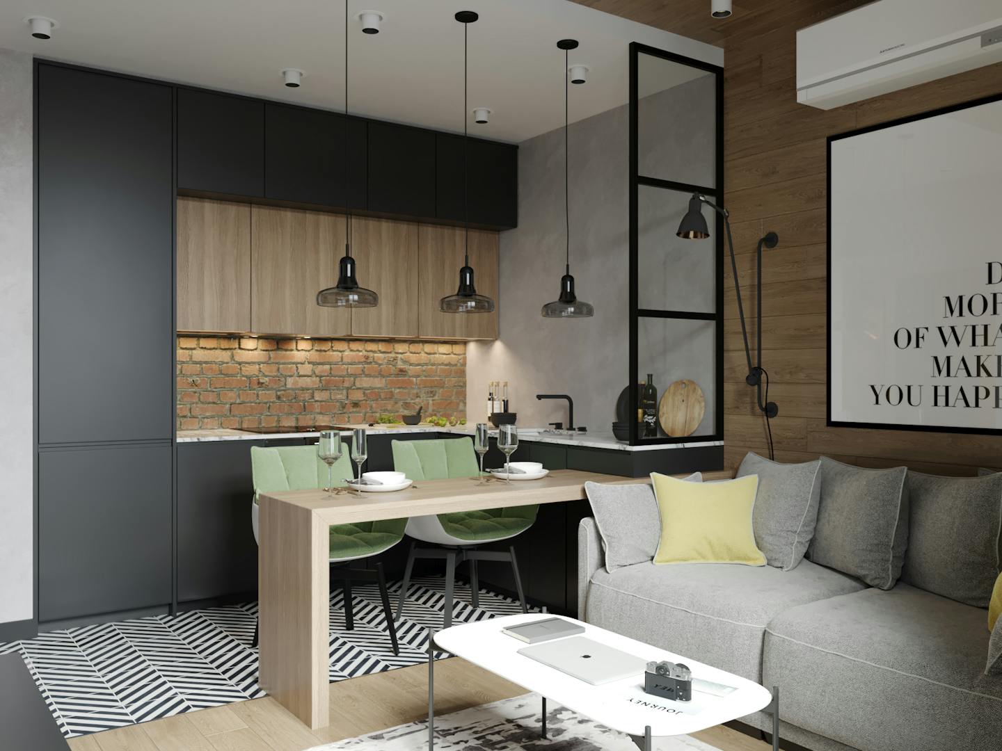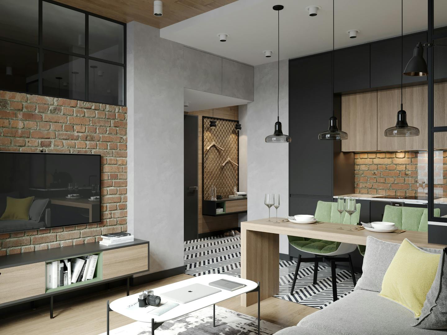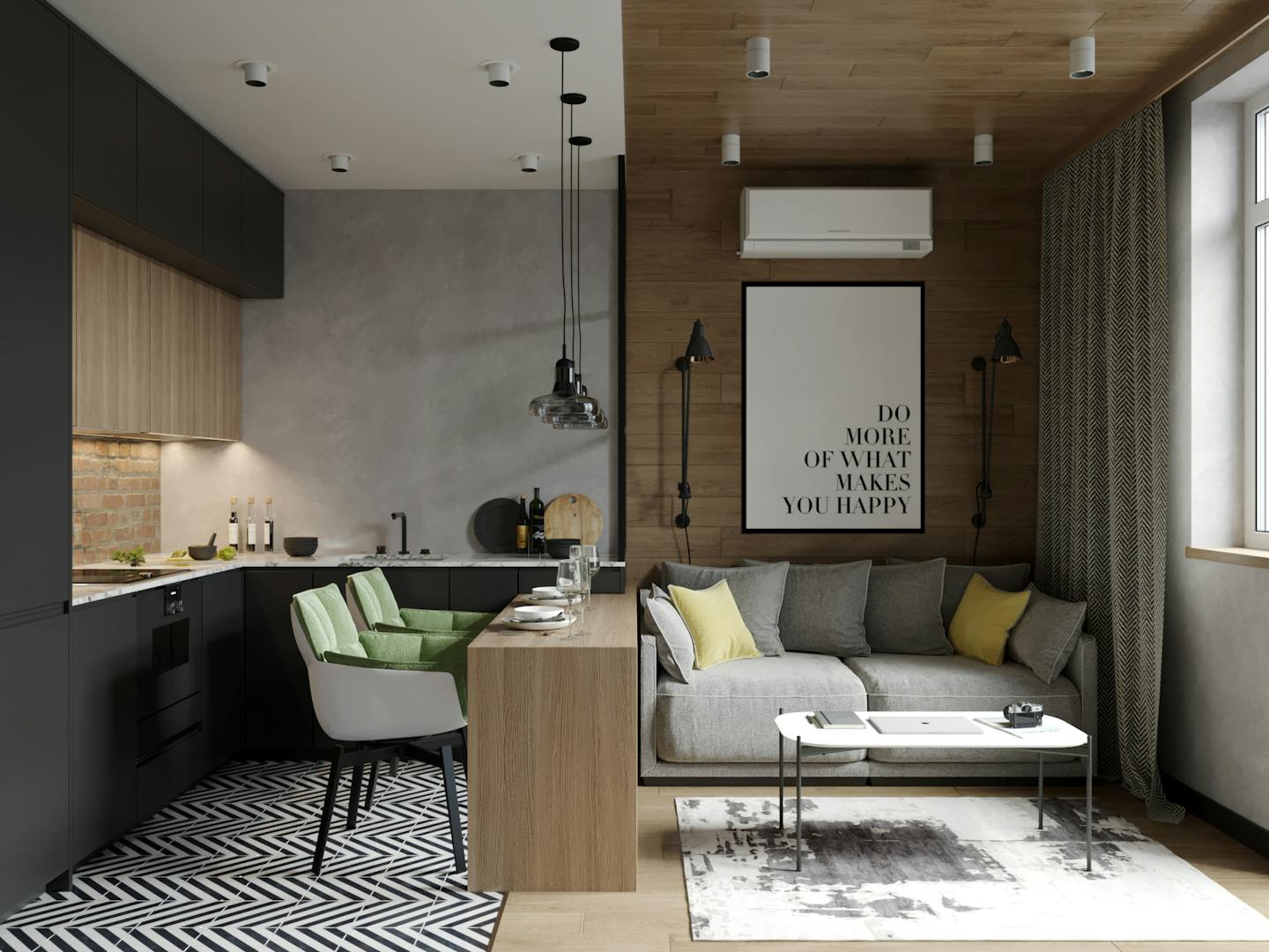 Интерьер получился уютным и теплым, не смотря на лофт-элементы. Это то, чего мы хотели достичь в планировании интерьера.