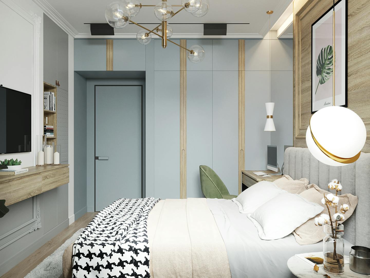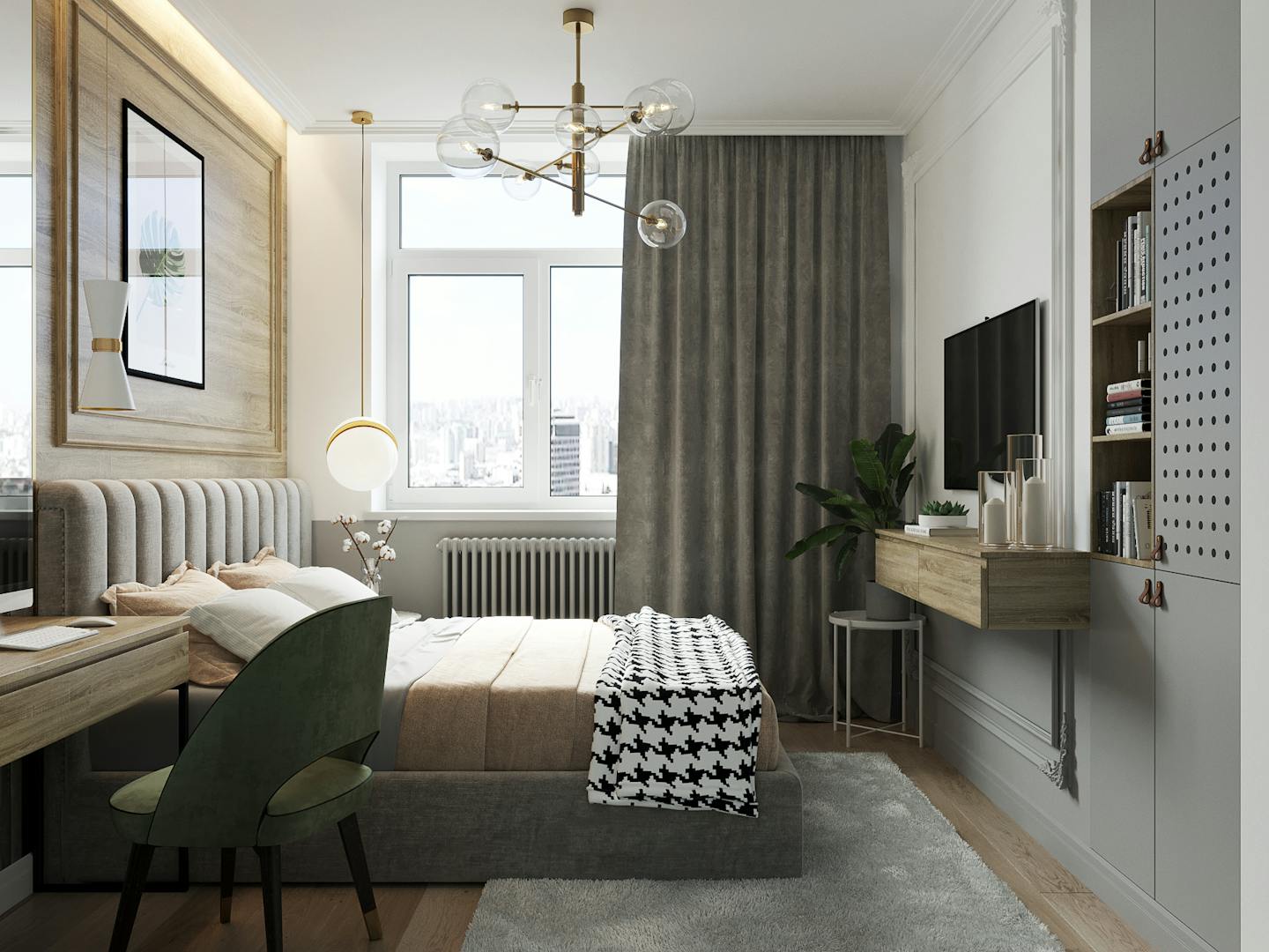 В этом проекте мы подготовили нежный, теплый интерьер для девушки.
