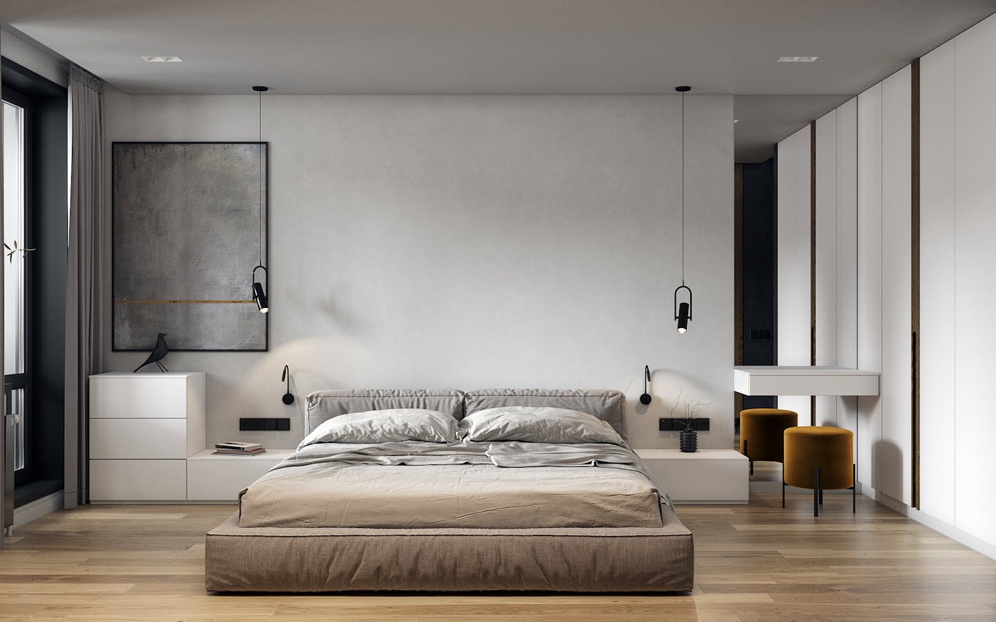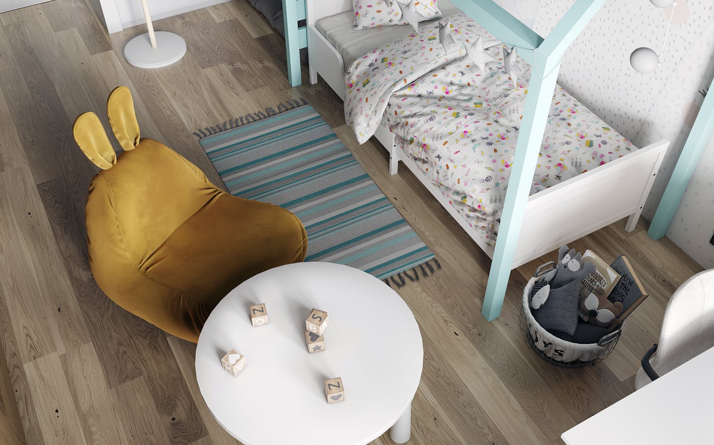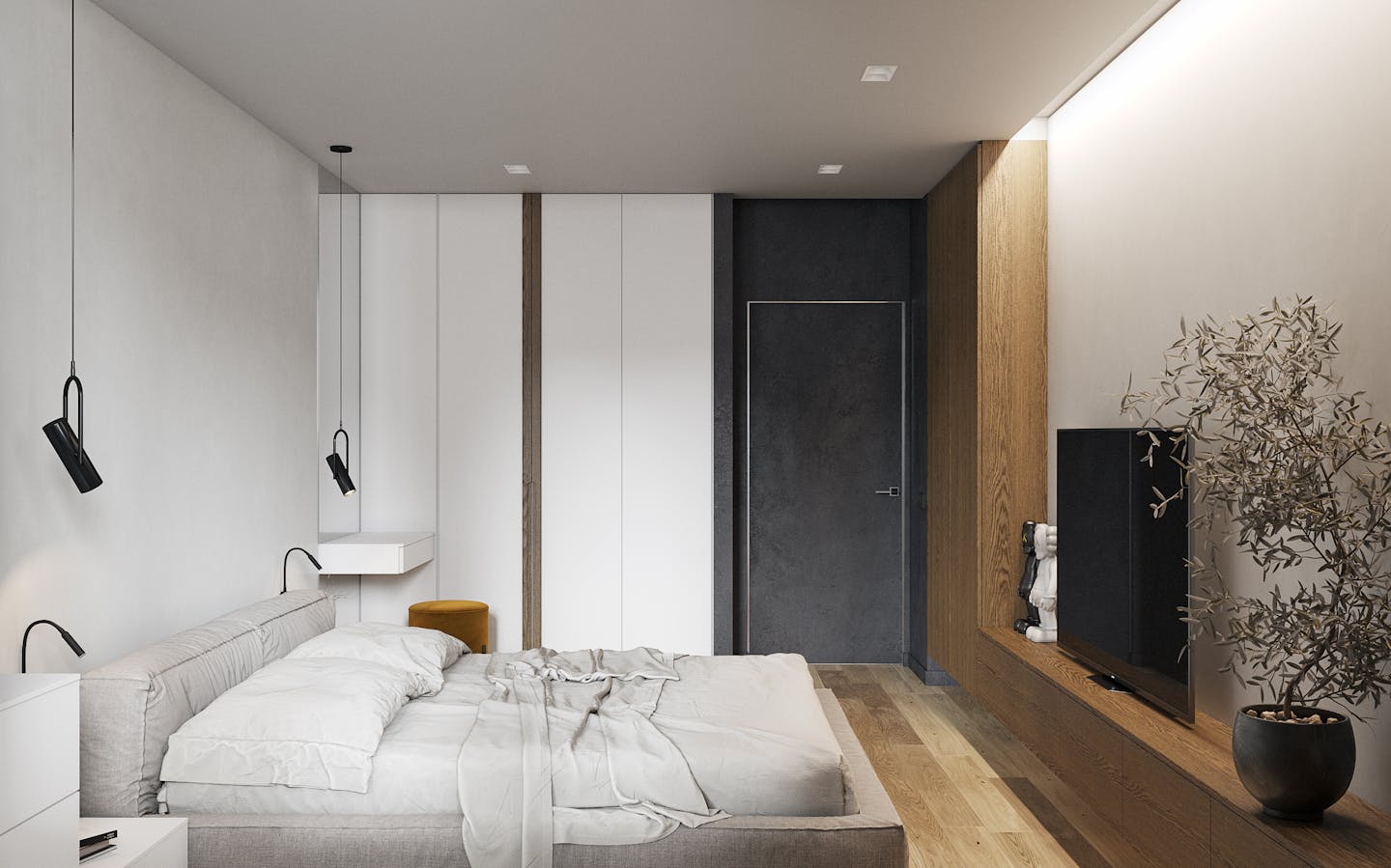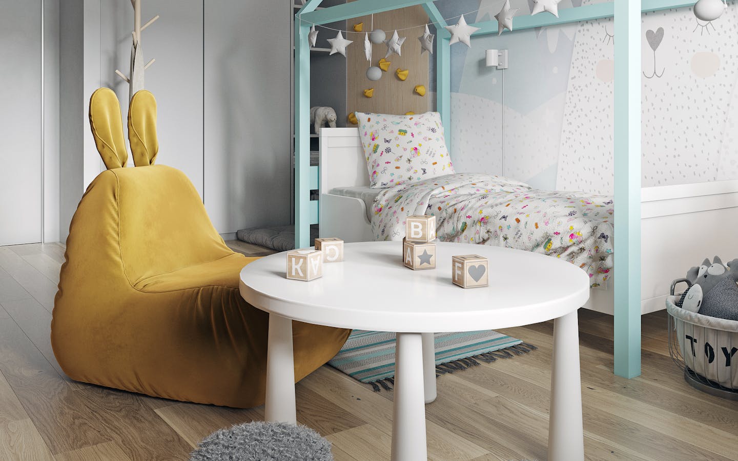 Минималистичный акцентный интерьер для семьи с ребенком.