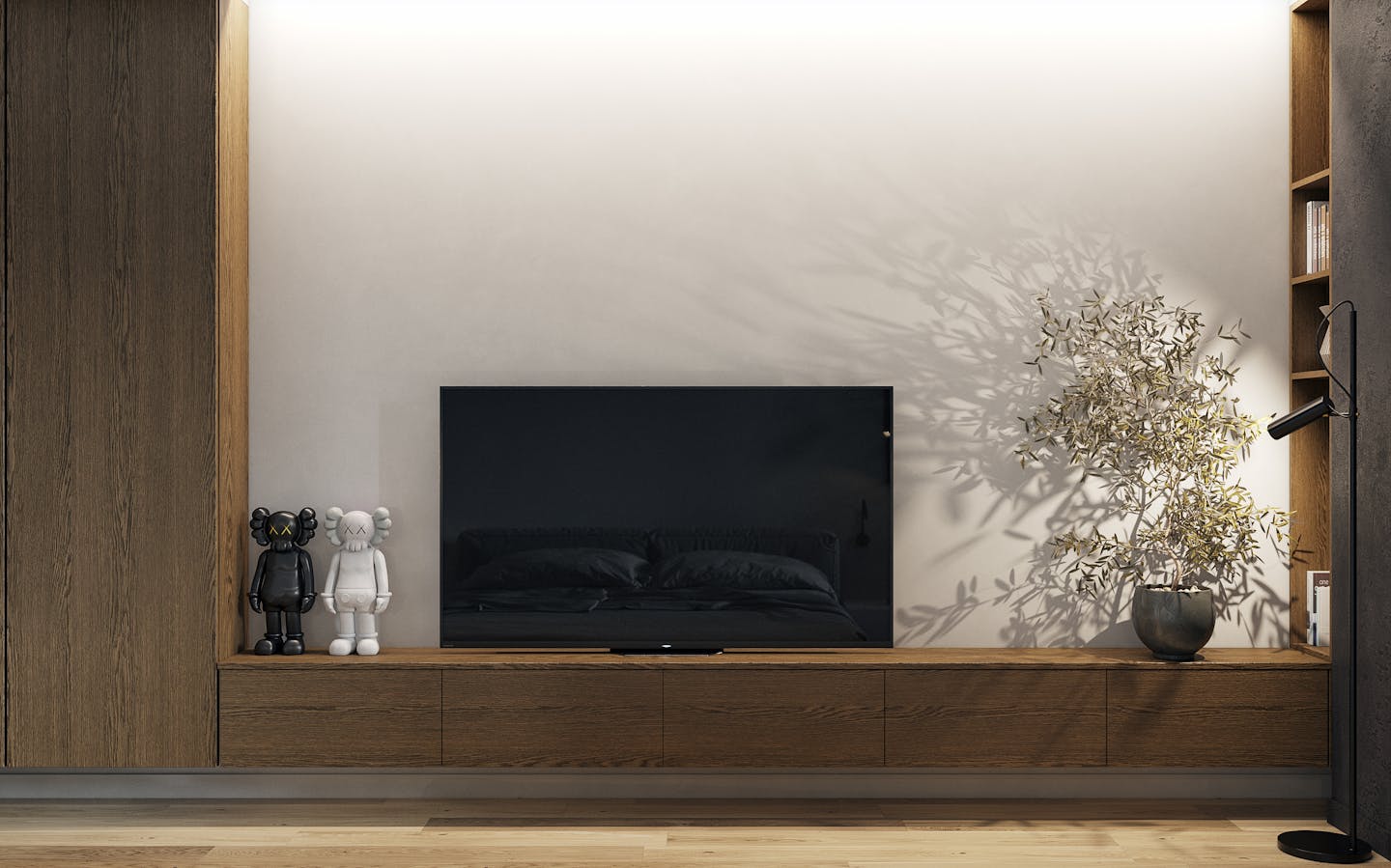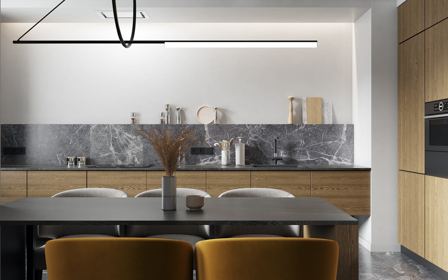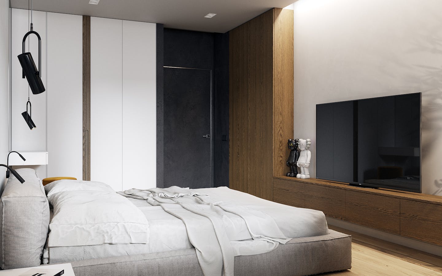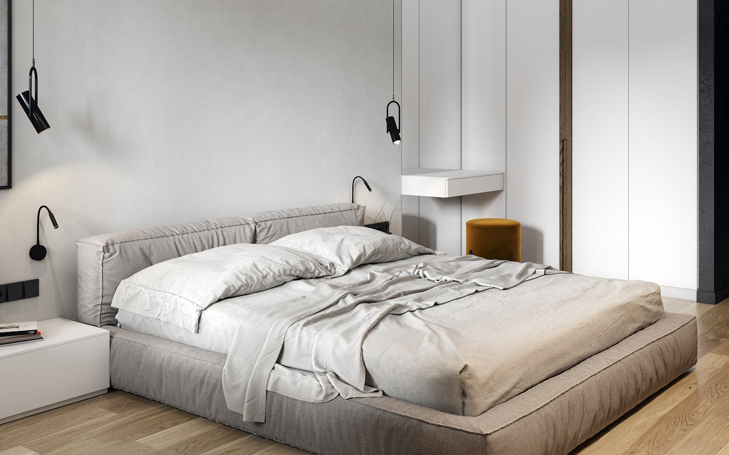 Минималистичный акцентный интерьер для семьи с ребенком.
