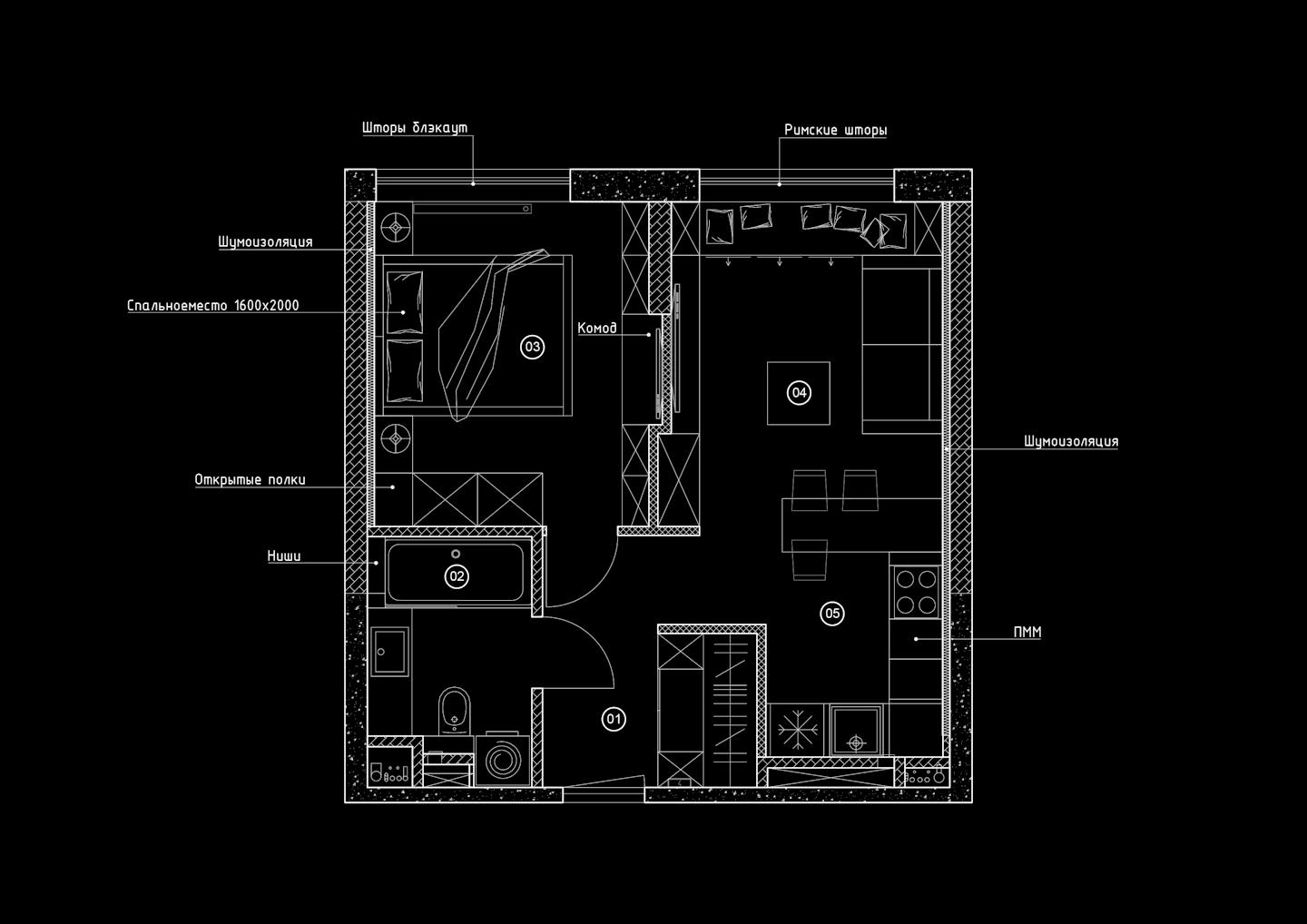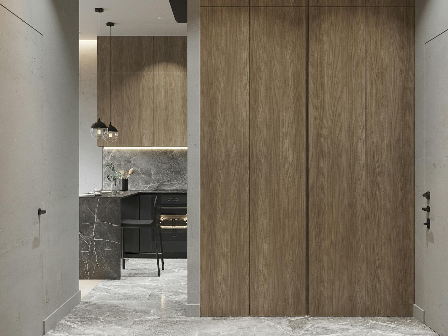 Заказчик — мужчина-холостяк, который много времени посвящает работе. К дизайну квартиры он подходил достаточно просто: комфортное жилье с современным дизайном, где нет ничего лишнего и можно успешно отдыхать и восстанавливаться от городской суеты. Нашей целью было создать аскетично-лаконичное пространство, в котором функционально продумано расположение всех жизненно необходимых удобств.