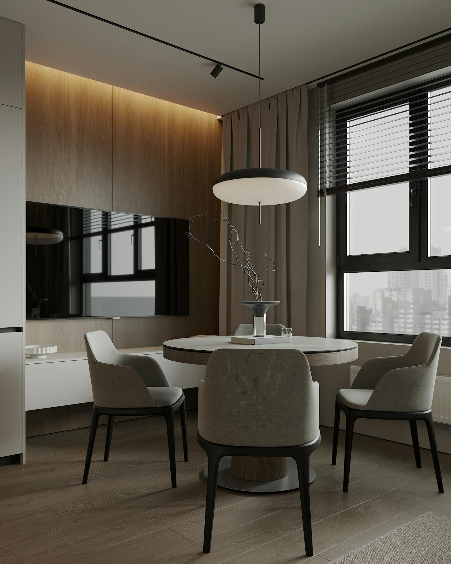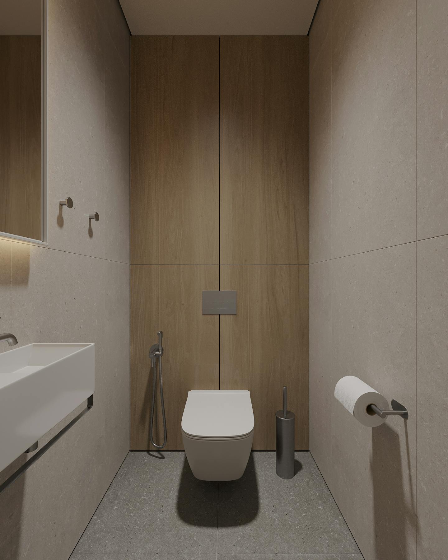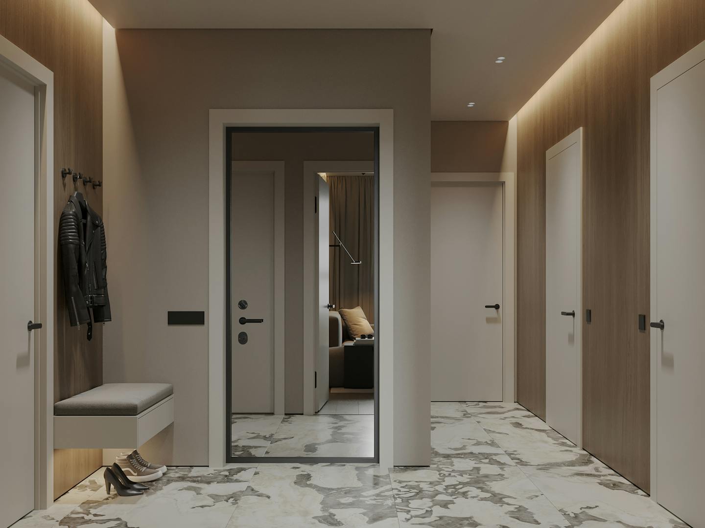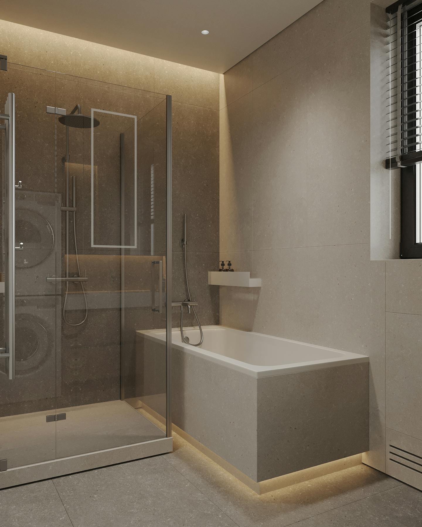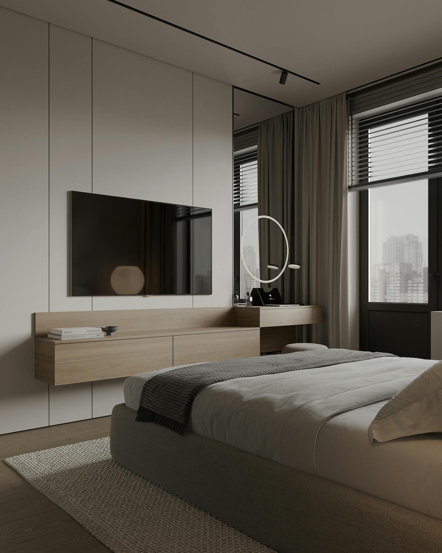 Основная идея проекта — создание интерьера в современном стиле с использованием нейтральных светлых оттенков. Для придания теплоты и уюта используются элементы из дерева и теплая подсветка.
