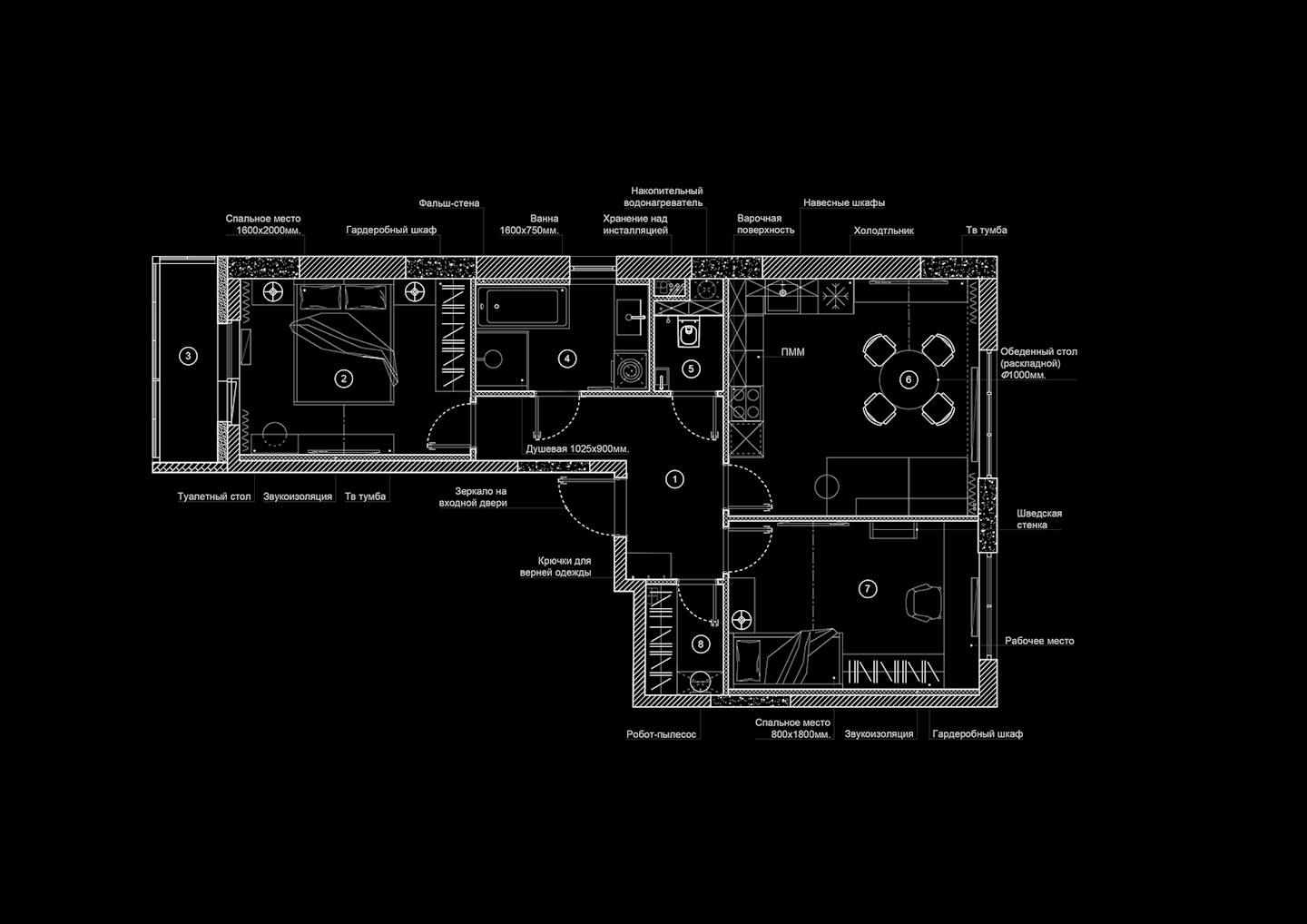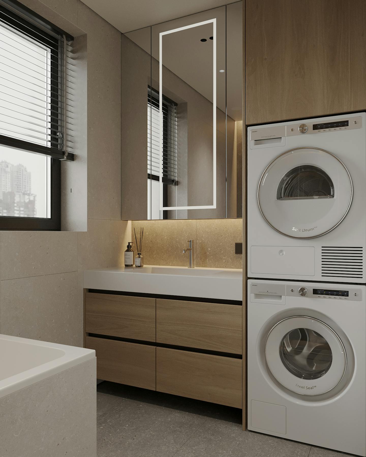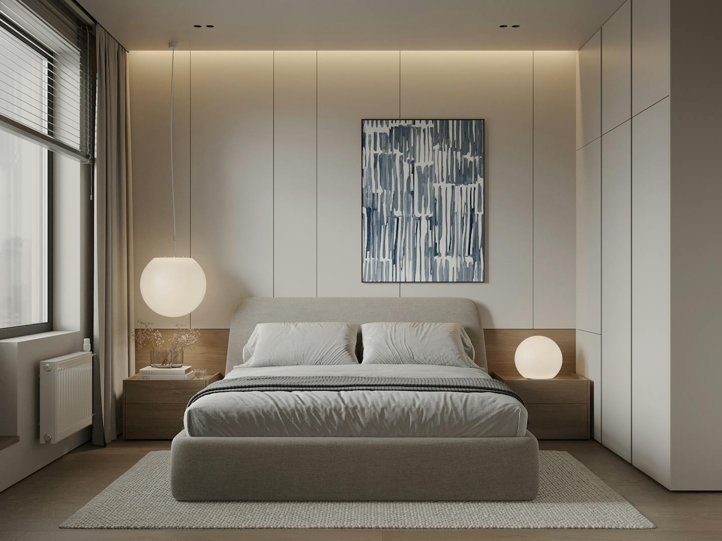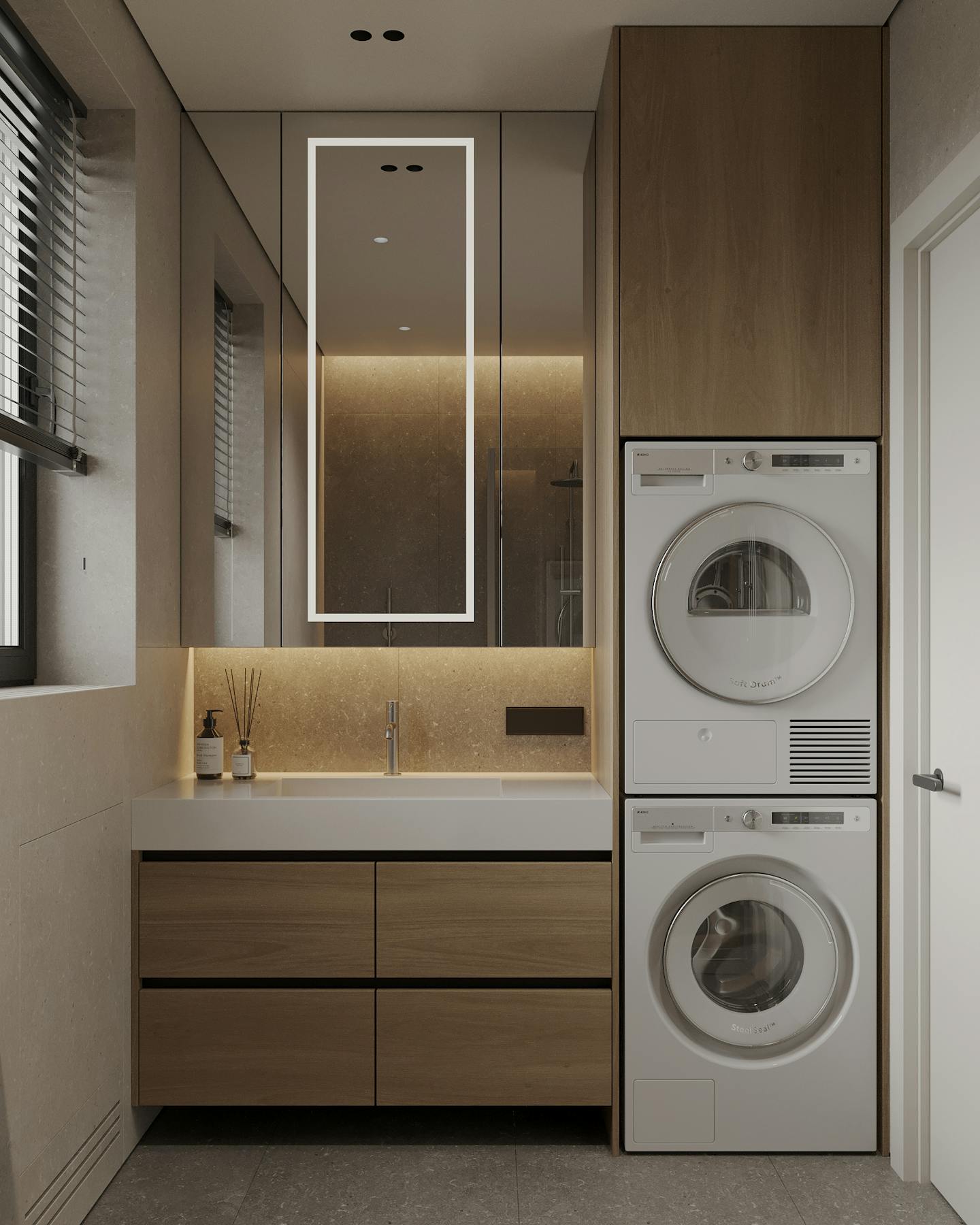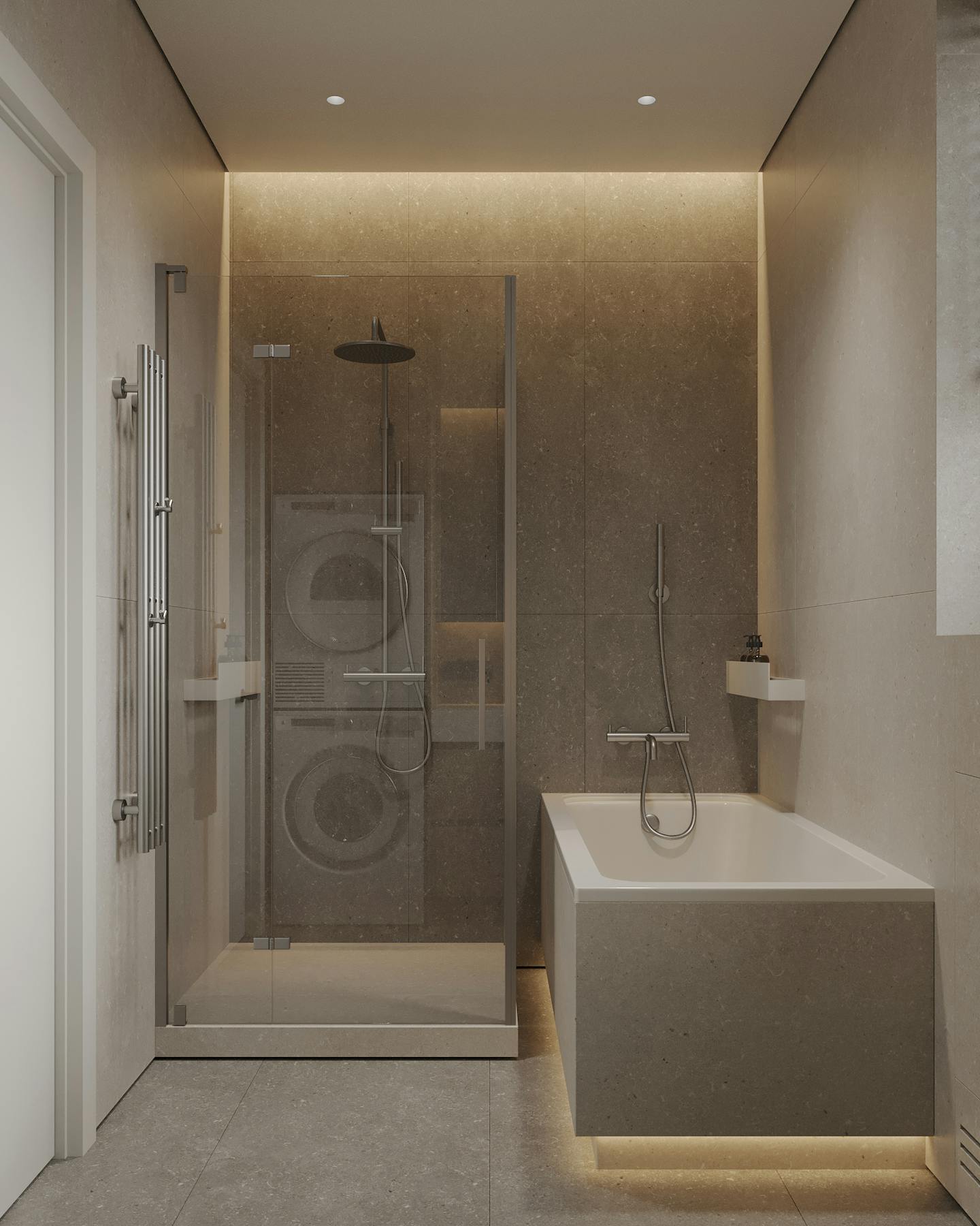 Основная идея проекта — создание интерьера в современном стиле с использованием нейтральных светлых оттенков. Для придания теплоты и уюта используются элементы из дерева и теплая подсветка.