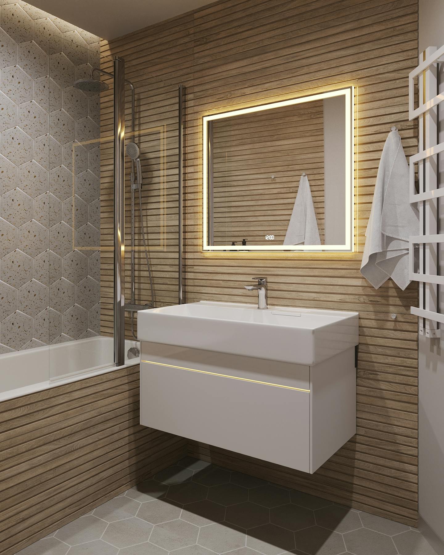 Использовали множество вариантов отделки: покраска, керамогранит на стенах, панели из гипса и мдф, декоративная штукатурка.