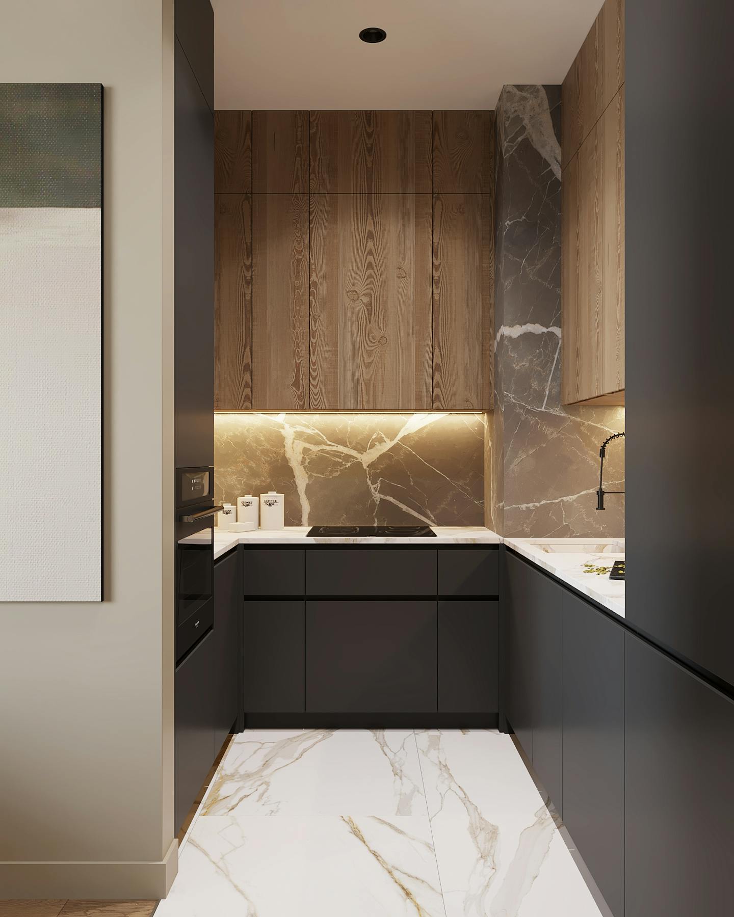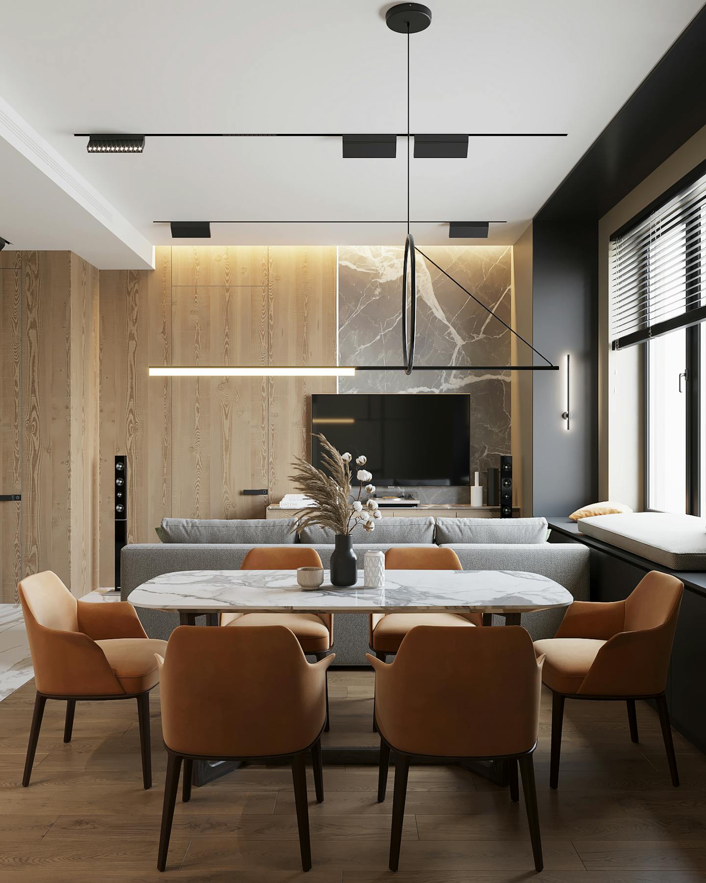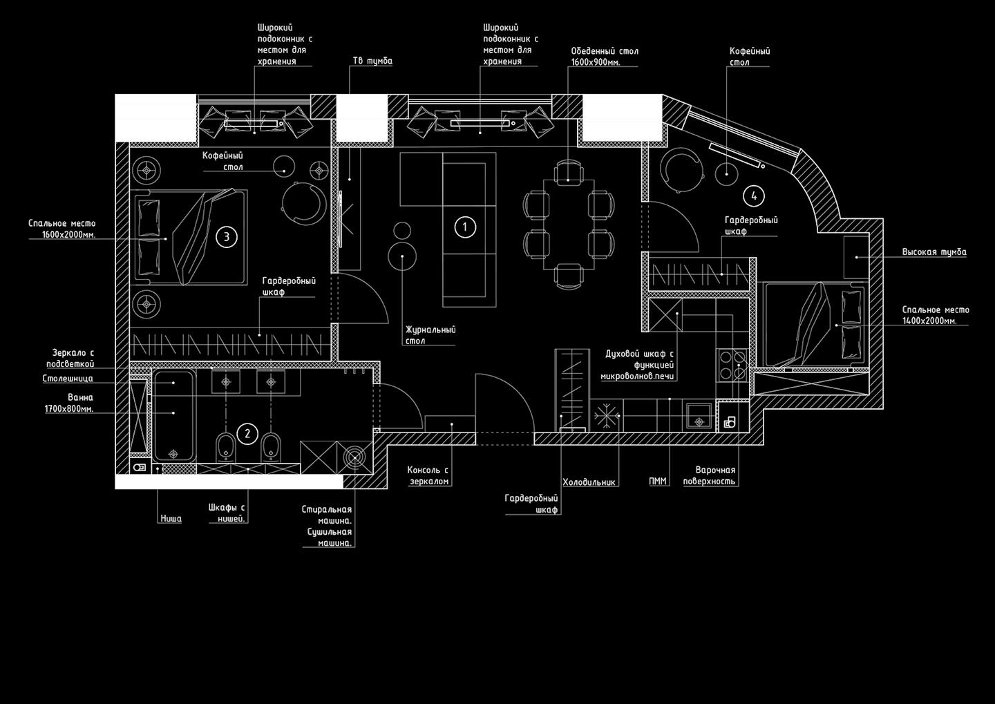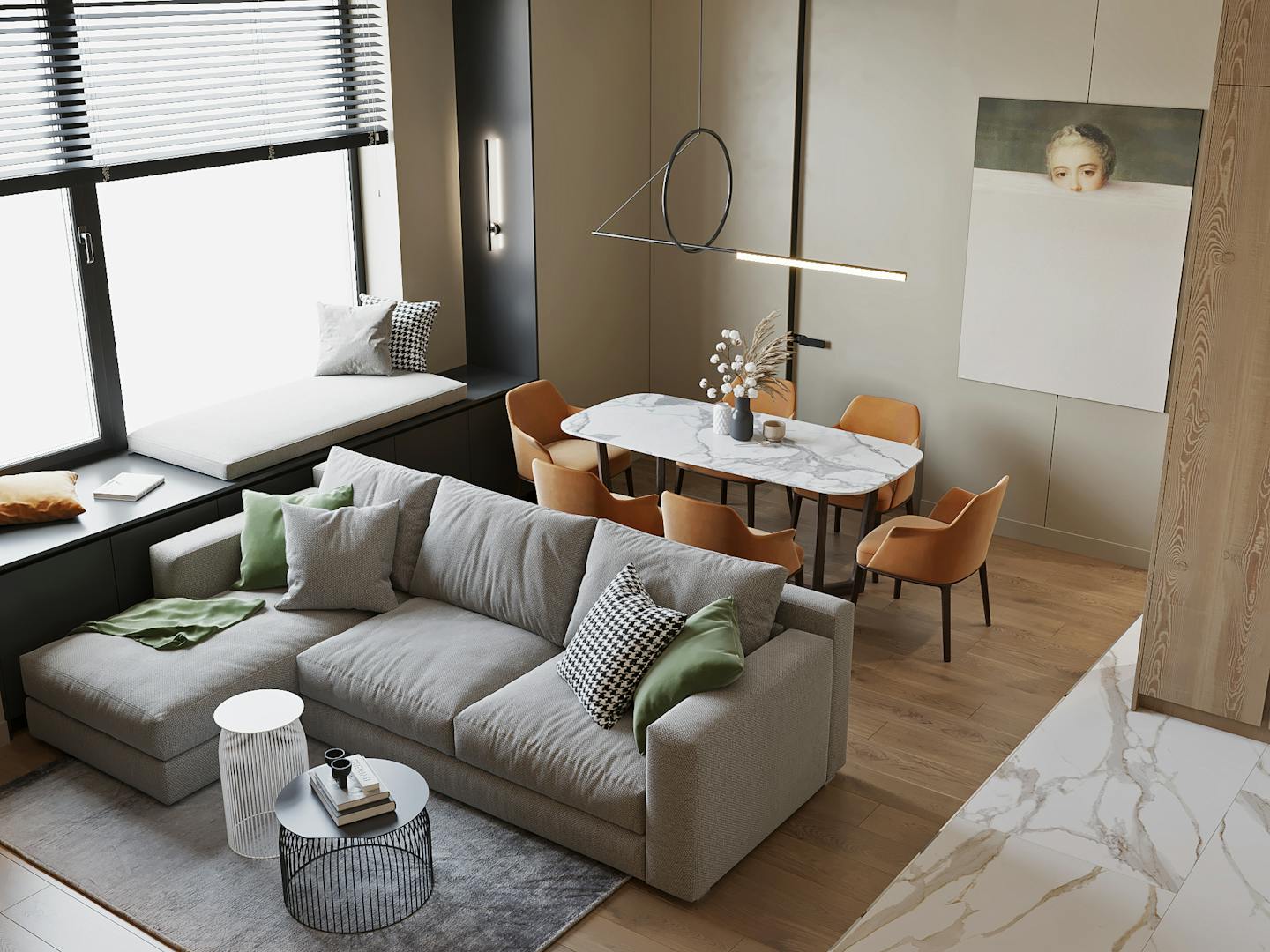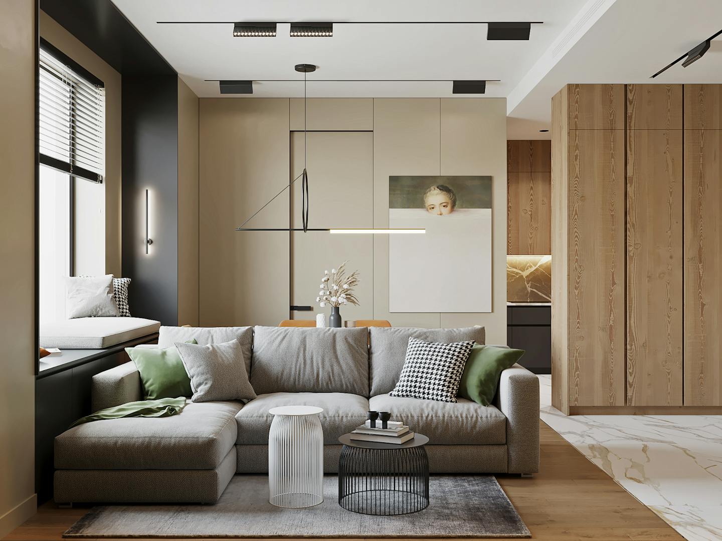 По проекту в квартире будет жить молодая пара с ребенком-подростком, которые любят принимать гостей, но хотят сохранить приватное пространство спальни. Также семье необходимо достаточно скрытых систем хранения и дополнительное спальное место в кухне-гостиной, чтобы родные и близкие при необходимости могли остаться на ночь.