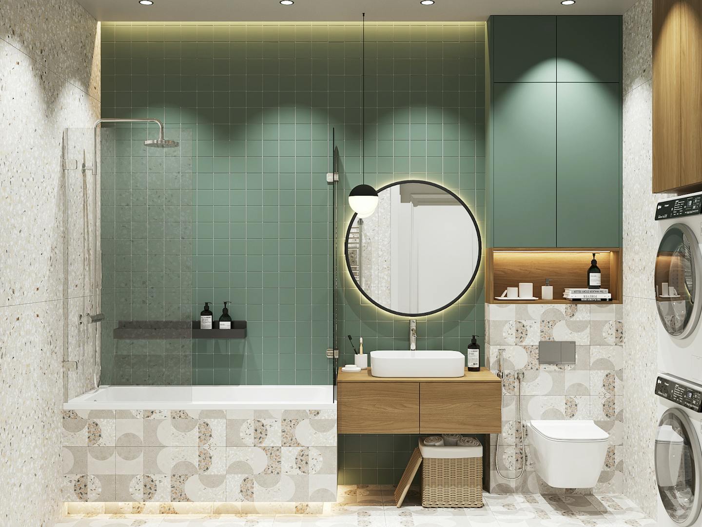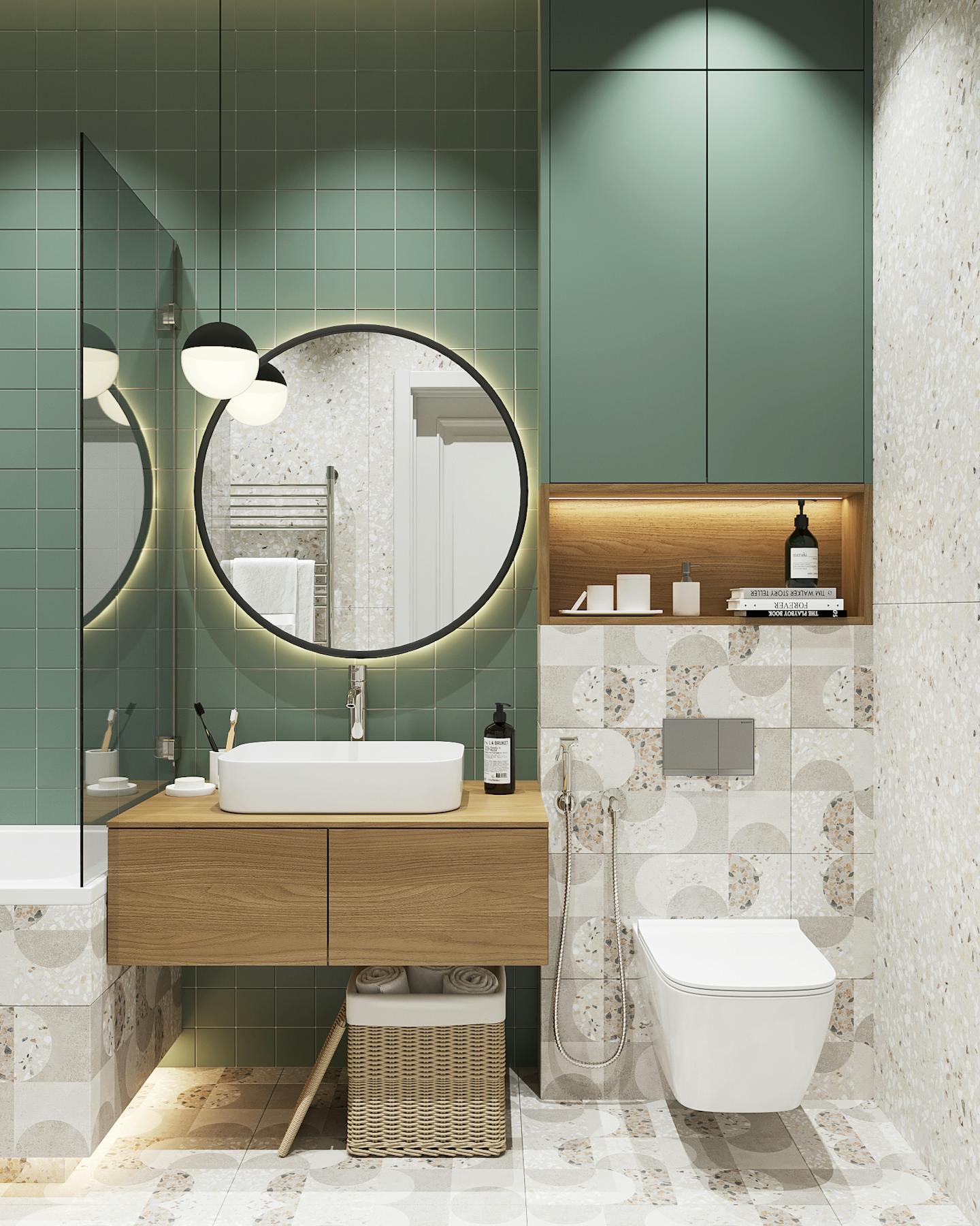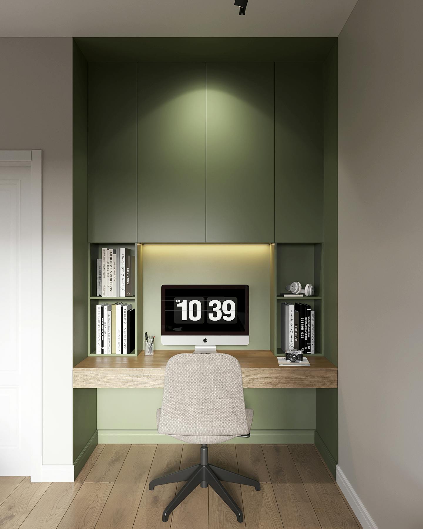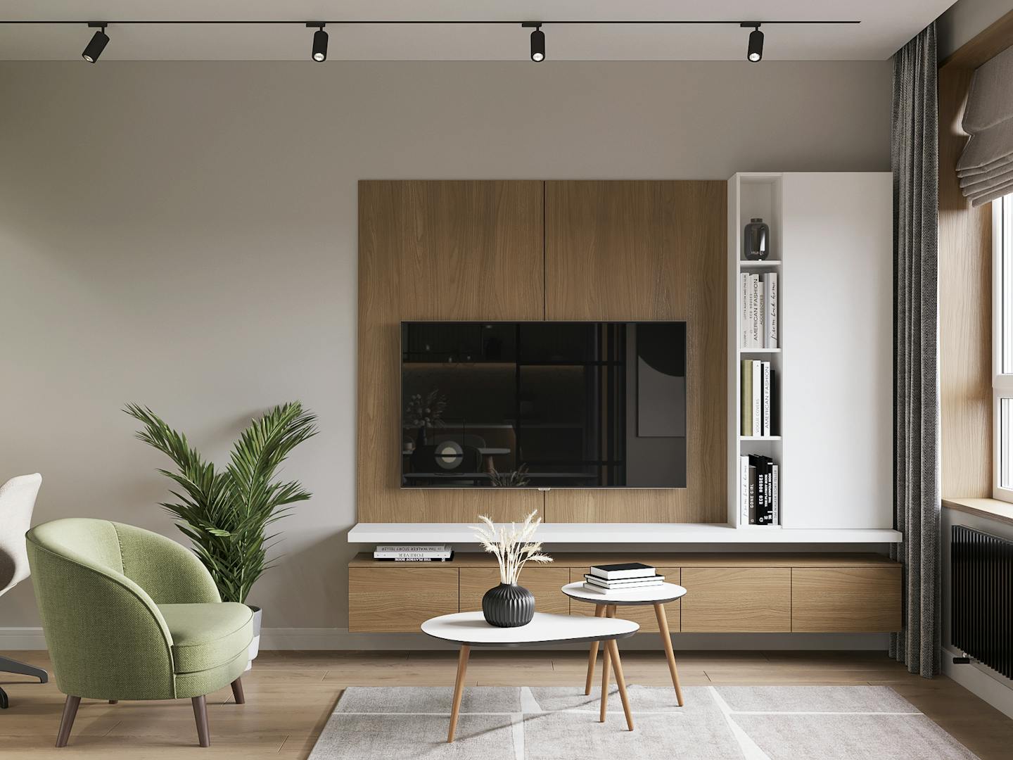 Акценты в проекте – оттенки зеленого цвета. Они хорошо сочетается с палитрой белого и древесного цвета, которые мы так же выделили в проекте как основные.