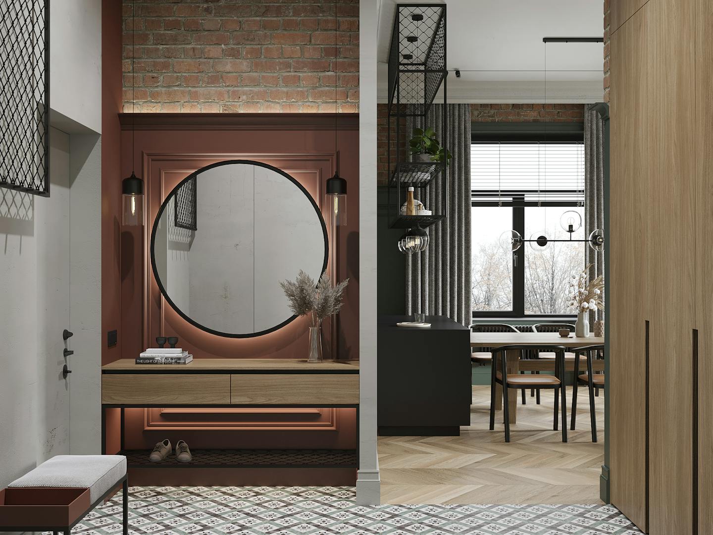 «Важный гусь» – просторные апартаменты для молодой пары в центре Москвы. В основе проекта – эклектичный стиль, соединяющий в себе элементы лофта, неоклассики и современных интерьерных решений. Высокие потолки и окна, обилие бетона, декоративных покрытий и натуральных материалов в отделке создают уютную, но строгую атмосферу.