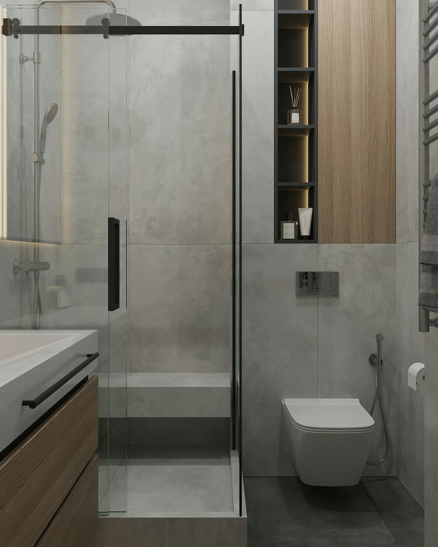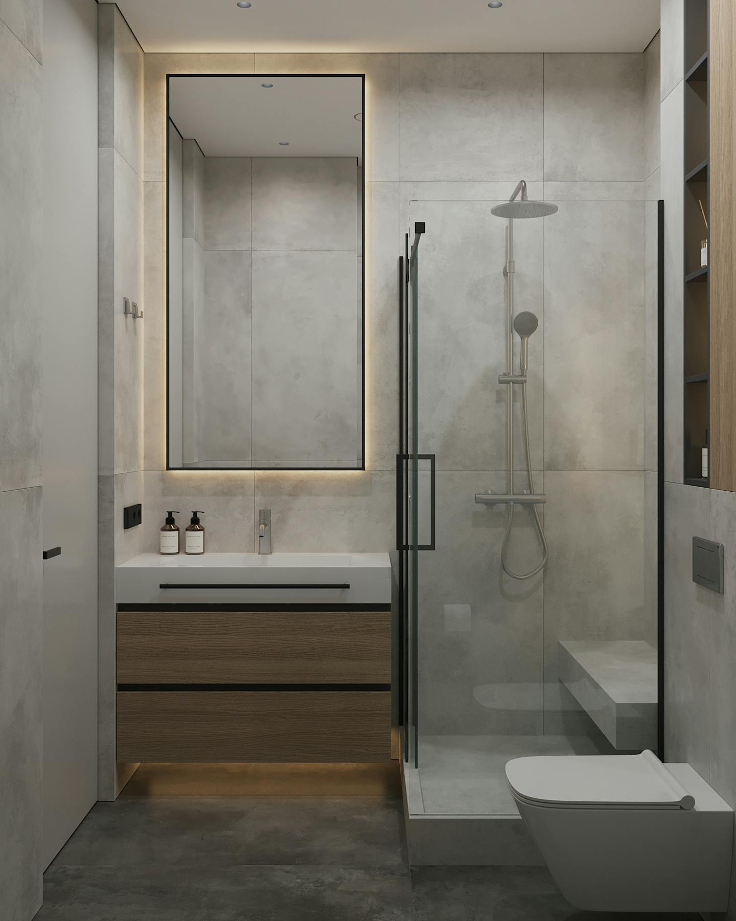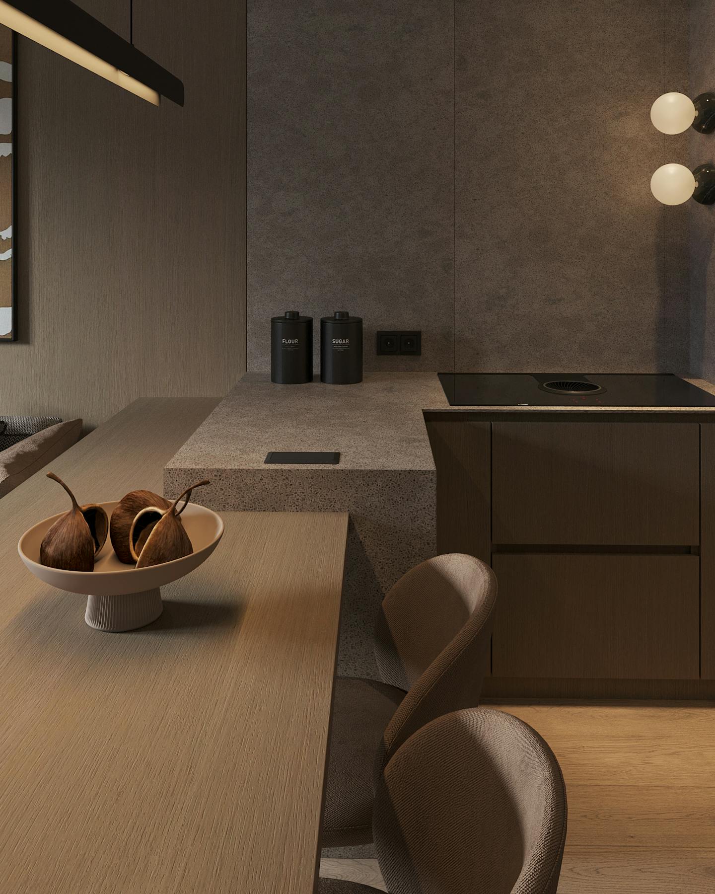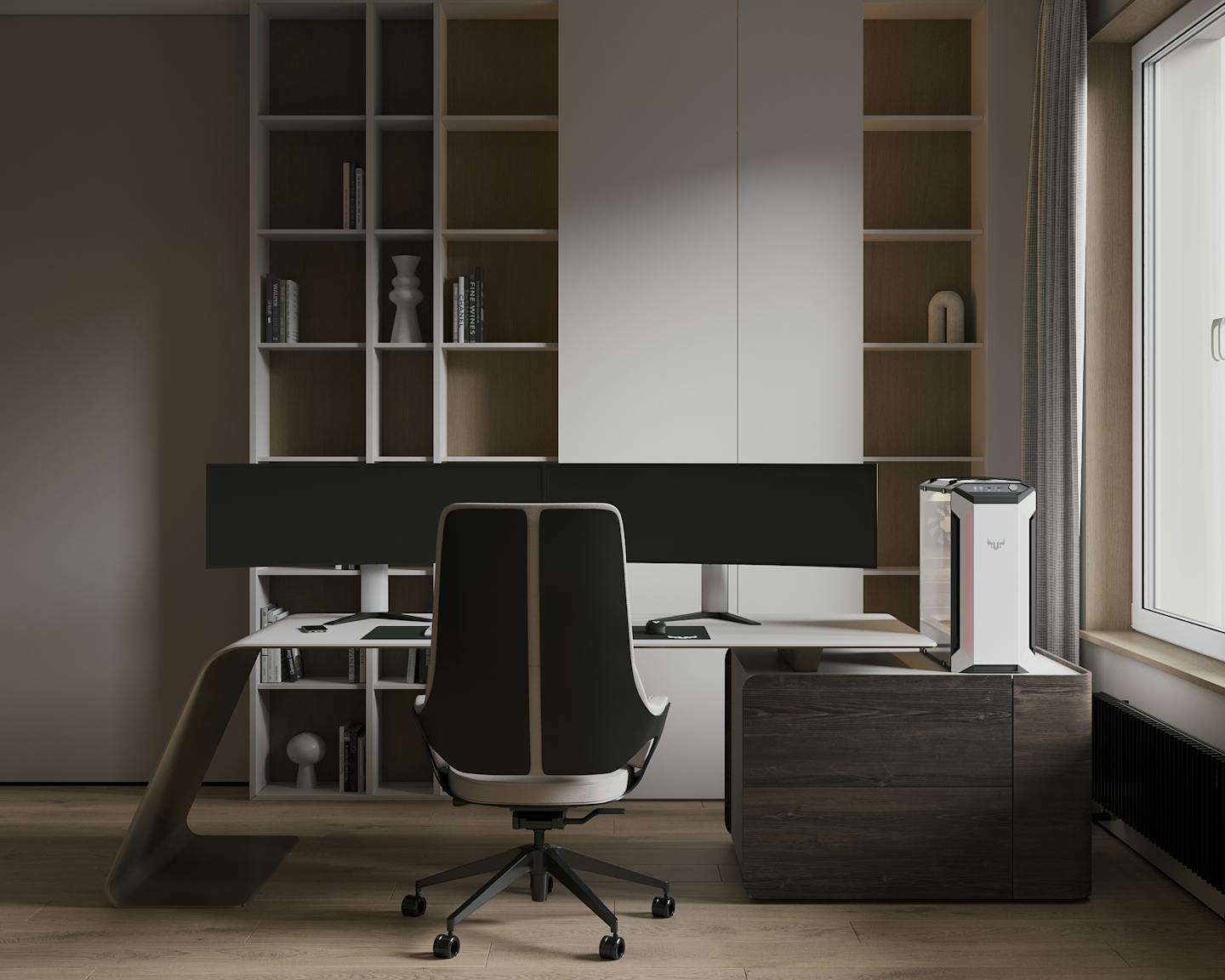 Проект современного интерьера, выполненного в спокойной серо-бежевой гамме. Мягкие серые оттенки в сочетании с тёплыми бежевыми цветами создают комфортное и стильное пространство.